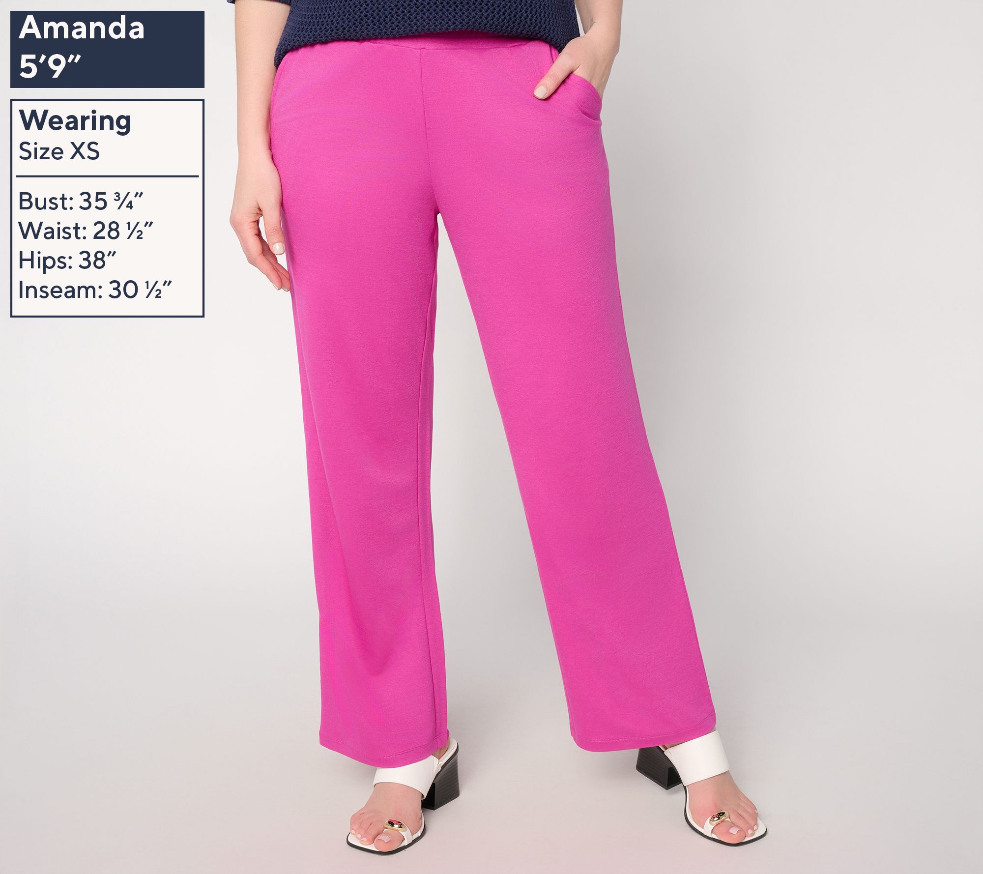 Features: pull-on style, elastic waist, slash pockets, full length
