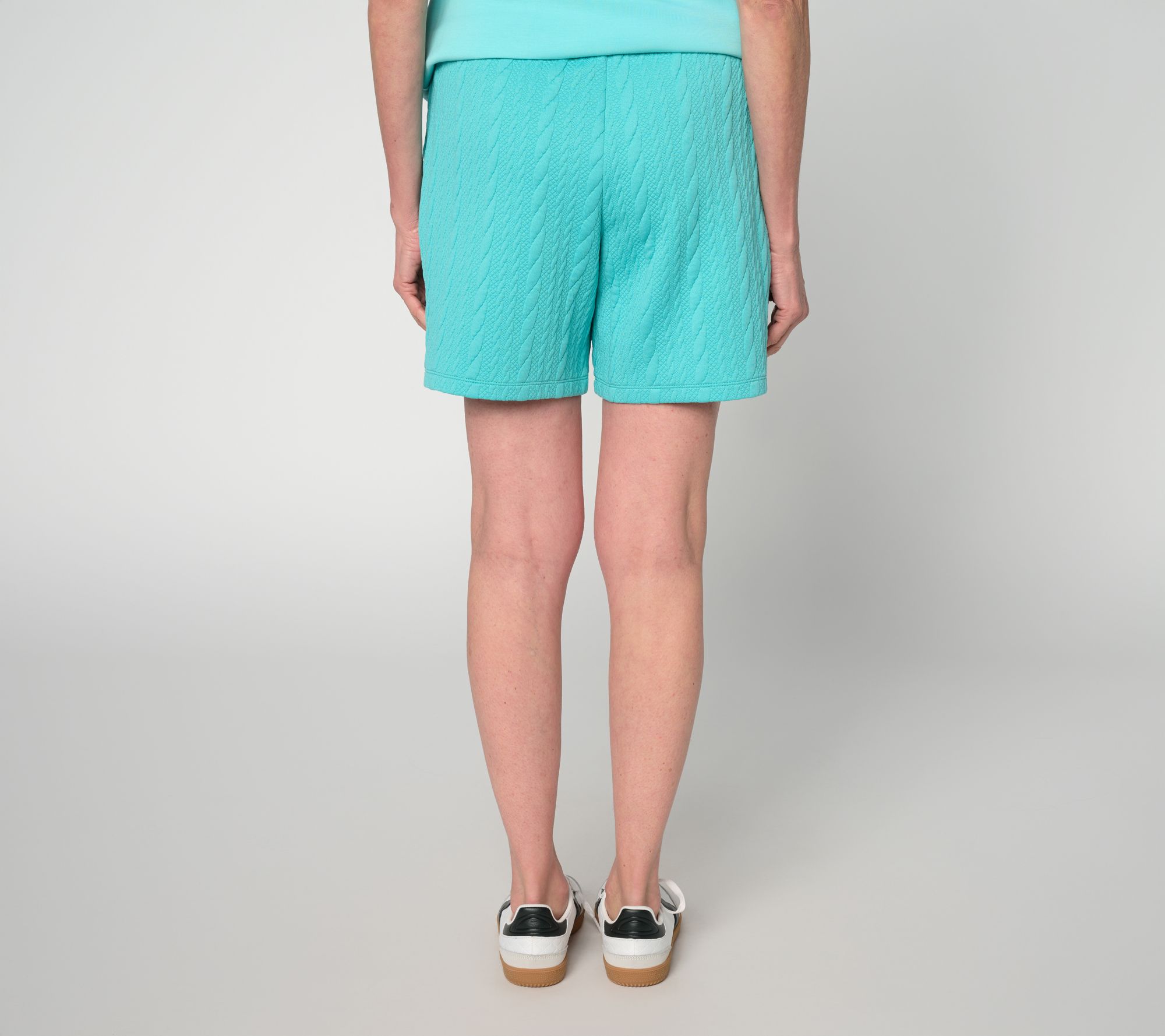 Cozy shorts? These Cable Chic shorts sure are! A textured knit with a sprinkle of stretch make them a must-have for warm-weather moments. Pull them on and pair with your favorite tee and sandals or sneaks for a slightly nautical aesthetic. From Belle by Kim Gravel.