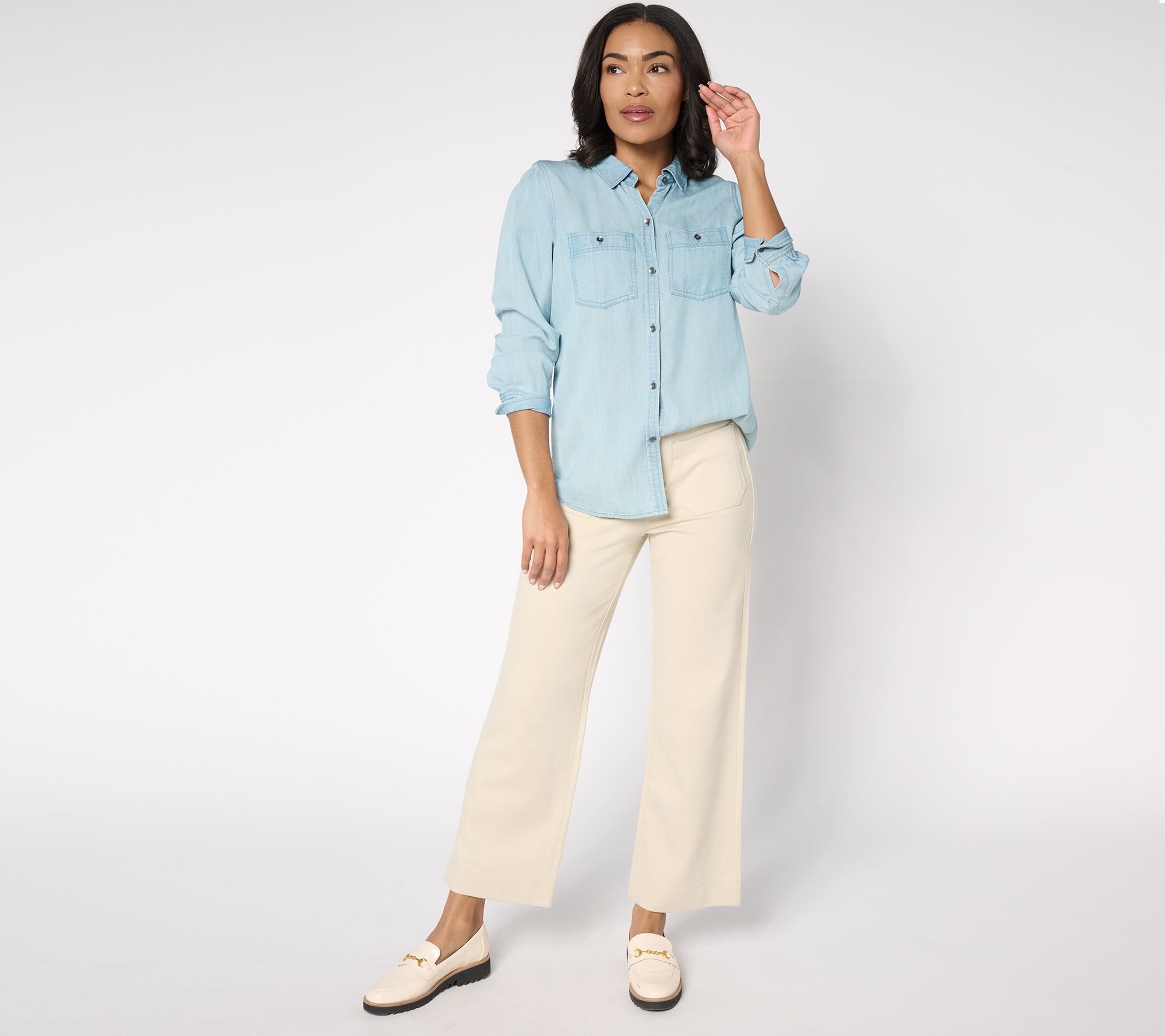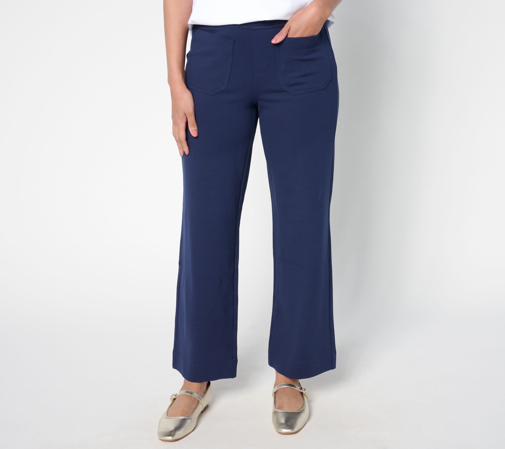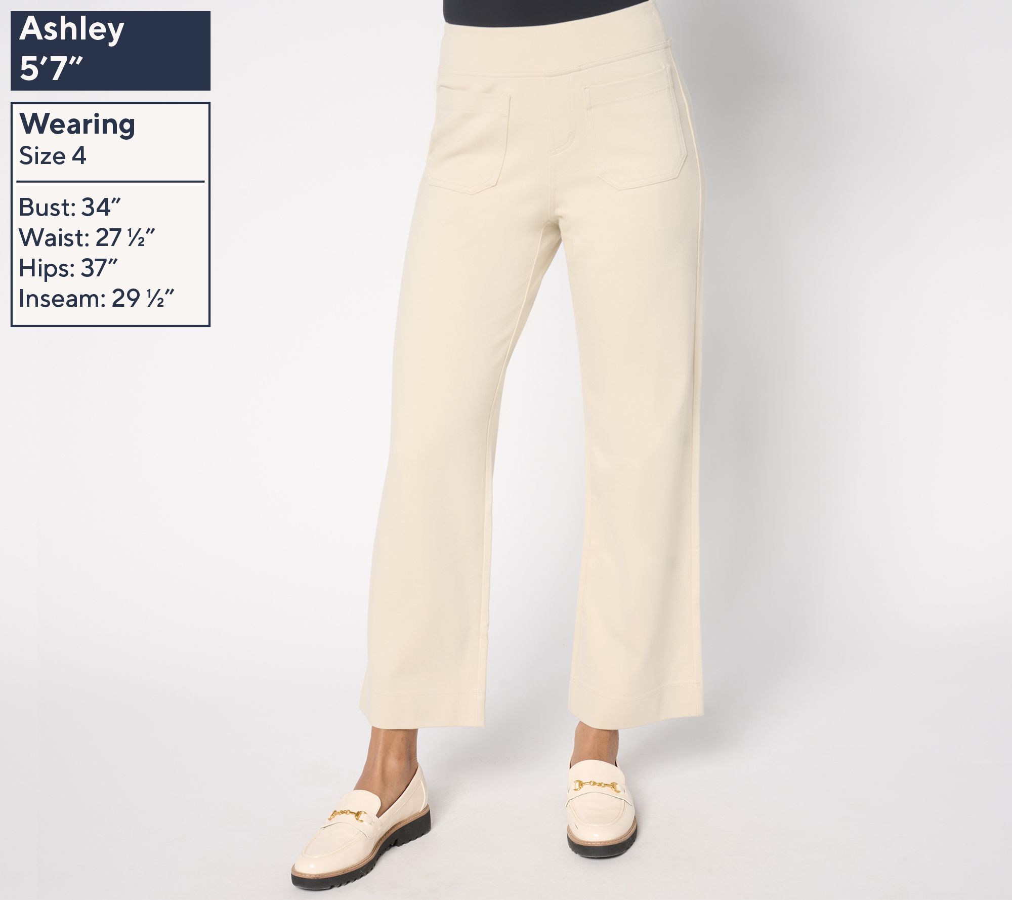 Refresh a year-round go-to! These patch-pocket pants in sturdy ponte knit hit at the ankle, framing everything from those fuzzy ankle boots to your spring dress sandals with flattering wide-leg flair. From Belle by Kim Gravel.