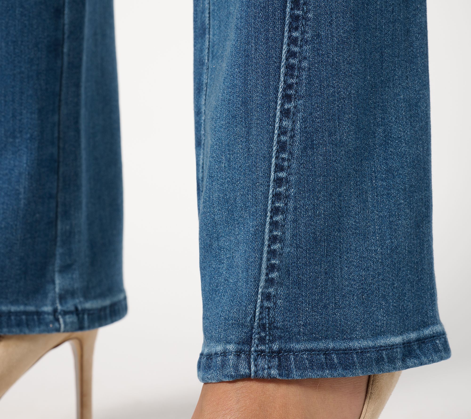 It's okay if you're not a wide-leg lover. But you don't have to feel left out of today's denim trends either. Along with being supremely figure-focused and uber-comfy, Kim Gravel's Primabelle boot-cut denim jeans offer a forward-facing seam that angles down the leg front, lending a trend-fresh twist to your denim collection. Welcome to the cool-girl crew. From Belle by Kim Gravel.