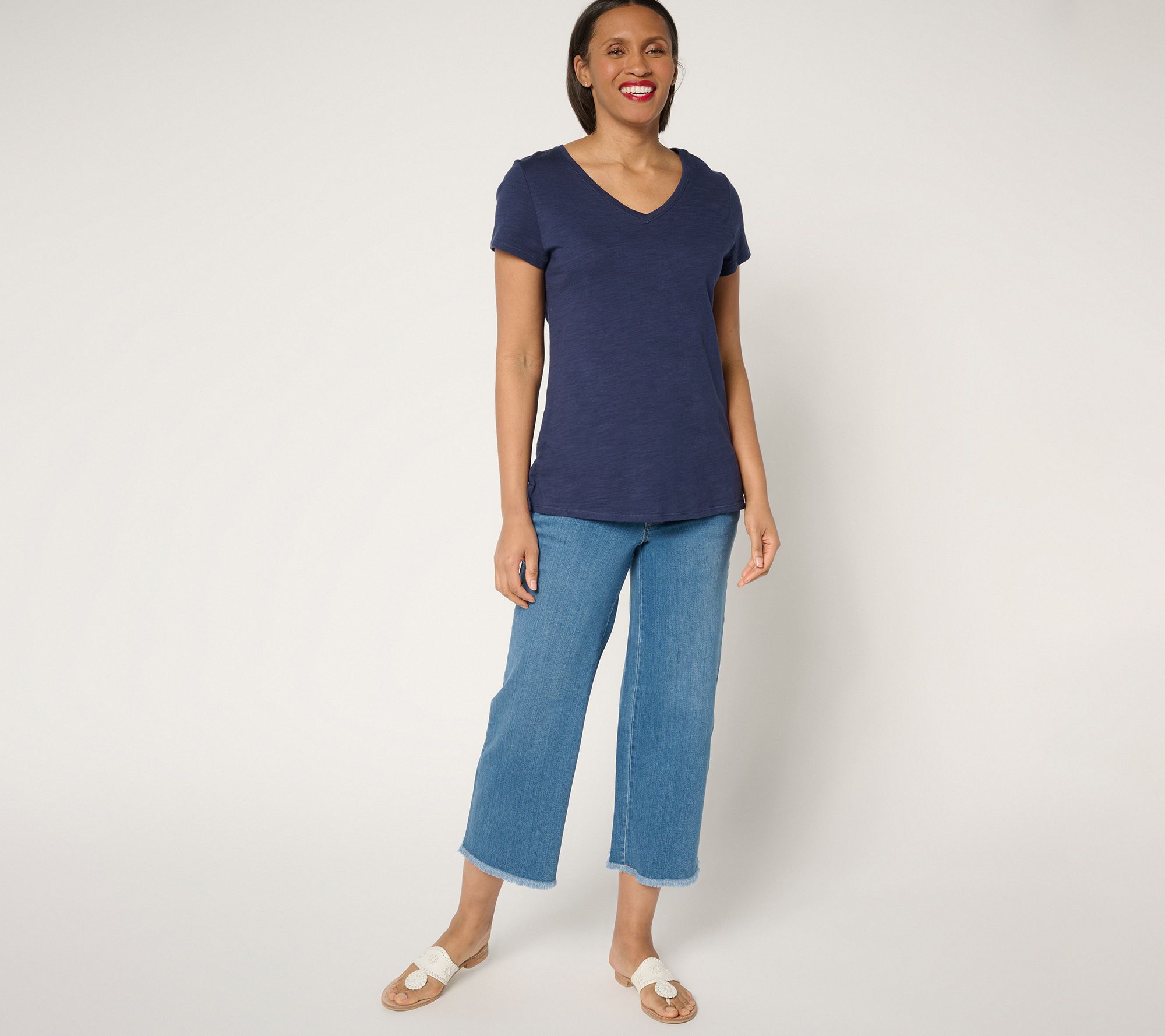 But let's set aside looks for just a moment so we can focus on the comfort of this figure-flattering pair. Silky-soft TripleLuxe Denim offers a luxurious feel with a hint of stretch, making them ideal for errand days, long walks on sunny paths, and vacation getaways (sight-seeing, anyone?). And you'll adore the easy pull-on design (plus the five-pocket style you love). These wide-leg crops are sure to become a staple this season... and the season after that, and the season after that! From Belle by Kim Gravel.