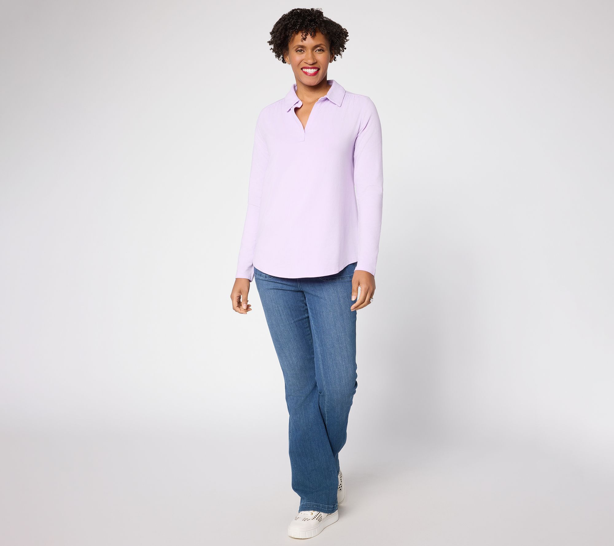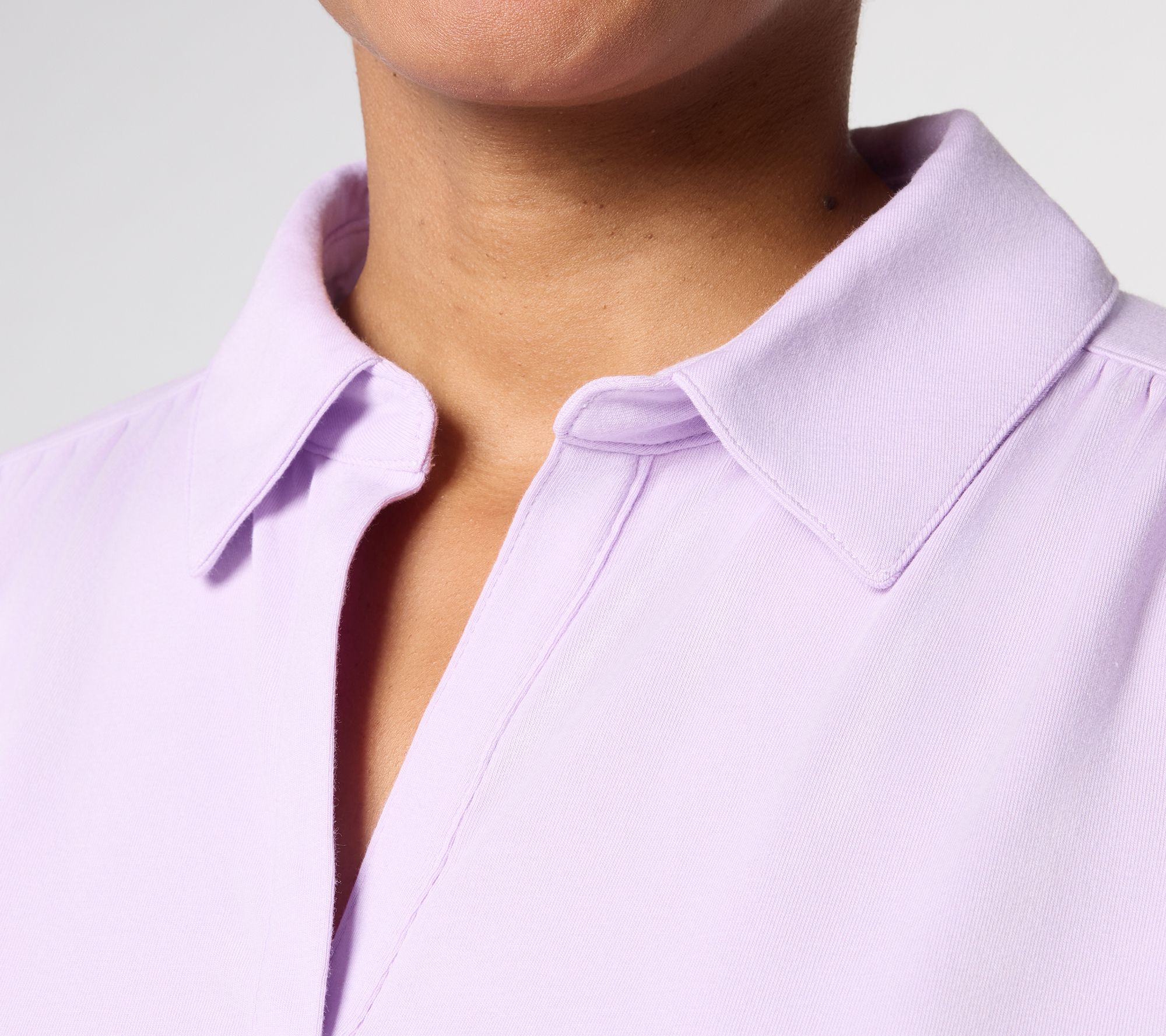 Taking you from day to dinner, this knit top boasts a Johnny collar and subtle ruching for a stylish twist on an everyday essential. Pair this fave with everything from jaunty joggers to lived-in denim to tailored trousers. From Belle by Kim Gravel.