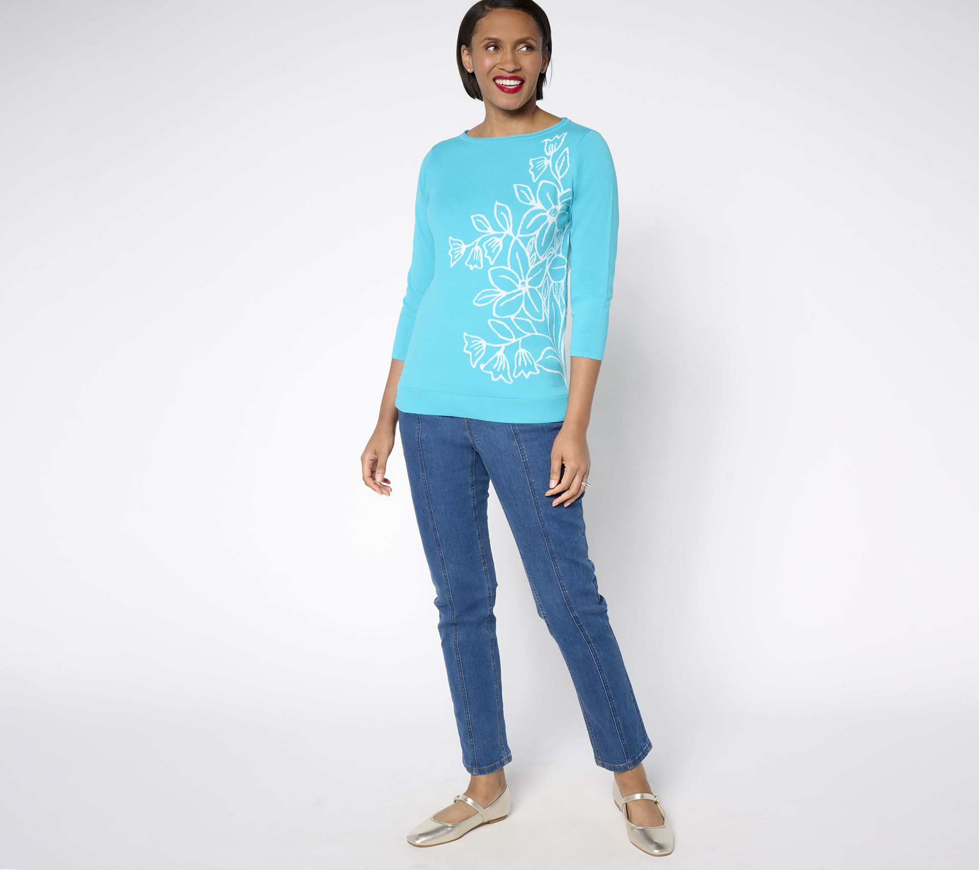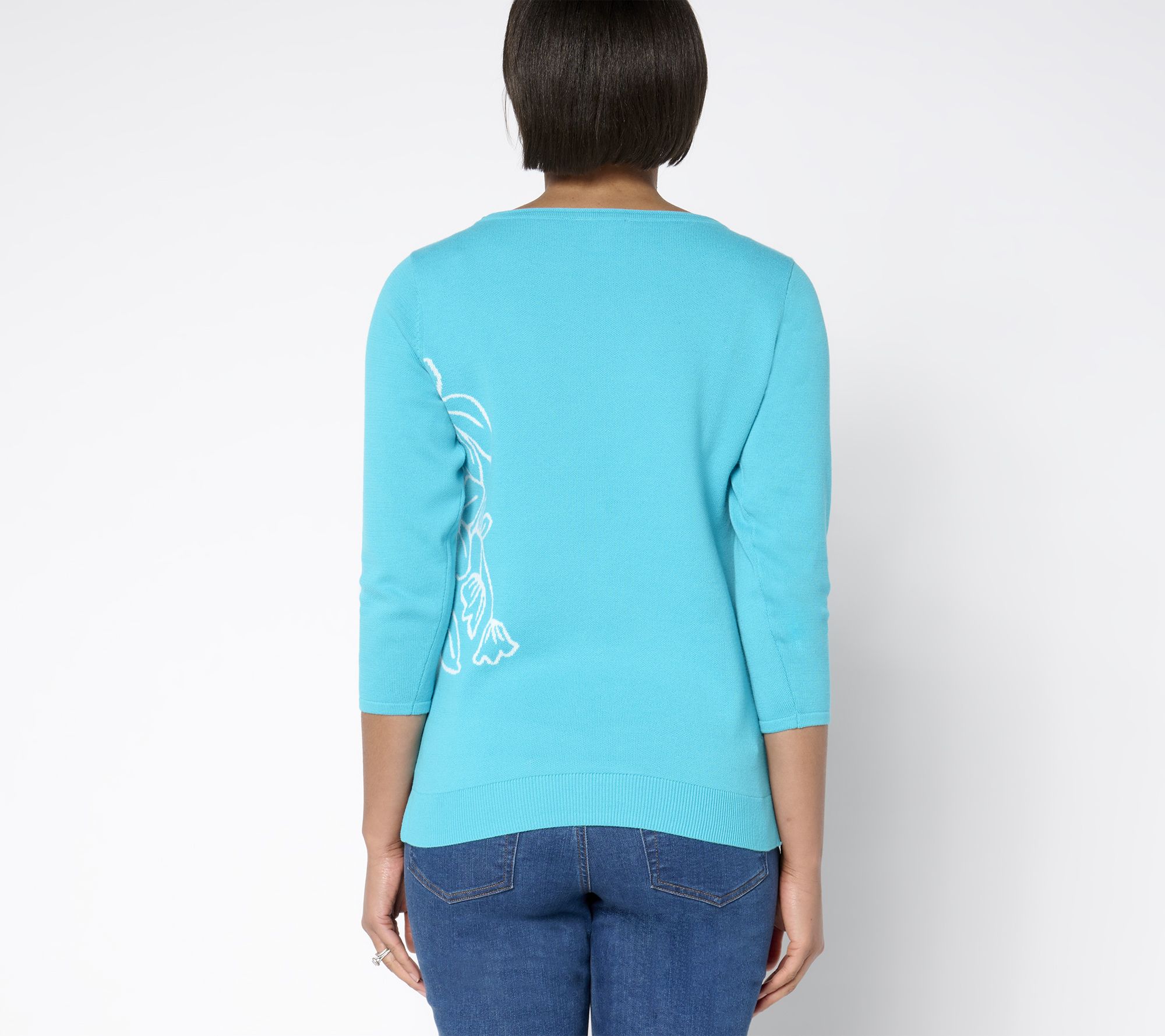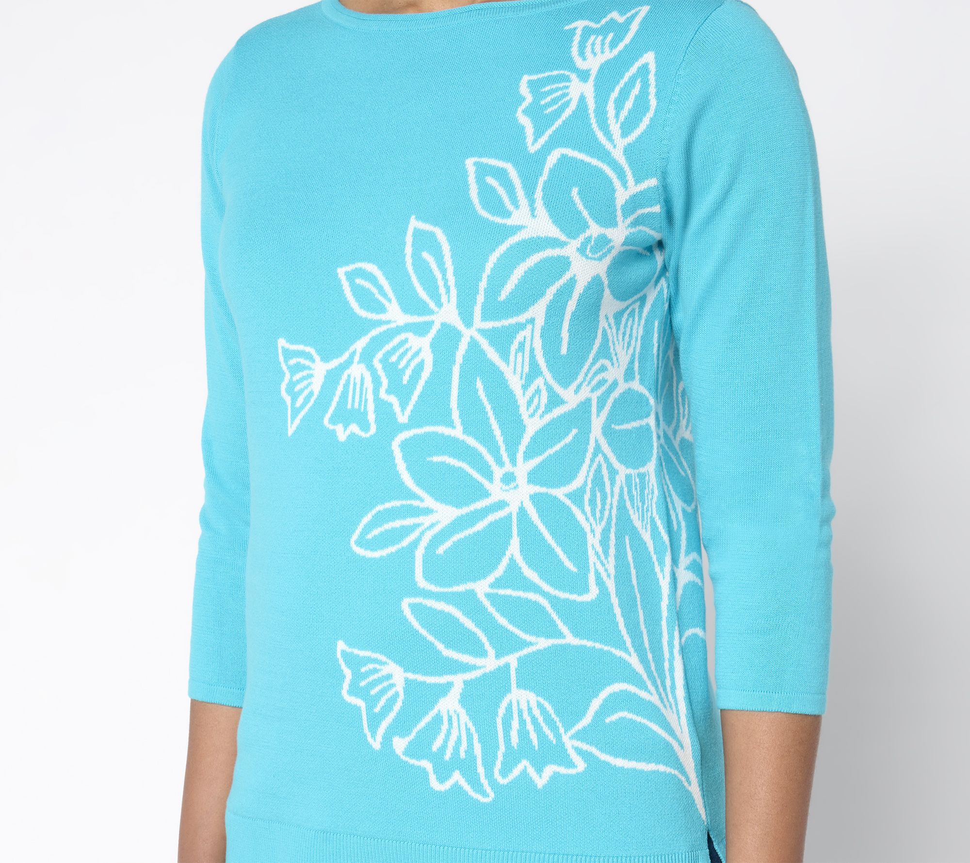 Tiptoe throught the tulips -- and a fresh new season in this fun floral find from Kim Gravel. Bursting with blooms, this all-cotton jacquard sweater is ready to brighten up your casual or dressy occasions (and your mood!). From Belle by Kim Gravel.