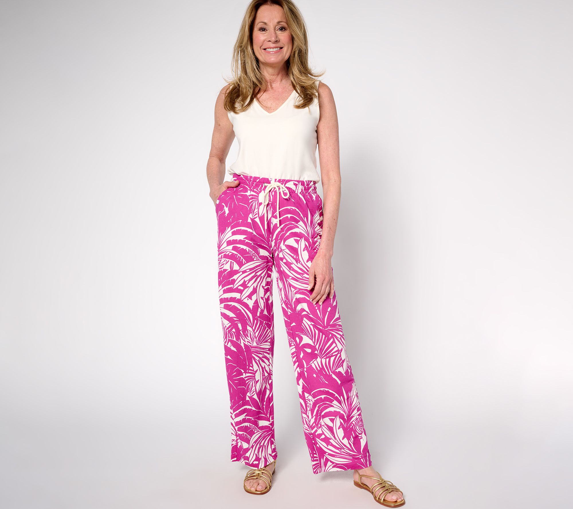 No matter your locale, these Cabana Knit pants bring easy-breezy style to any setting. You're on a permanent beach vacay with their chic full-leg shape and lightweight sunny-season style. Tuck a pair into your travel plans, or just pull them on and pretend you're already there. From Belle by Kim Gravel.