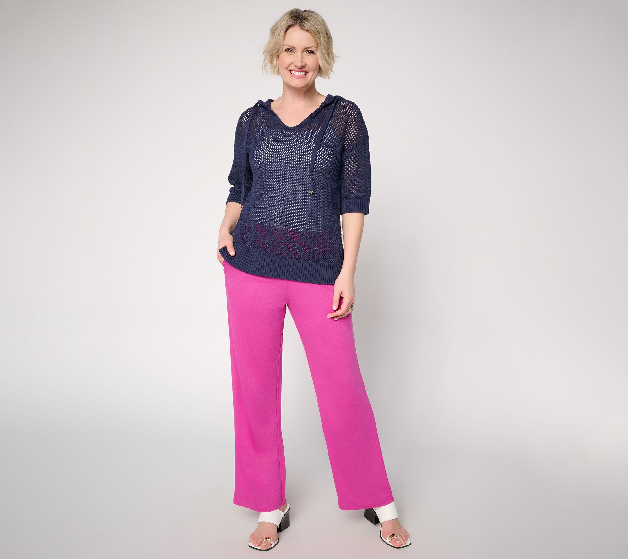 Errands to afternoon meetups -- when you've got business in the morning and a party in the afternoon, these easygoing Cabana Knit pants deliver the comfort and style necessary. The elastic waist slips on smoothly for fuss-free wear, while the straight leg silhouette pairs effortlessly with sneakers or sandals for all your day's adventures. From Belle by Kim Gravel.