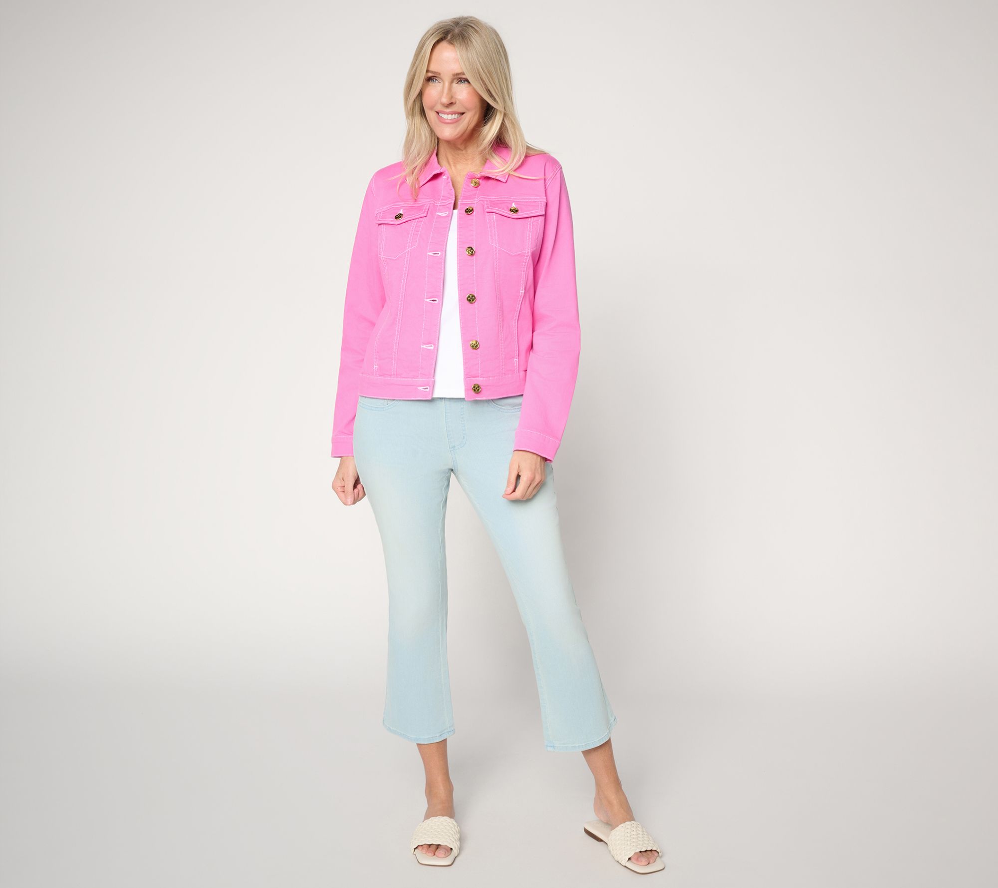 Step away, Belles! Sunny afternoons or spontaneous outings call for these flared-leg crop jeans. Soft Primabelle denim moves comfortably with you as you stroll the park or meet friends for coffee, while the pull-on design and classic five-pocket style offer an easy blend of function and modern polish. From Belle by Kim Gravel.