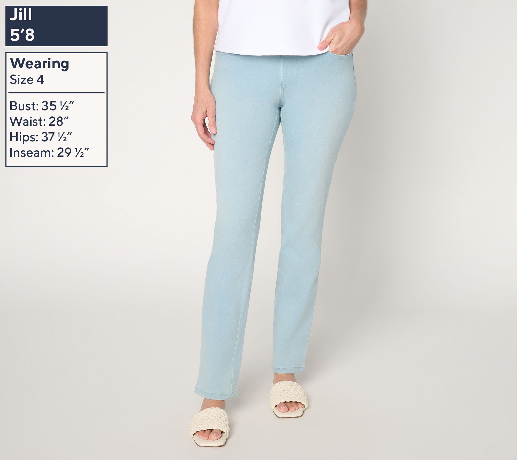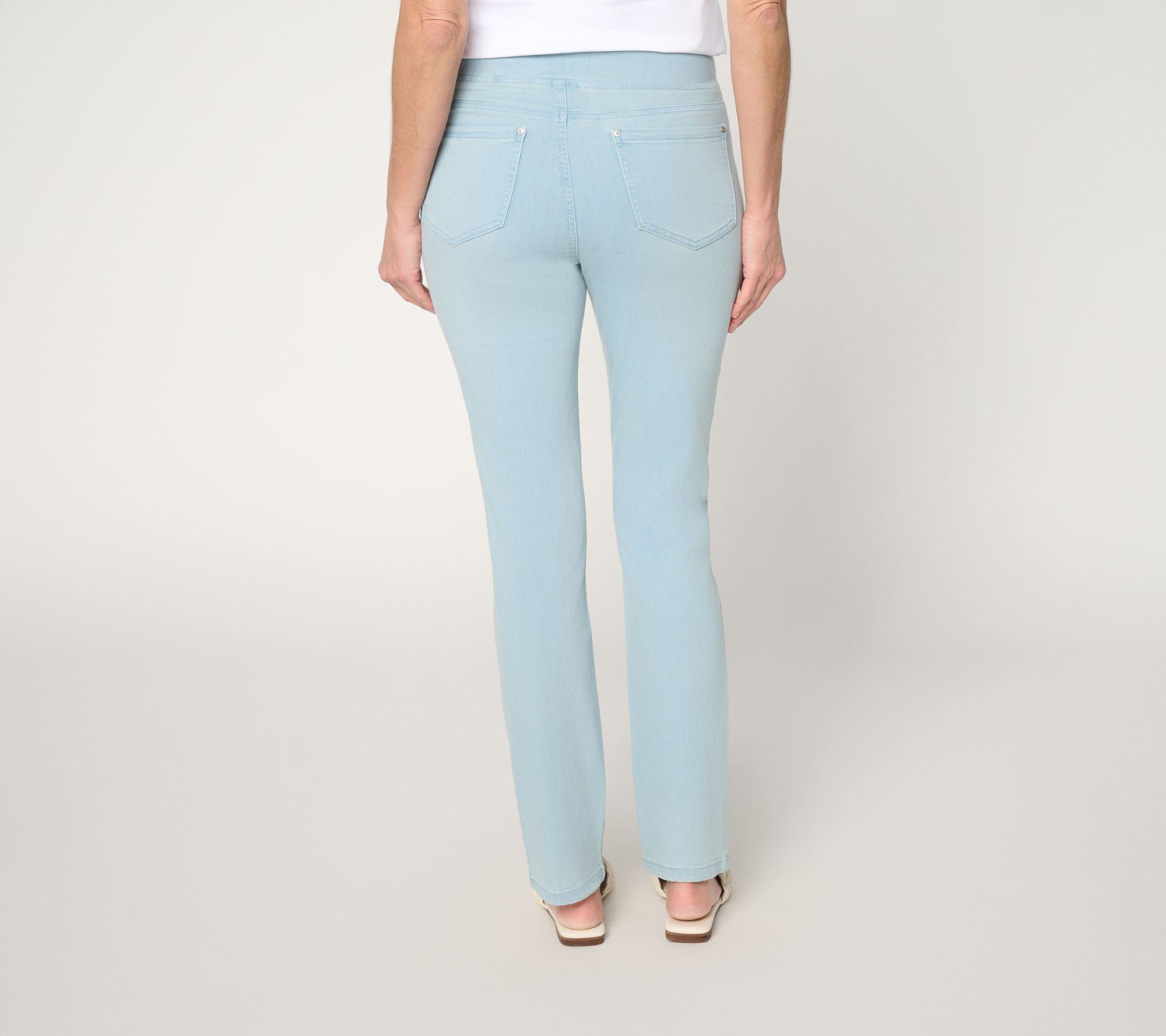 Features: pull-on style, five pockets, full-length