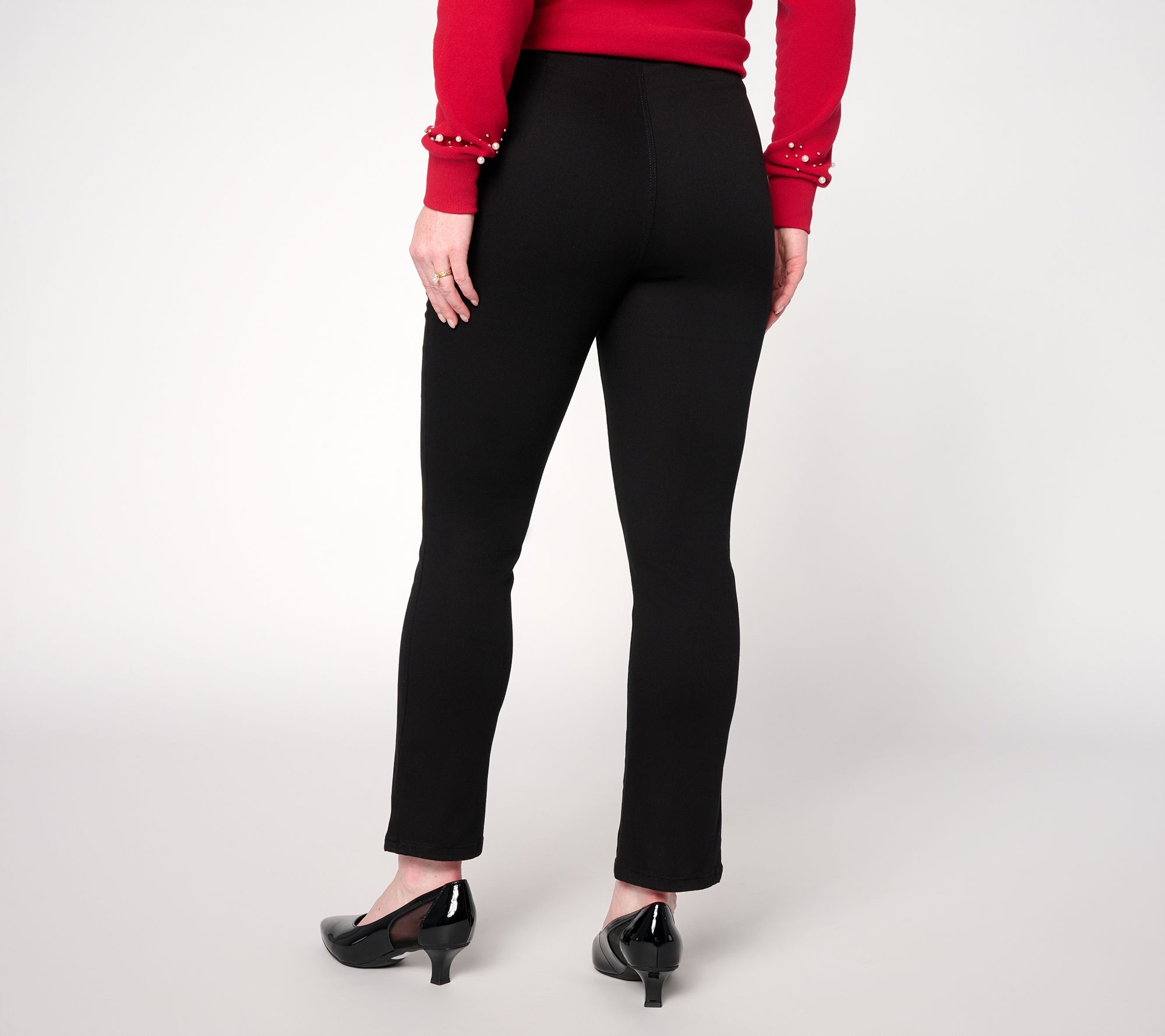 • Features: pull-on style, waist darts, no pockets, ankle length