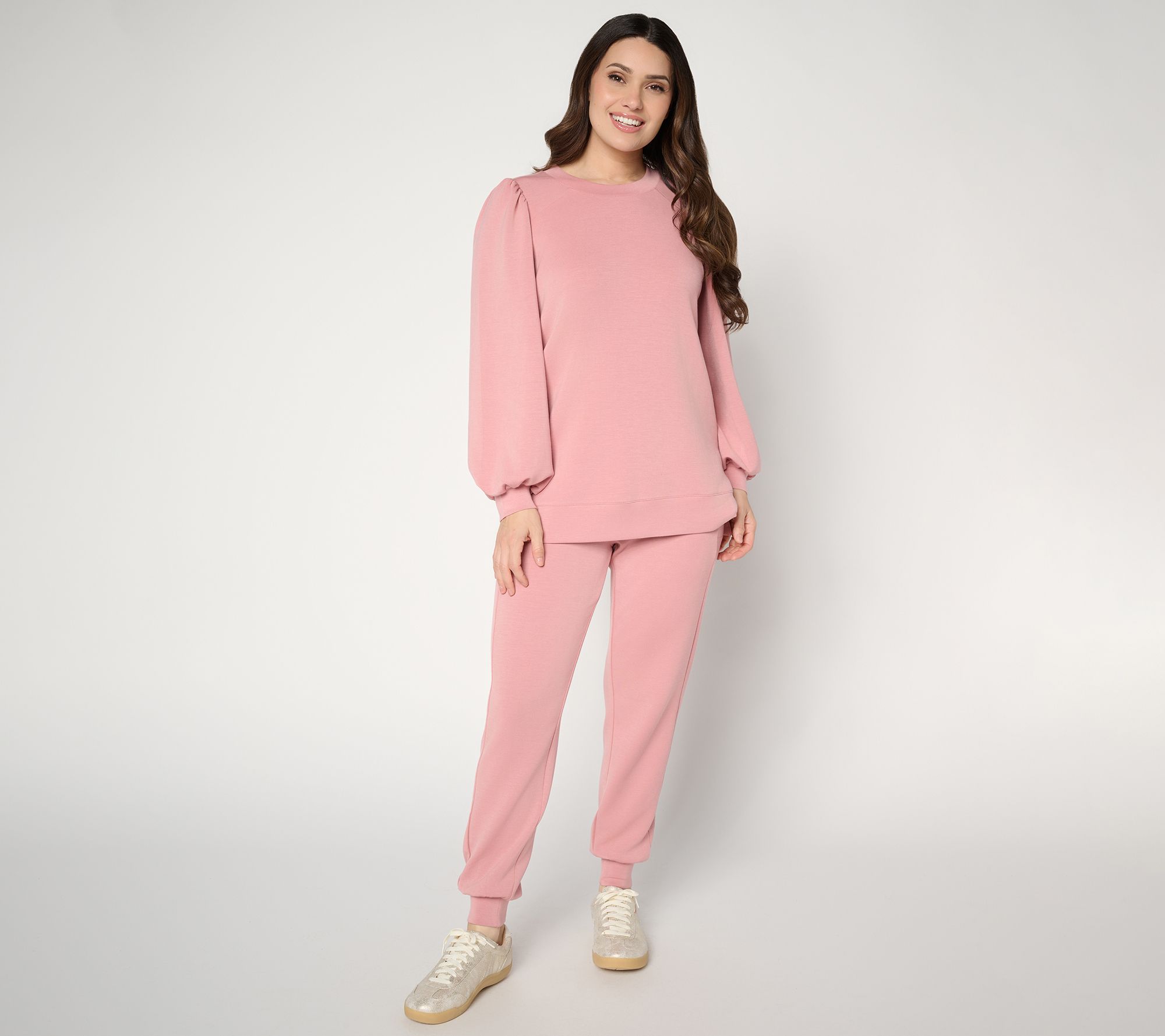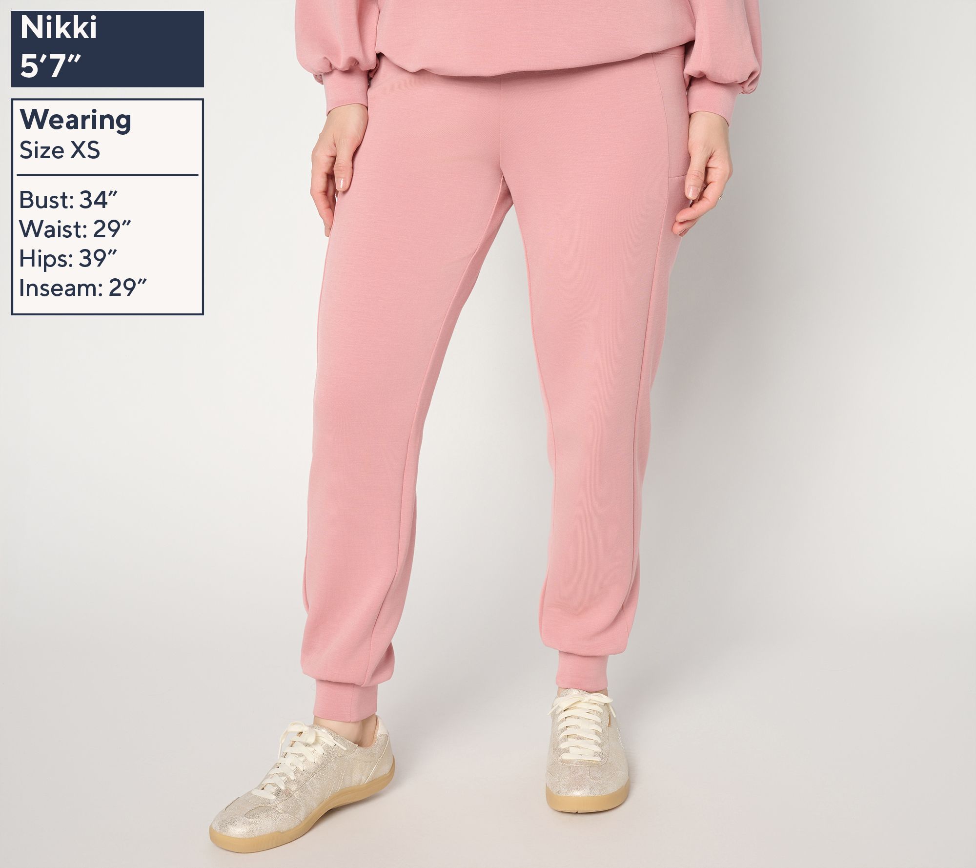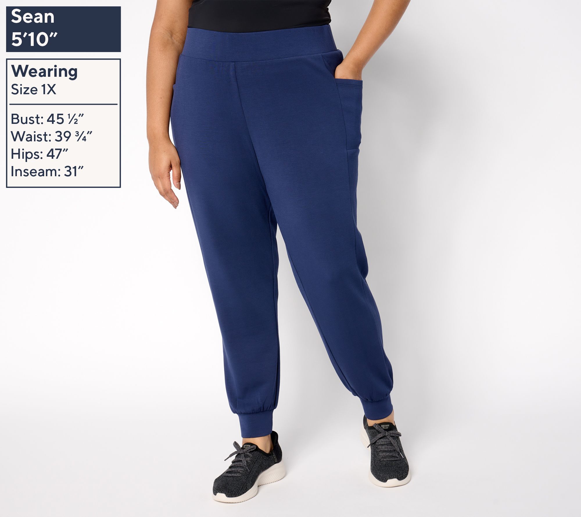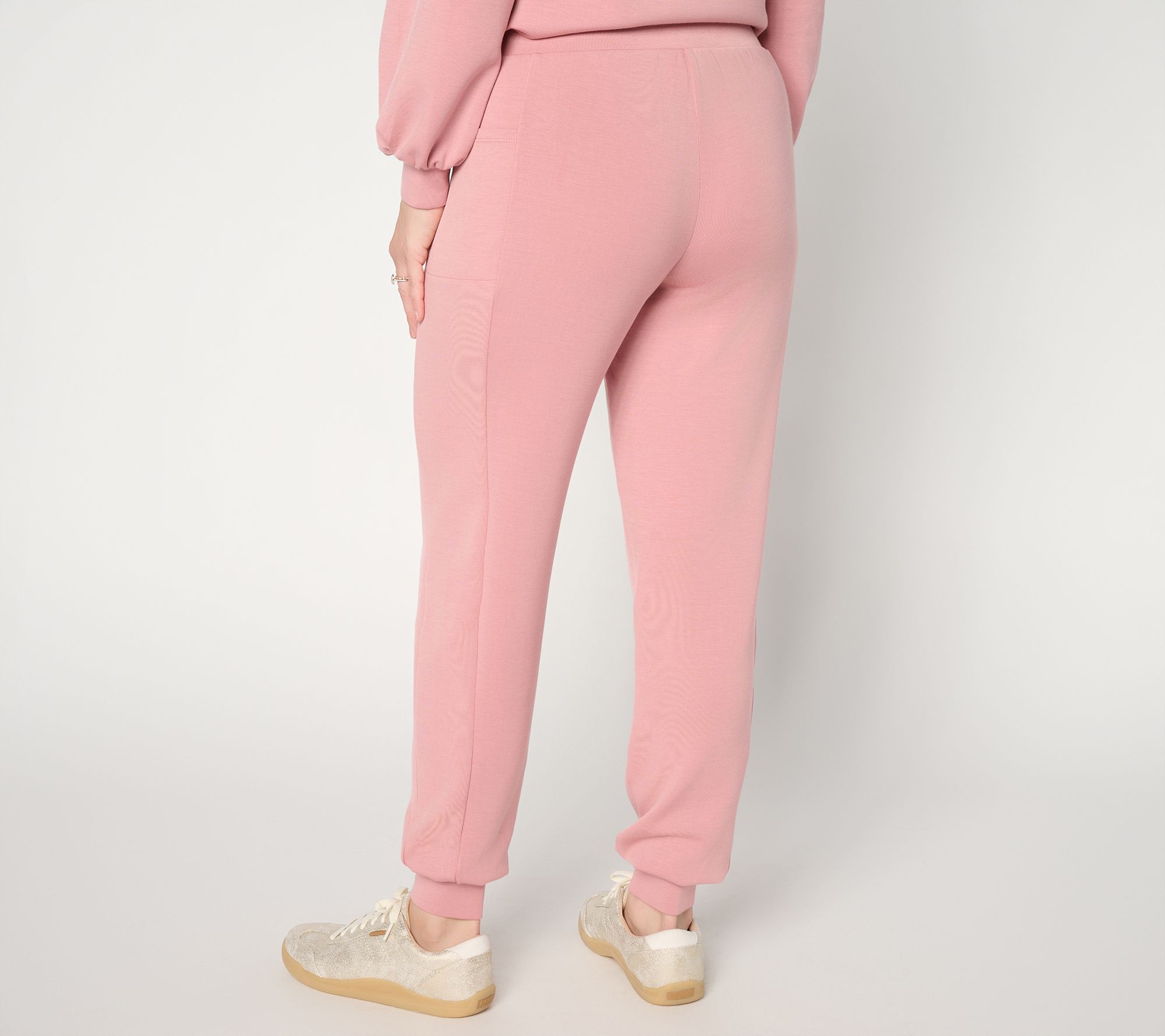 Phone pocket perfection. Sturdy yet smooth ScubaLuxe construction allows the pockets of these joggers to cradle your must-take device without the dreaded droop common in some loungewear. Pull the versatile tapered-leg style on for appointments, lunch dates, and time with the family -- you won't want to take them off! From Belle by Kim Gravel.