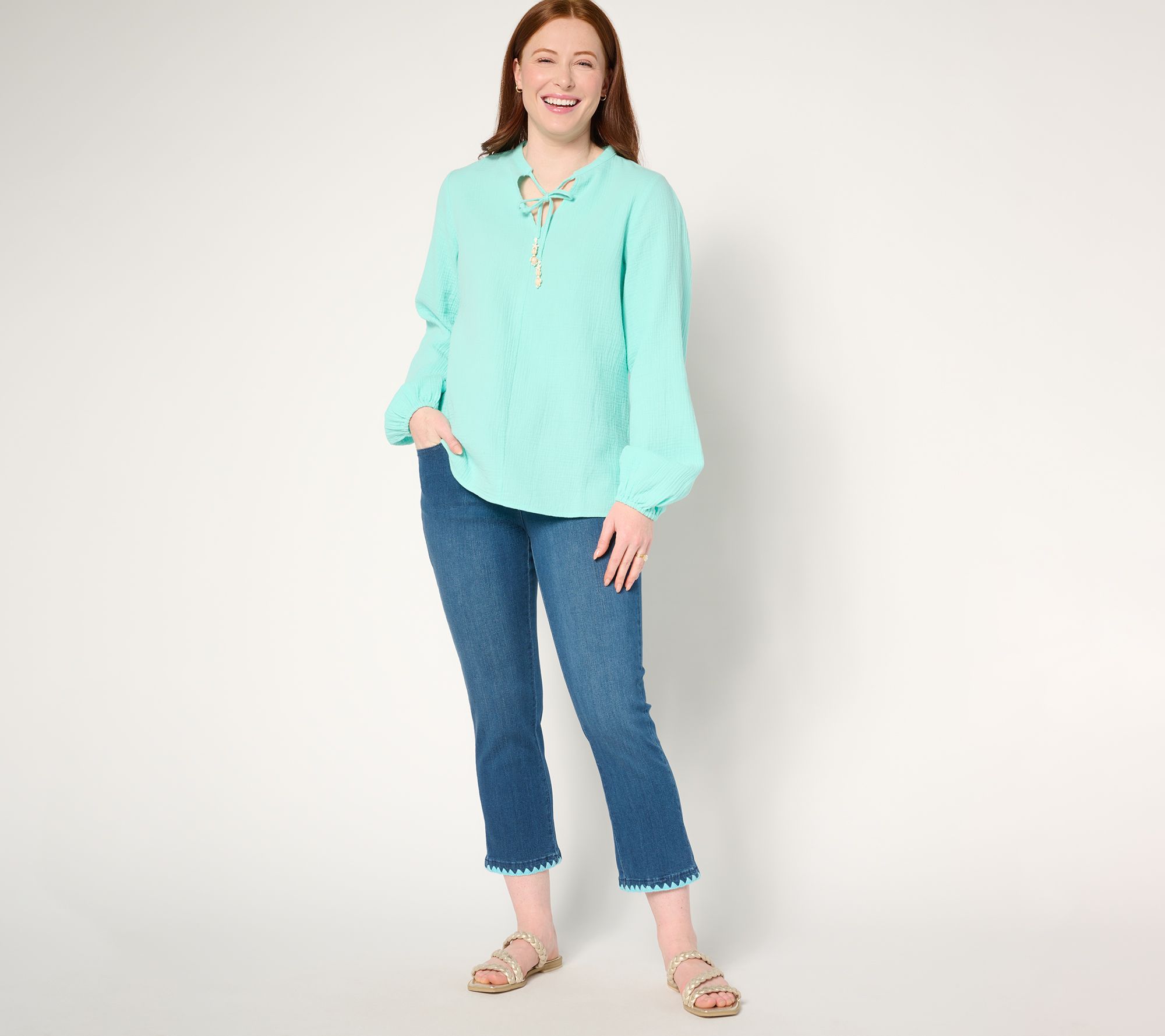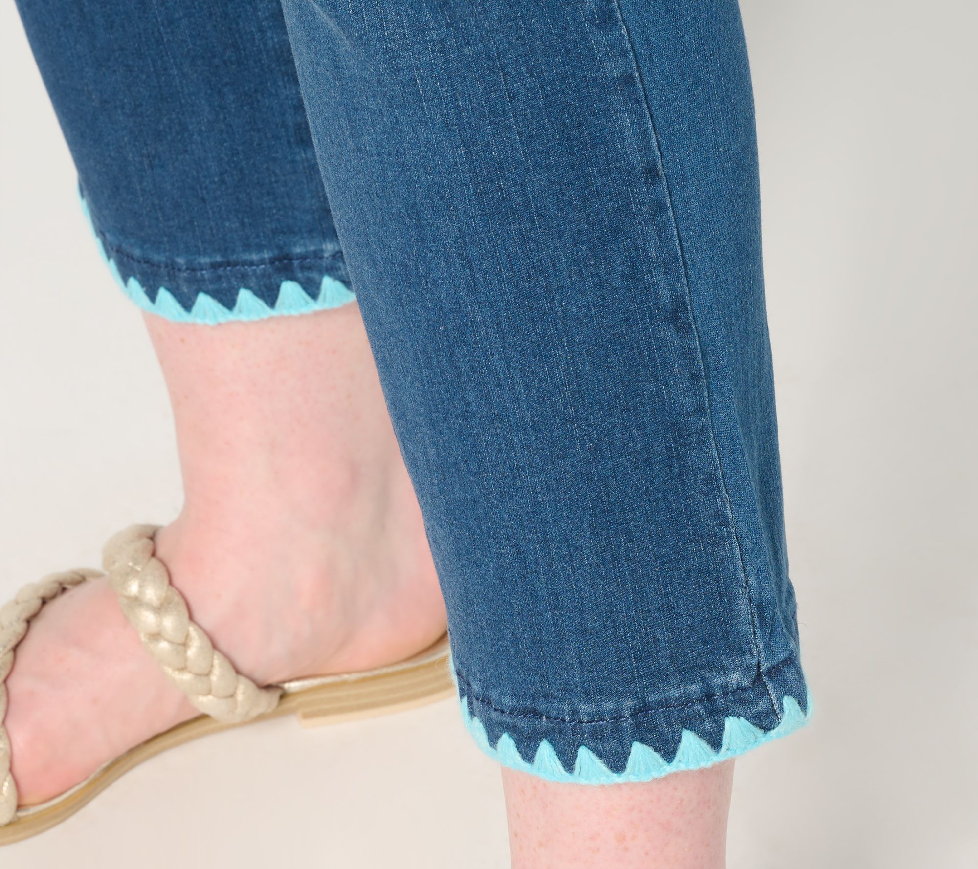Belle by Kim Gravel Regular TripleLuxe Denim Crochet Trim Crop Jean