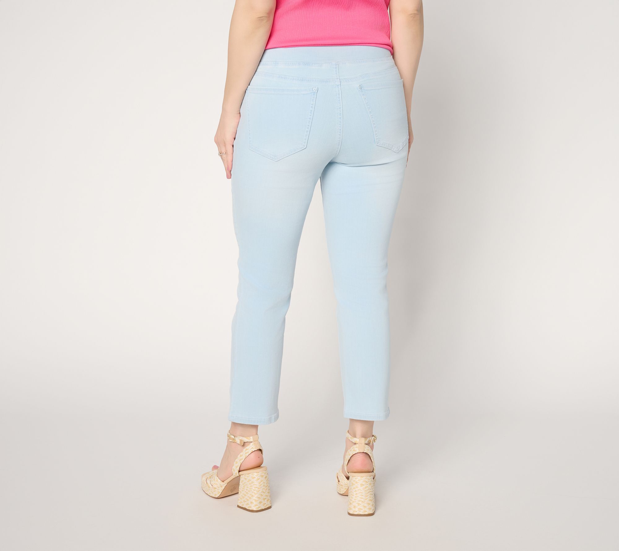 Undeniably flattering with a fitted silhouette, these pull-on crops are made even better thanks to the TripleLuxe Denim fabrication that combines cotton (for comfort), spandex (for figure-hugging stretch), and modal (for another layer of smooth softness). And the straight leg pairs perfectly with wedge sandals when you're feeling flirty, sweet sneaks when you're on your feet, and simple flats for just about any occasion. Your new favorite jeans -- a special delivery coming your way! From Belle by Kim Gravel.