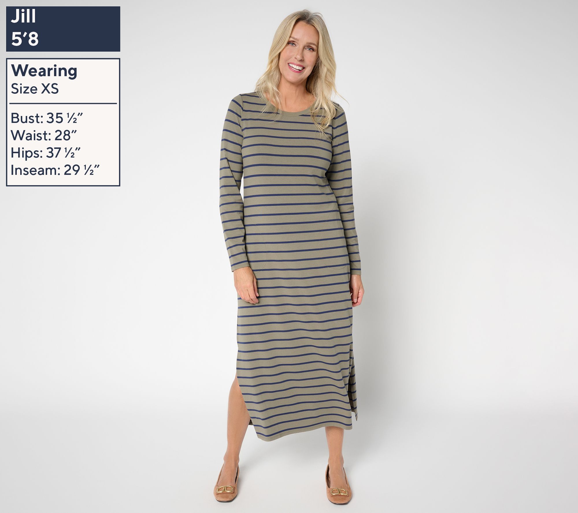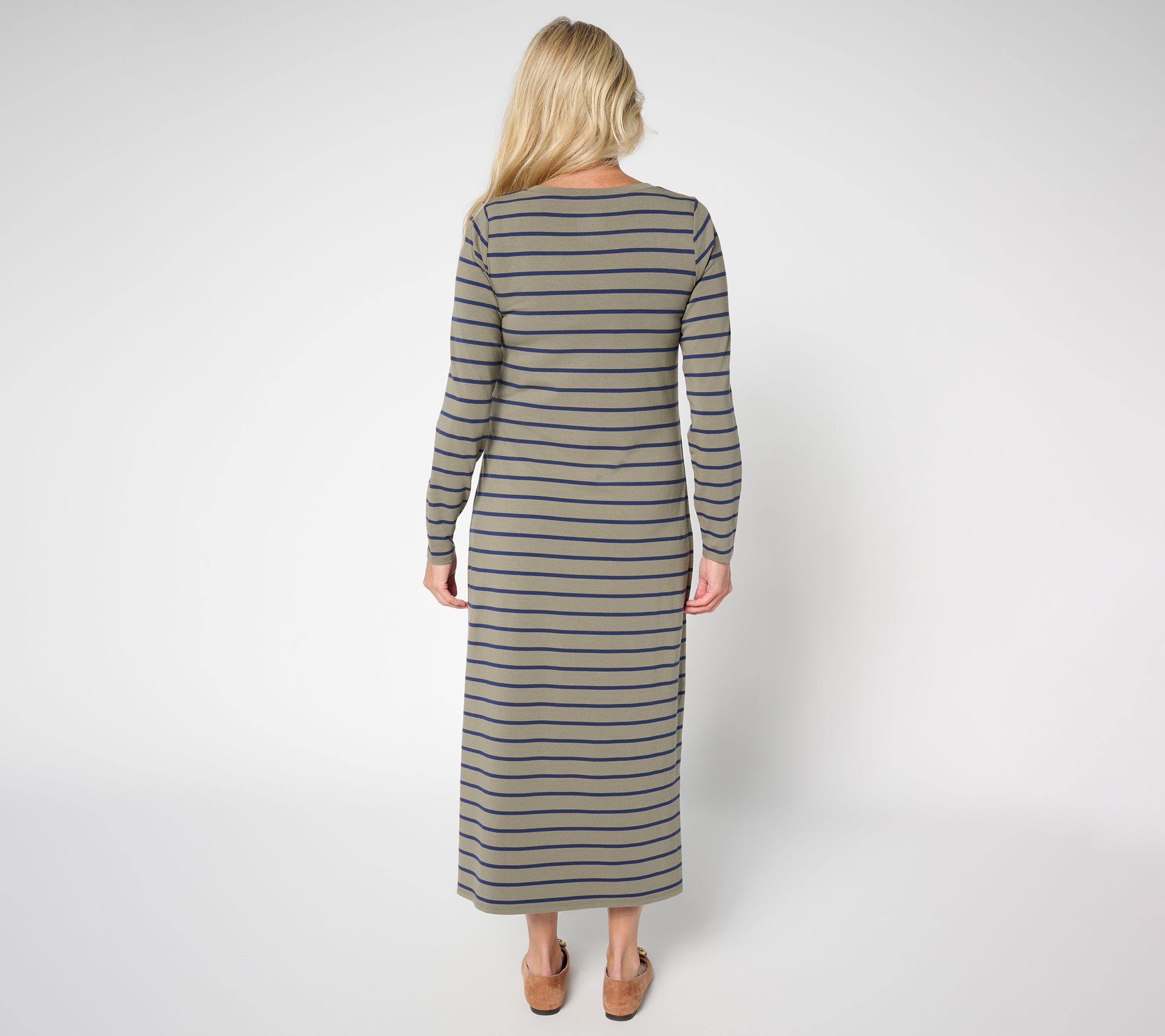 Running errands, heading out to lunch, or just enjoying some downtime at home -- this TripleLuxe Knit maxi dress is designed to keep up with all your plans. With long sleeves, a classic round neckline, and handy side-seam pockets, it's an easy favorite you'll reach for again and again. From Belle by Kim Gravel.