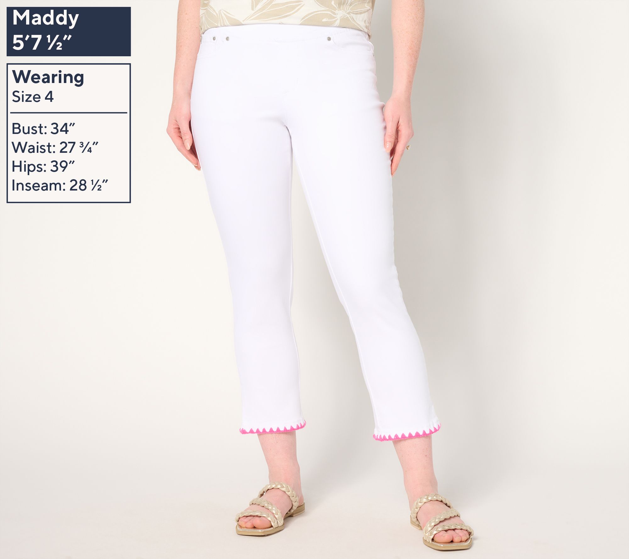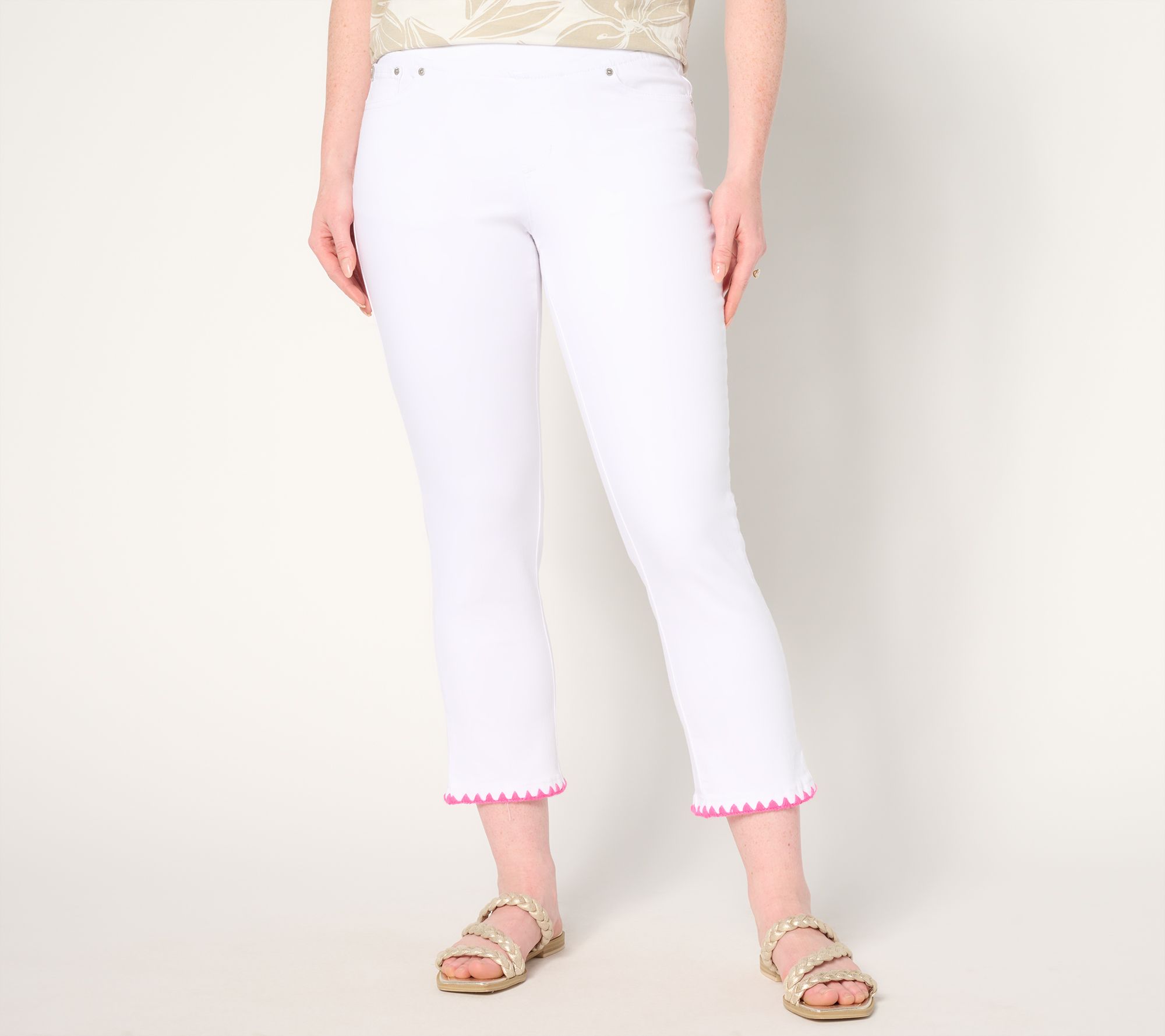 Ready to embrace warmer weather with a chic twist? Kim Gravel definitely is! She's added cool crochet trim to the bottom leg that gives these TripleLuxe crops a slight hippie-chic edge. They're a throwback alternative you'll return to again and again for casual outings or creative workwear looks. From Belle by Kim Gravel.