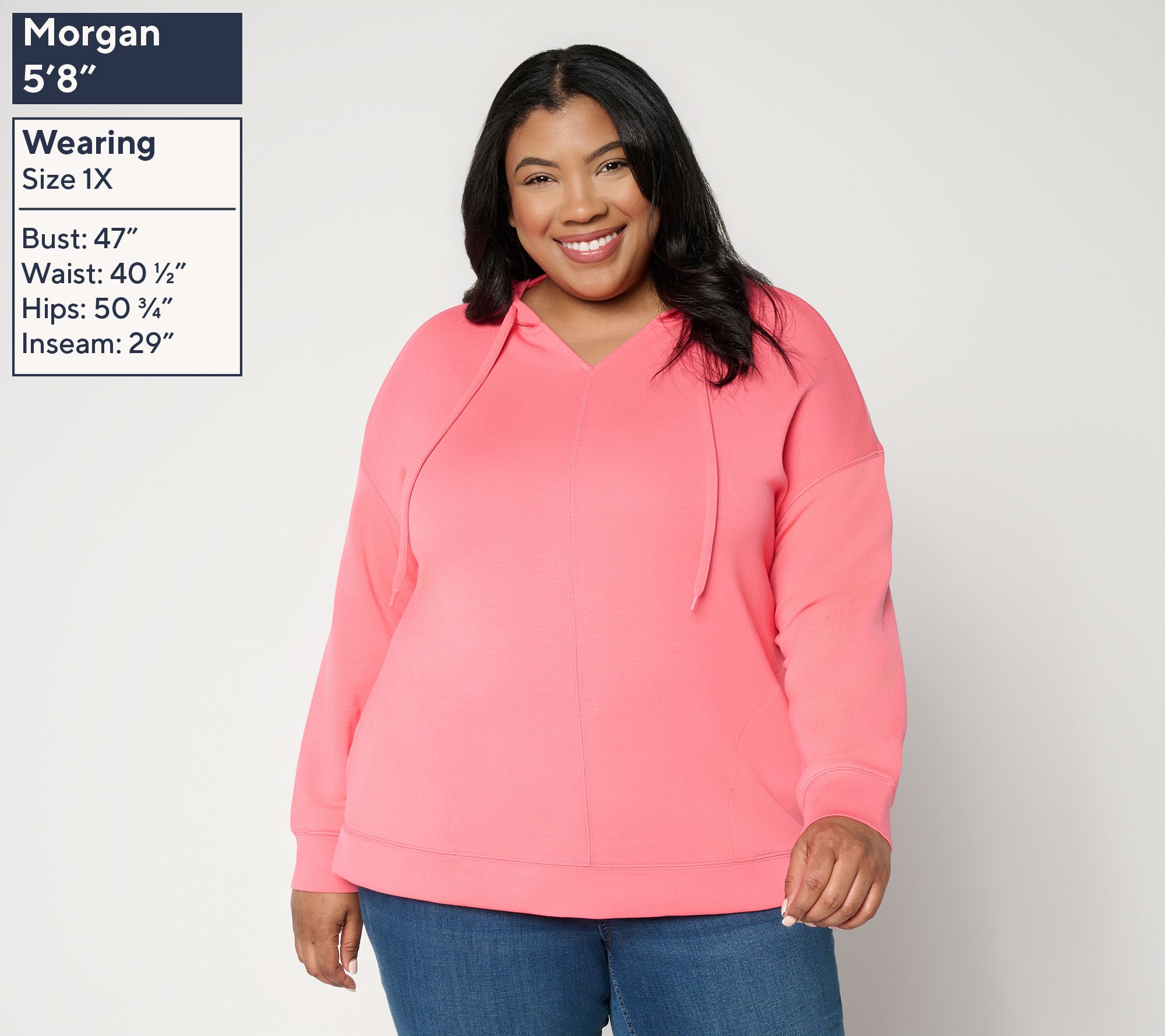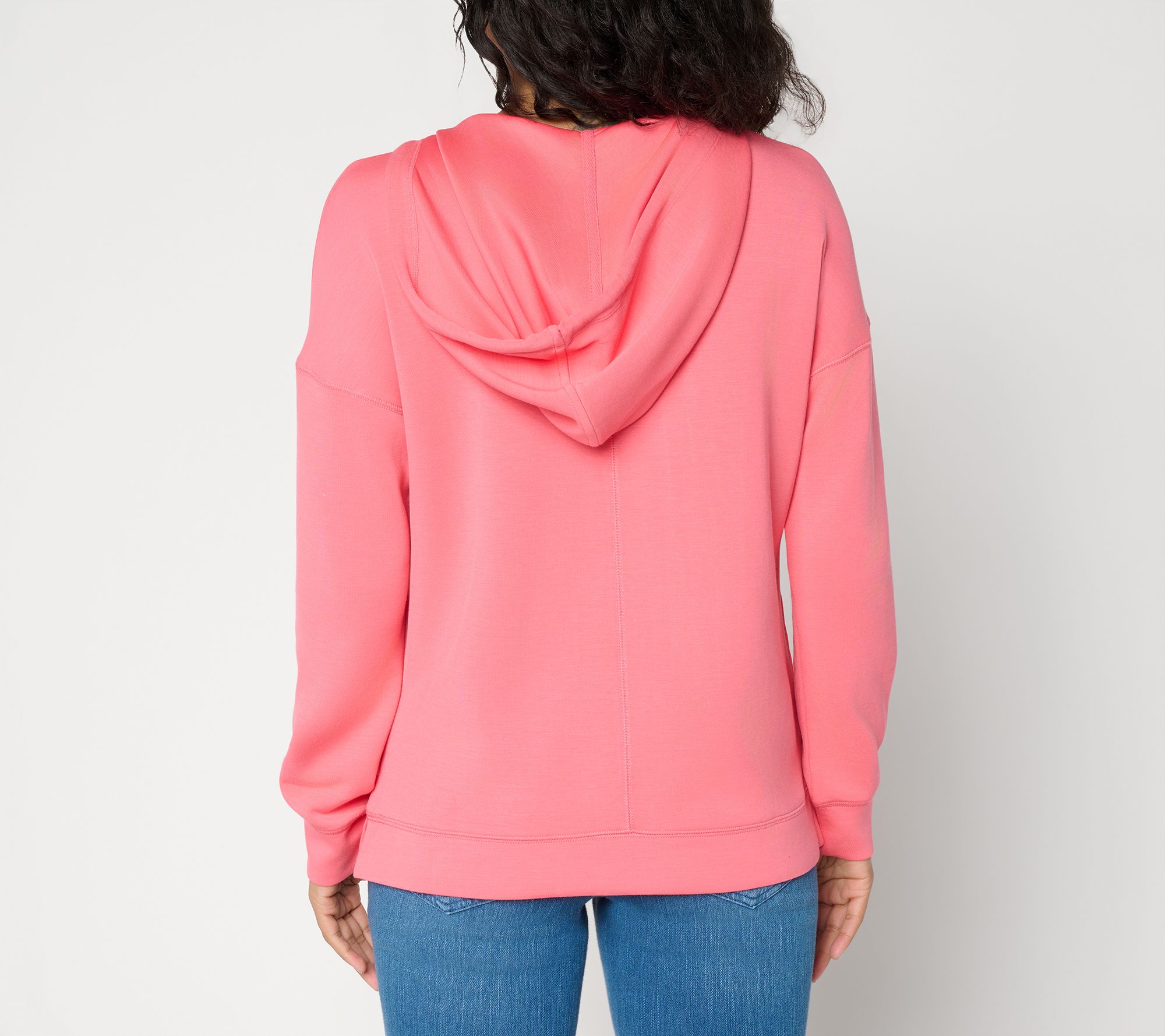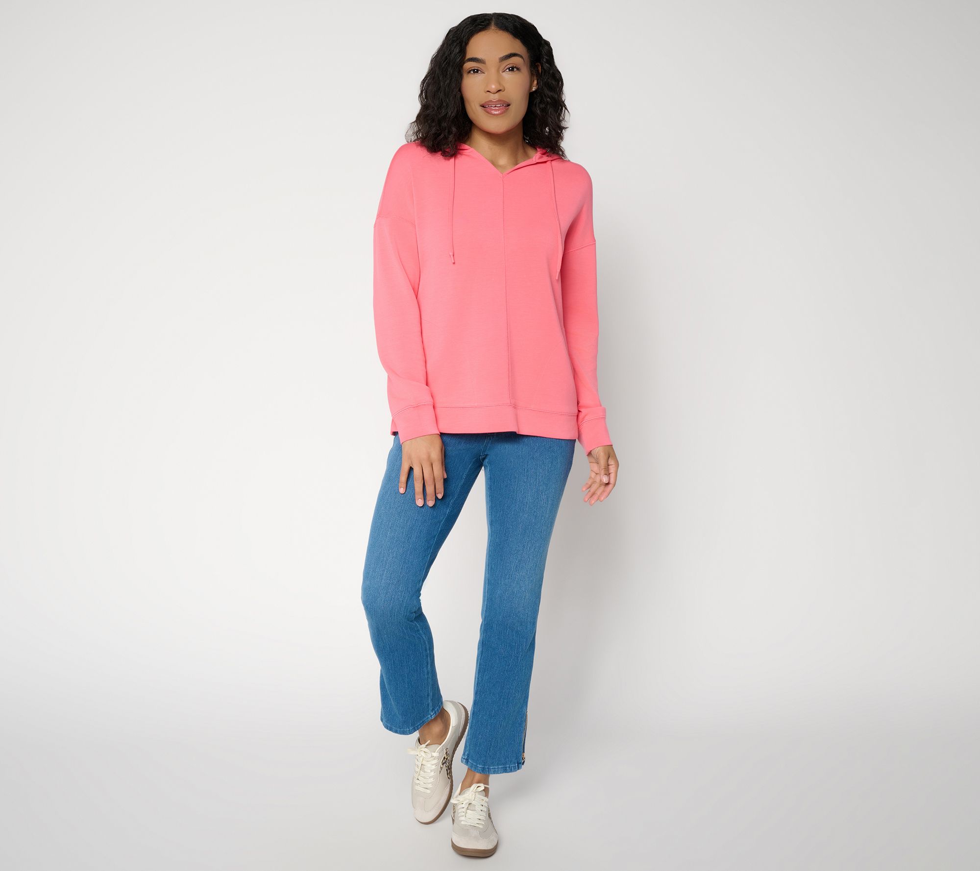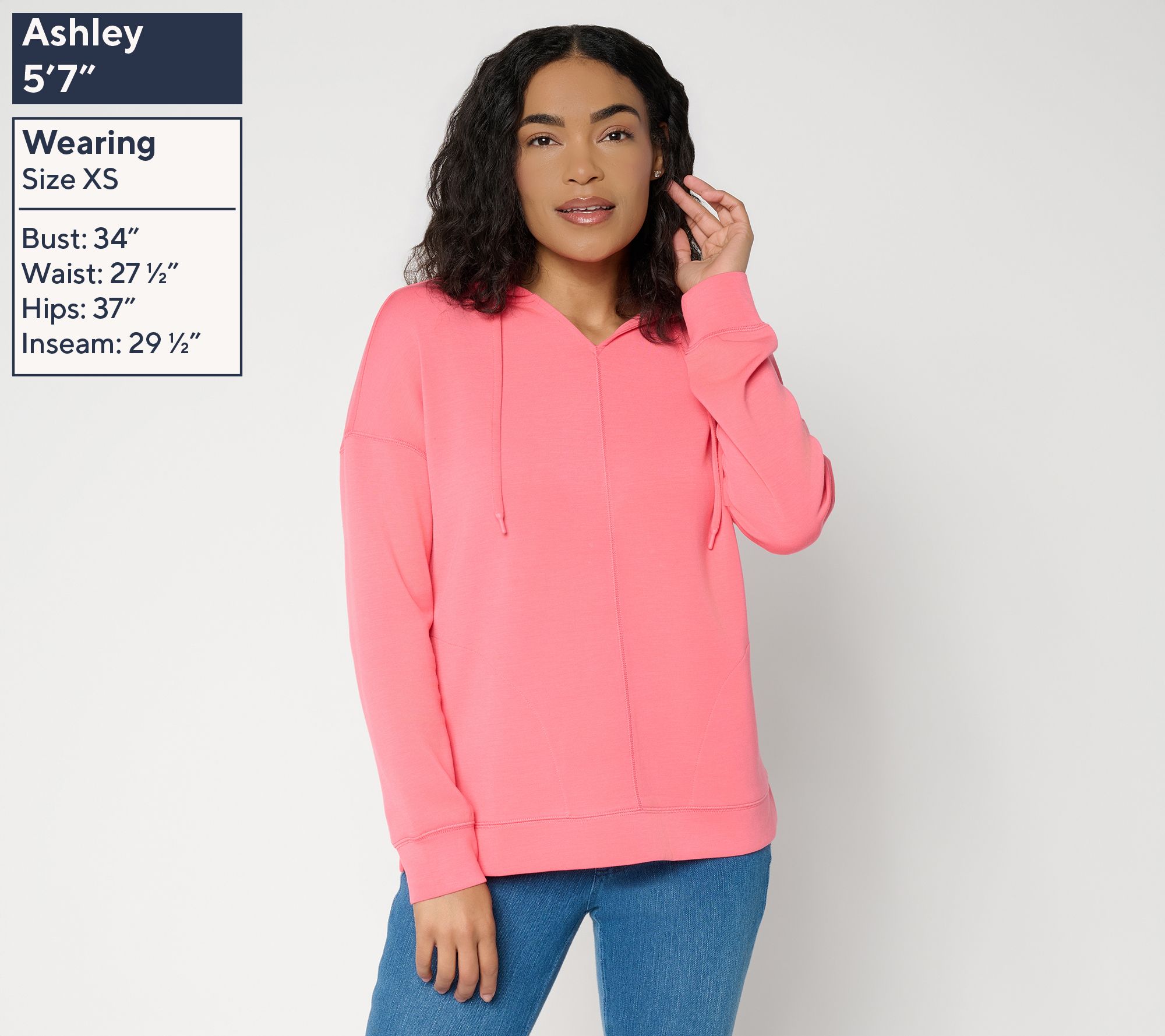Dive into a fresh season with a fresh layer: Kim Gravel's versatile ScubaLuxe hoodie. Dropped shoulders and roomy pockets give you freedom to move, pickup shells, or share the day with kids or pets. From Belle by Kim Gravel.