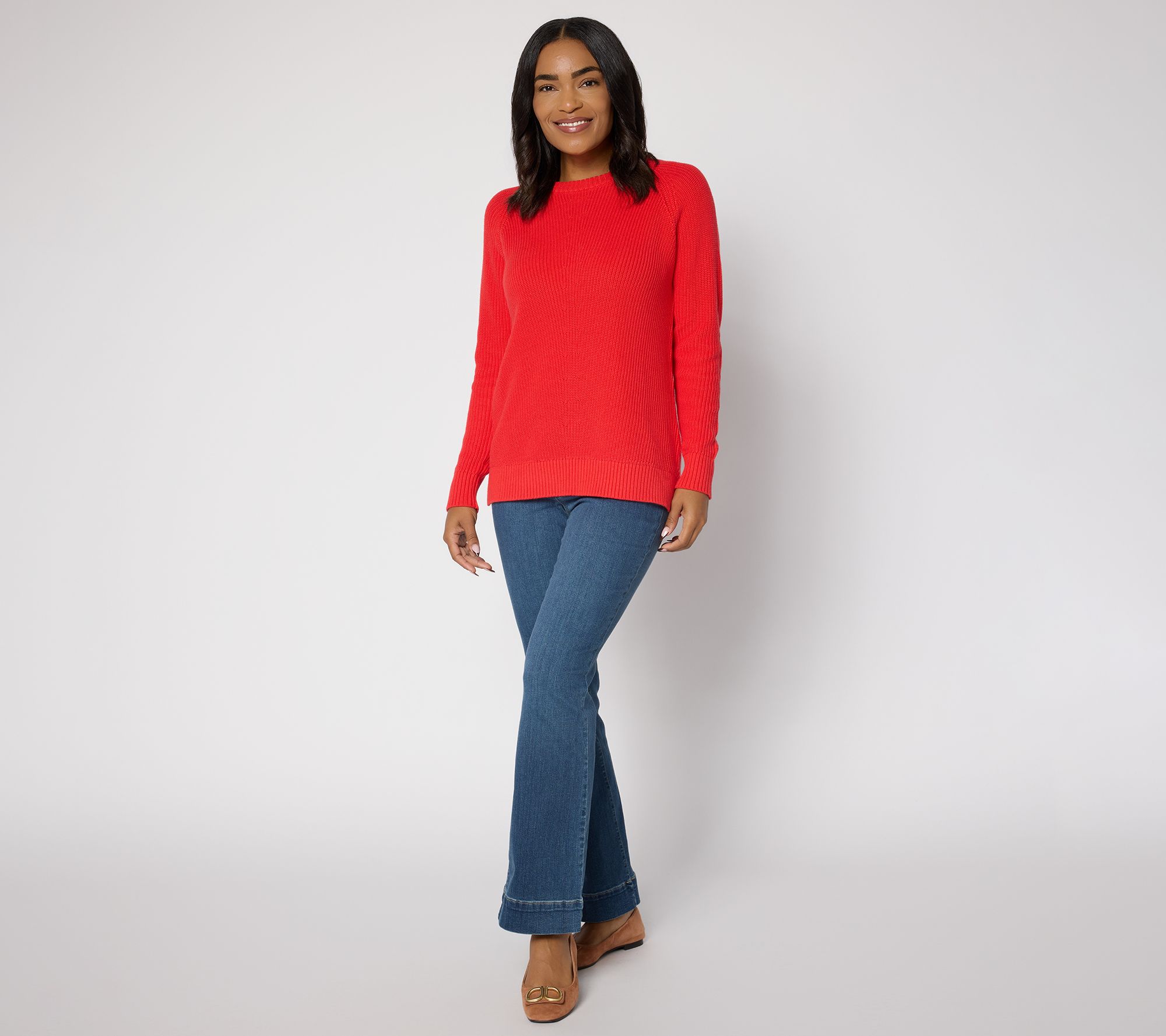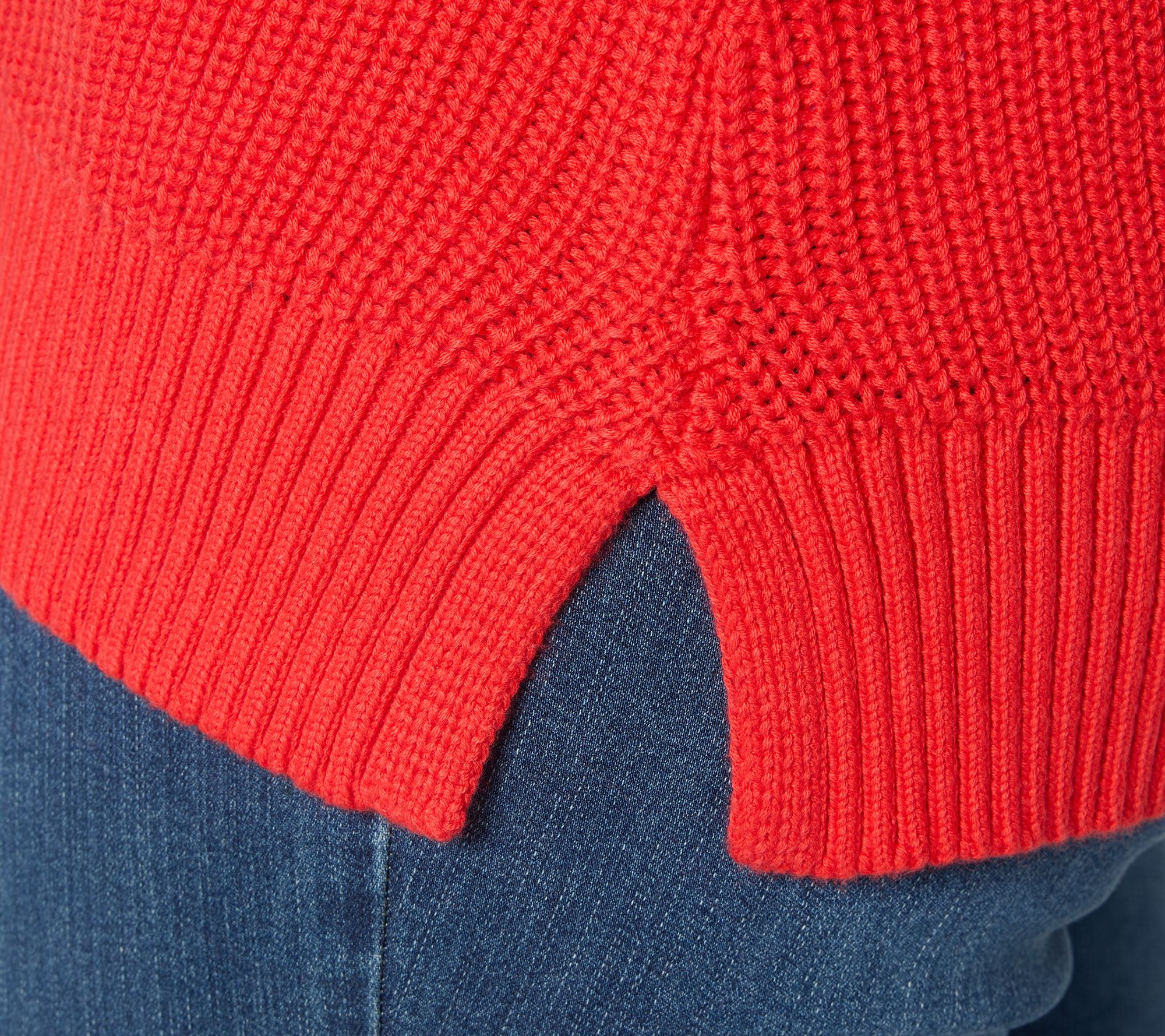 Shaker things up! A day of errands or an afternoon brunch becomes effortless with this shaker-knit sweater, designed for versatile styling. Raglan sleeves and subtle pointelle stitch details create dimension, while ribbed cuffs and a straight hem with side slits offer a polished lift to your everyday look. From Belle by Kim Gravel.