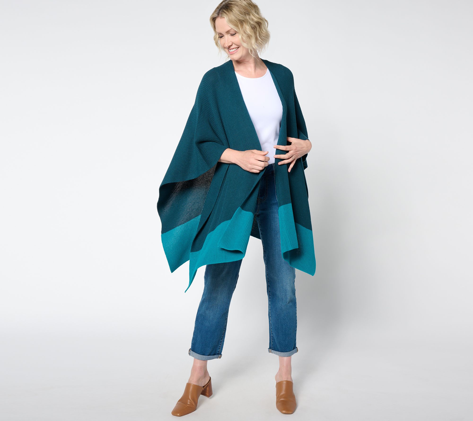 Belle by Kim Gravel Shaker Knit Color Block Ruana