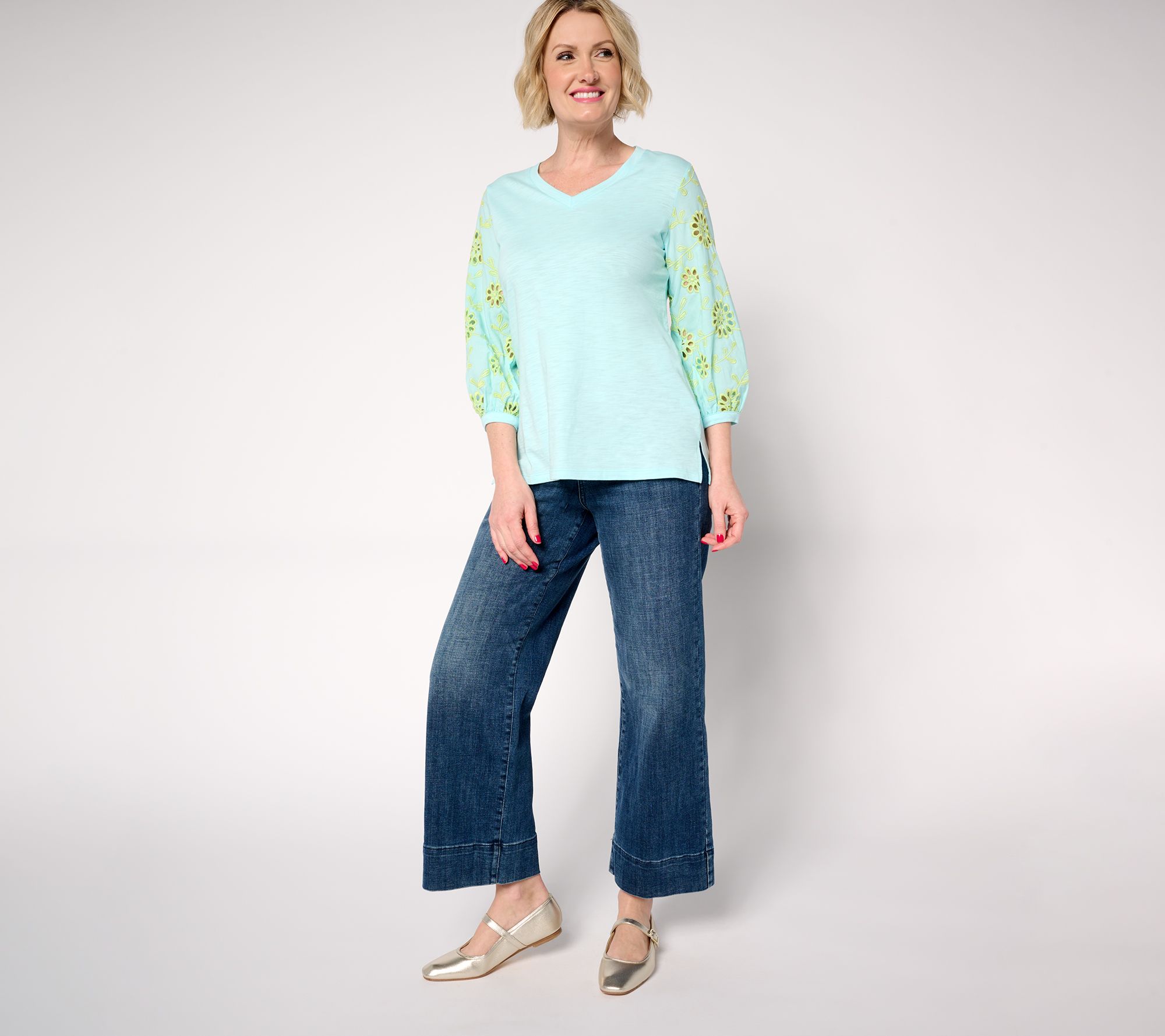eyelets on you! Let your playful side show in a slub knit top that's as effortlessly as your favorite tee. From Belle by Kim Gravel.
