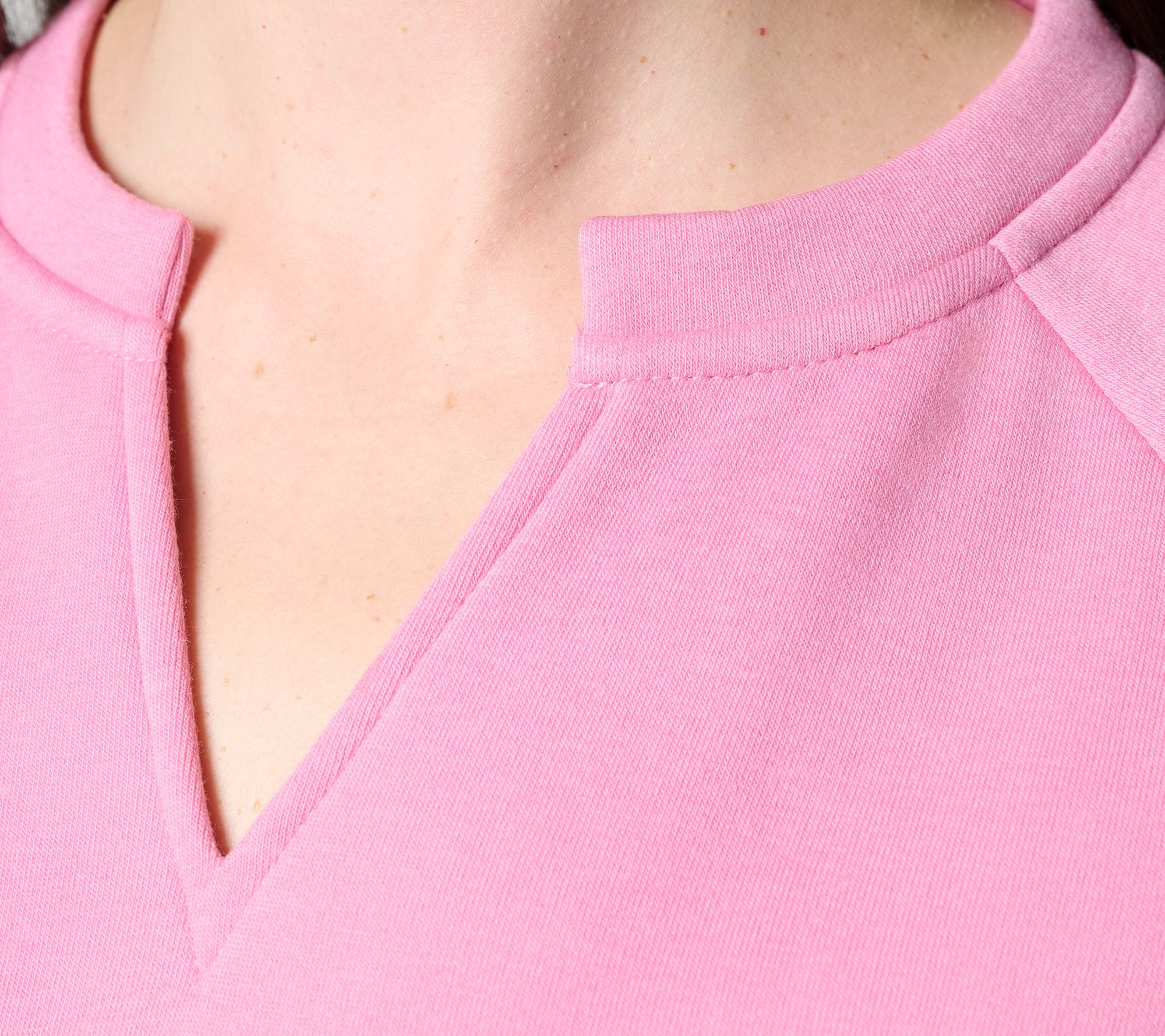 Features: split neck, long sleeves, raglan sleeves, cuffs, bottom band