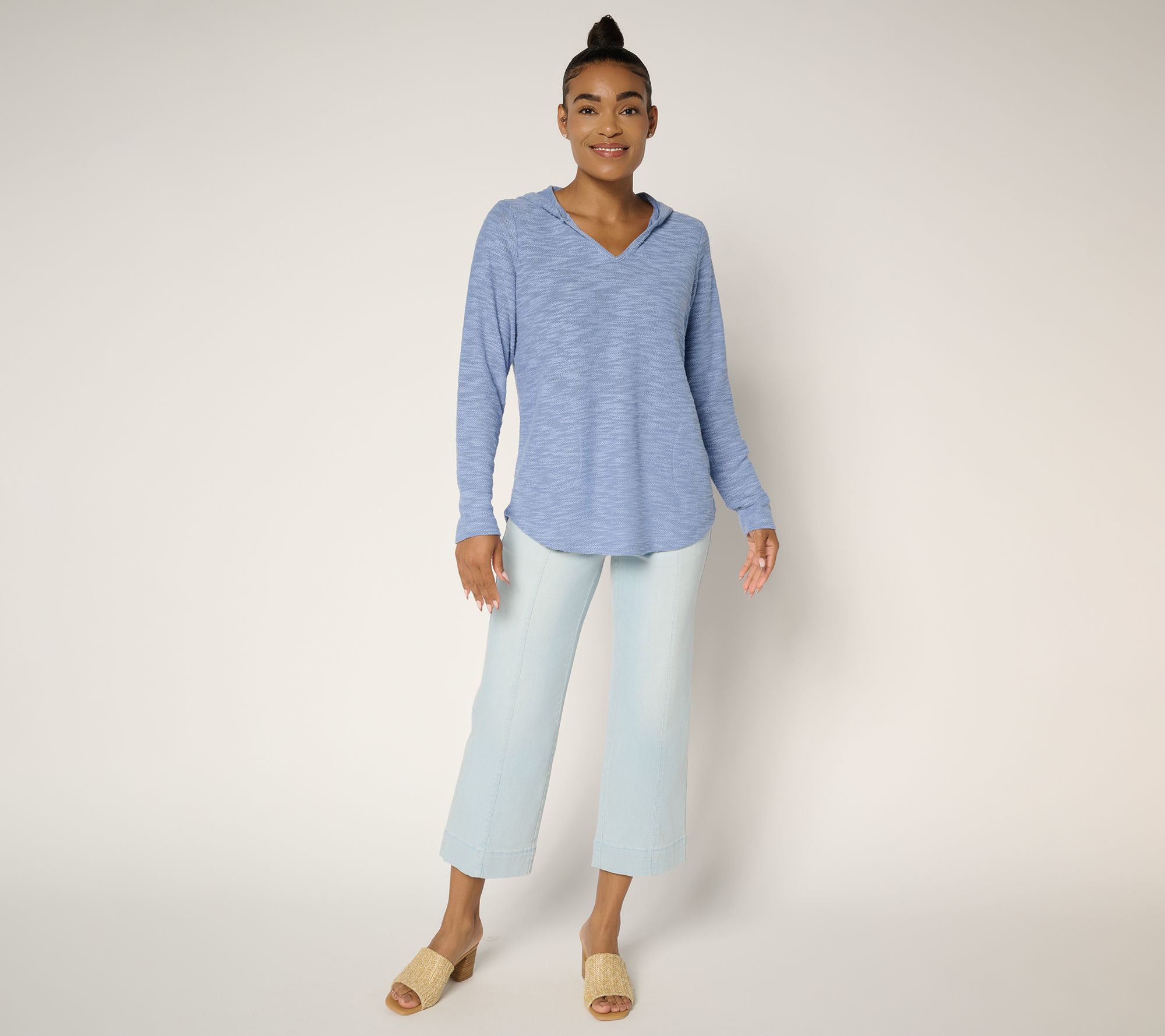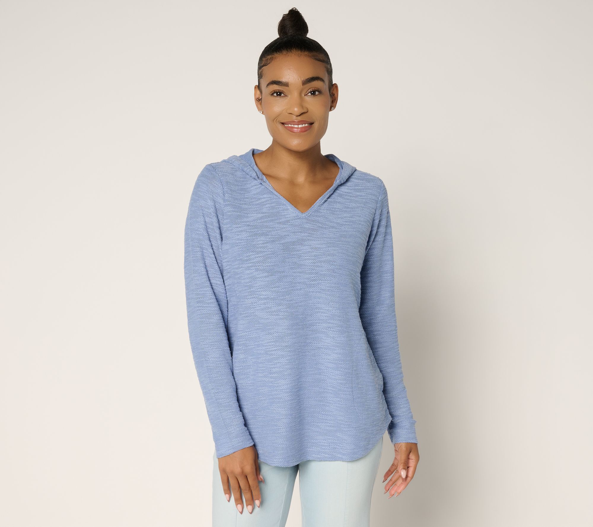 Belle by Kim Gravel Sweatshirt Slub V-Neck Hooded Top
