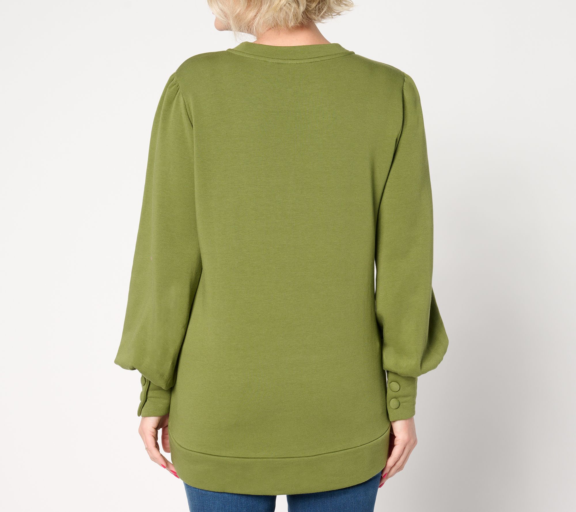 Y'all, suit your fancy in this TripleLuxe fleece! The comfy-cozy, pop-on-and-go style is elevated by buttoned blouson sleeves, so it's just as at home at a cute cafe or downtown boutiques as it is on your back deck. From Belle by Kim Gravel.