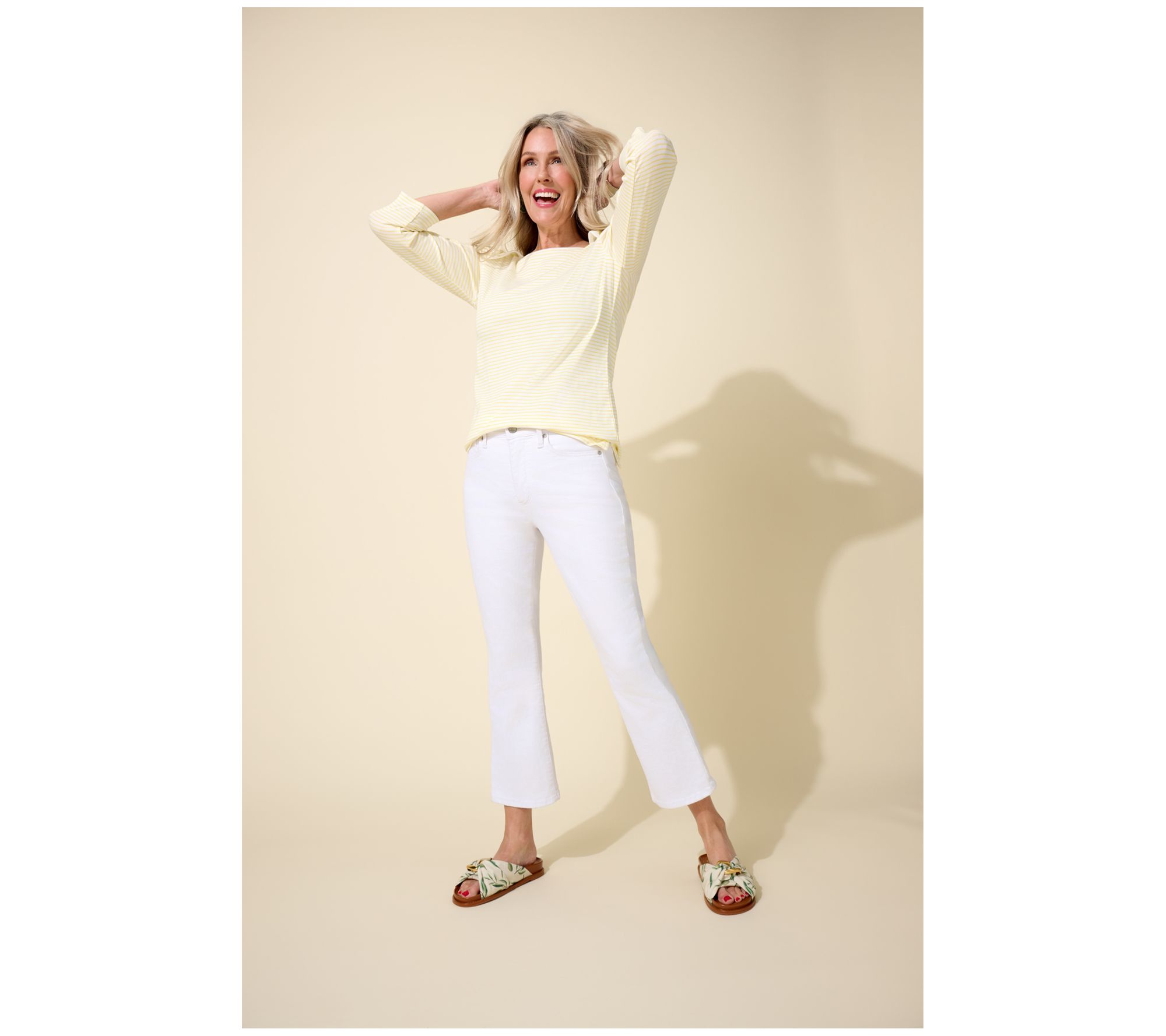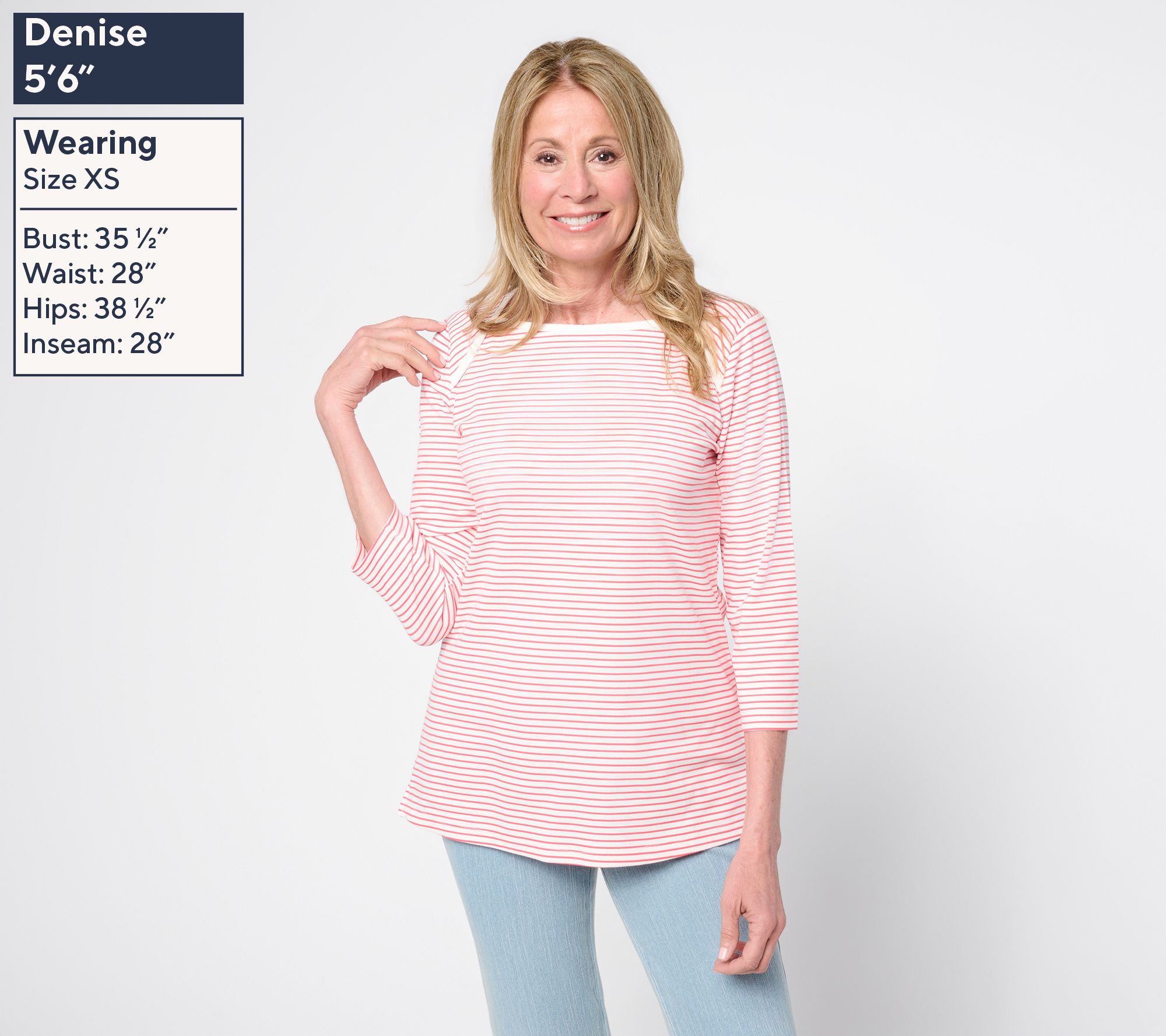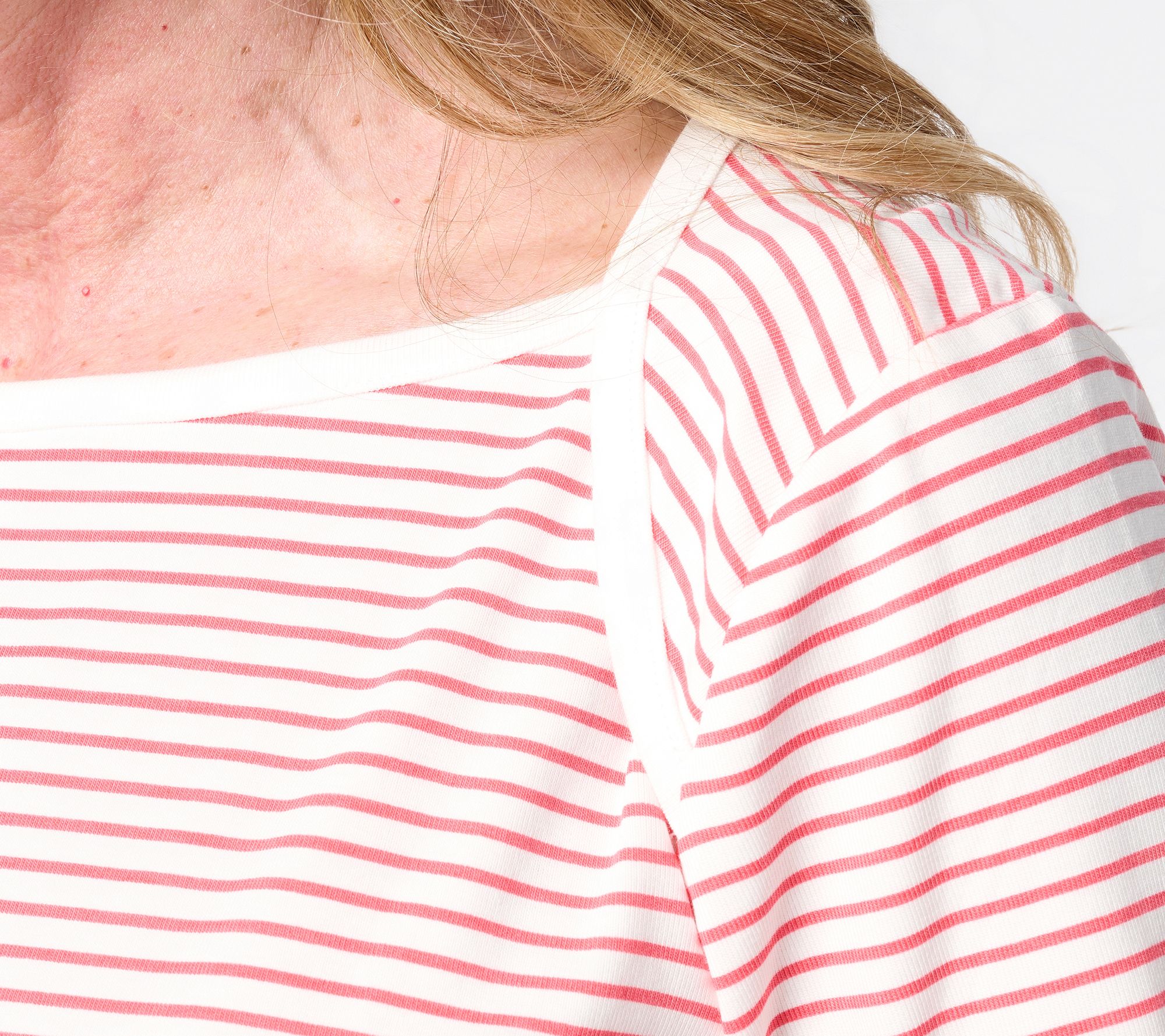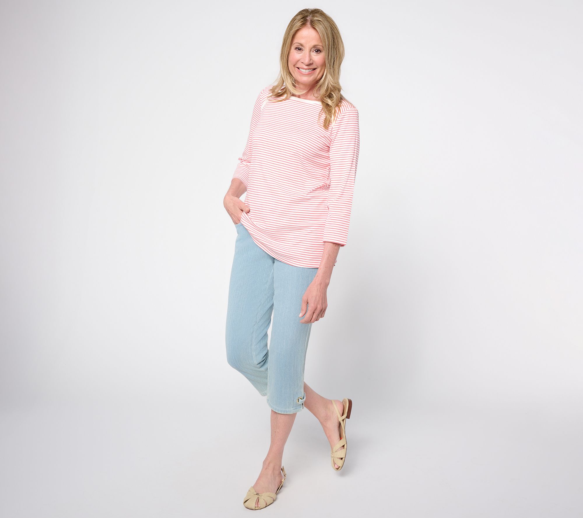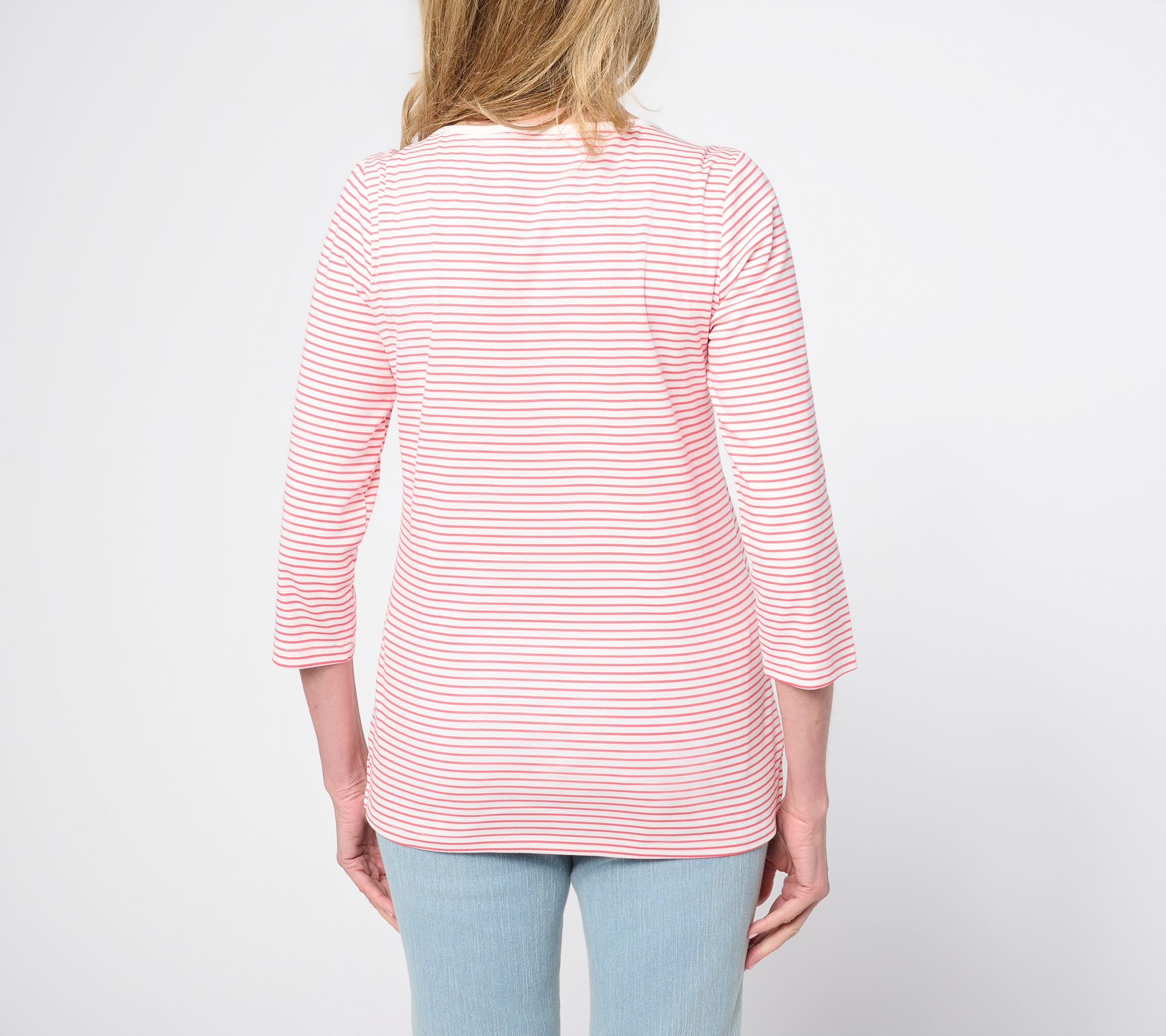 From day-to-evening, this 3/4-sleeve top adds a touch of effortless polish to any look with its flattering bateau neckline and contemporary straight hem. Light ribbing and side slits offer stylish details that pair easily with jeans or dressier pants. From Belle by Kim Gravel.