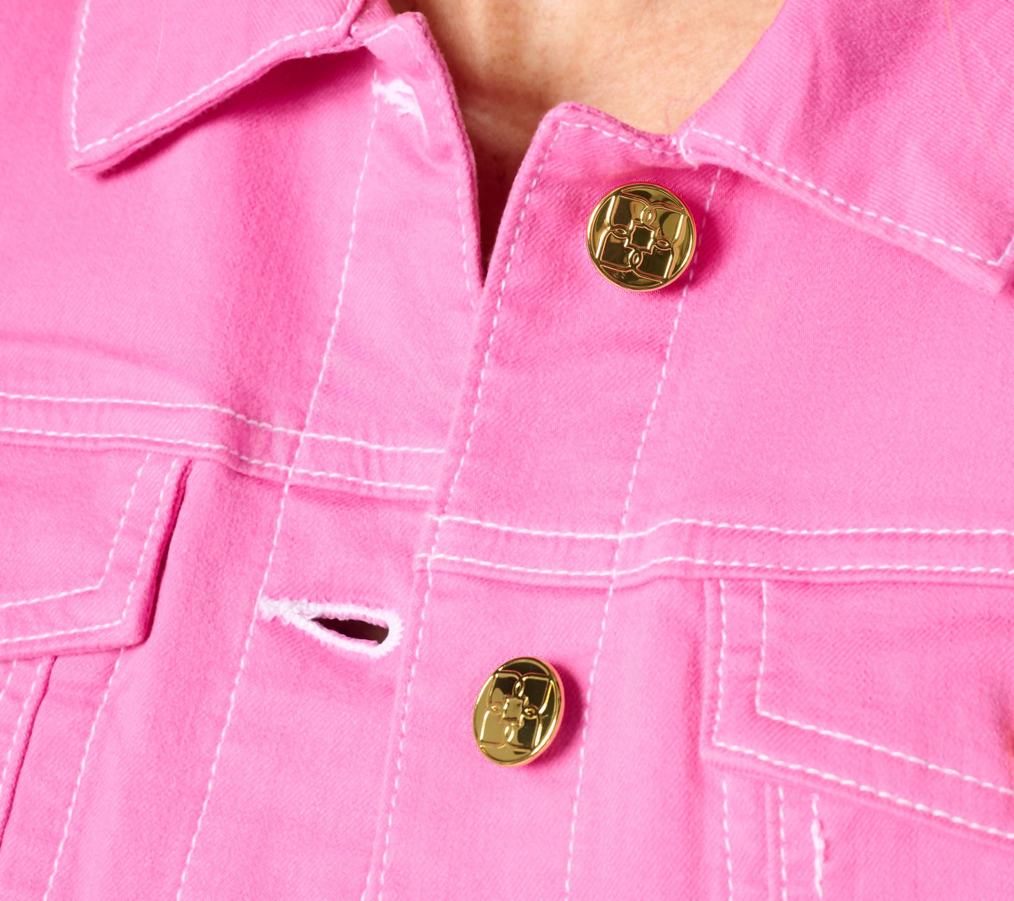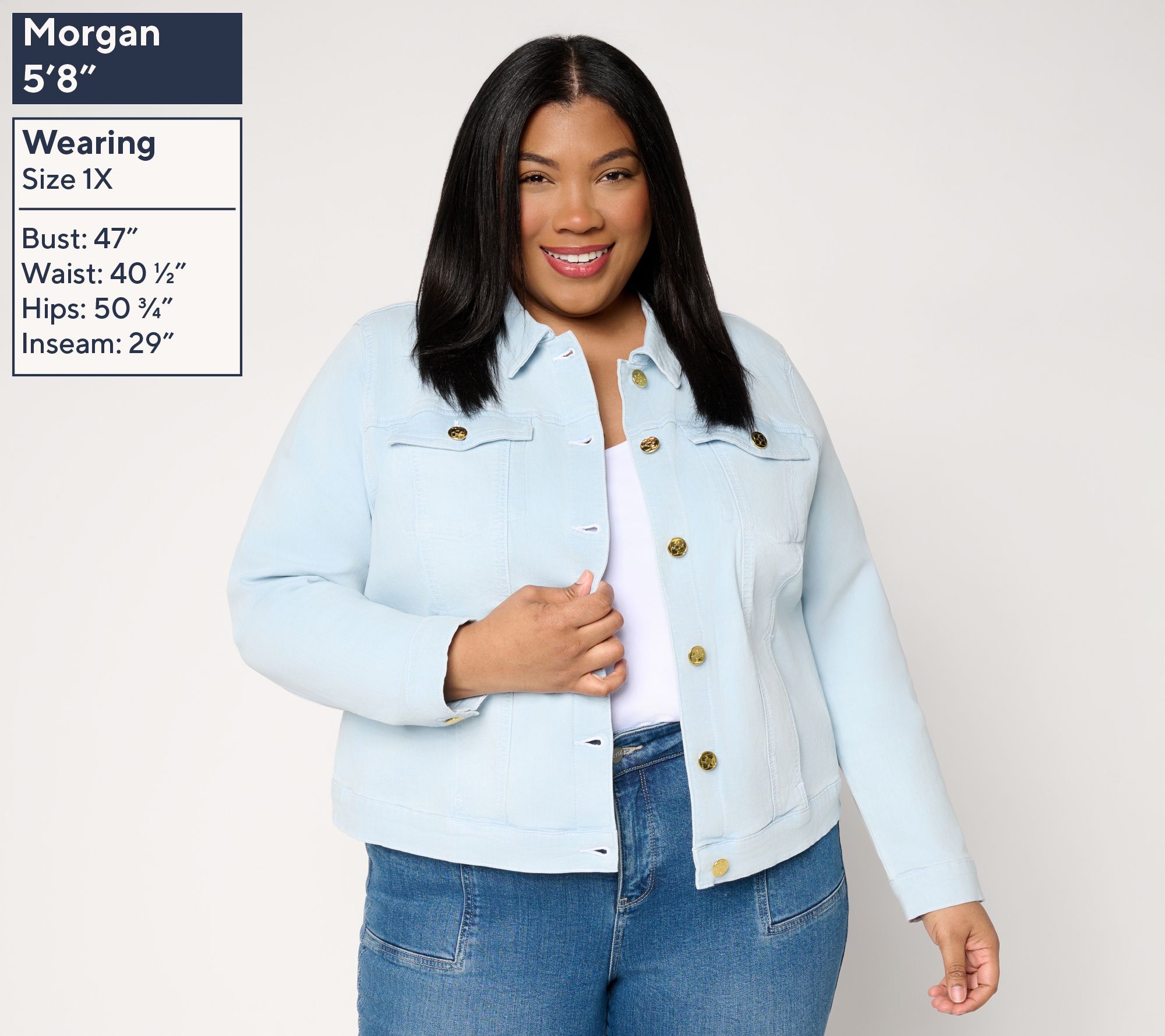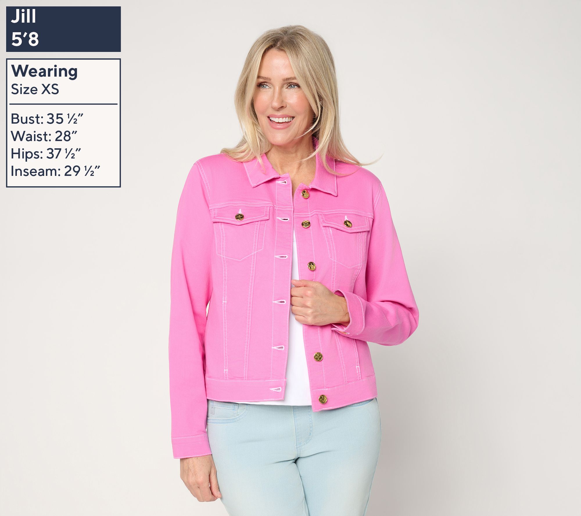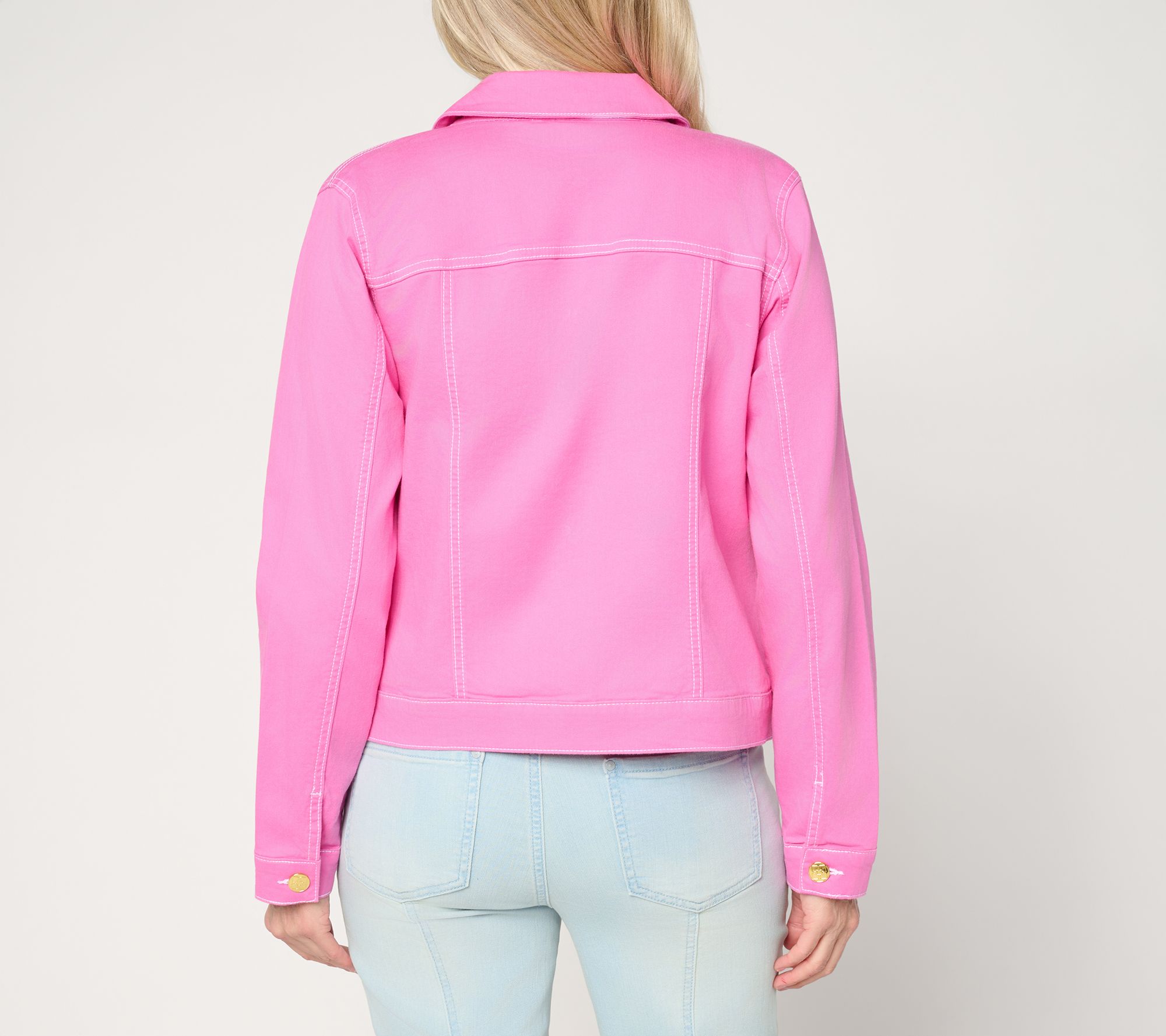 Weekend errands, busy mornings, or spontaneous lunch dates -- this jean jacket delivers comfort and style through every moment. Stretch-infused fabric with topstitched details gives it a polished edge while keeping your look easygoing. Button it up over tees or style it open with your favorite top for a casual layer that moves with you. From Belle by Kim Gravel.