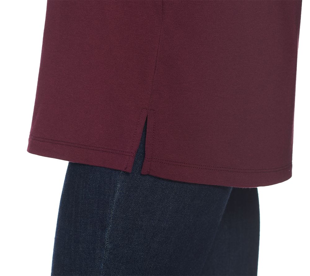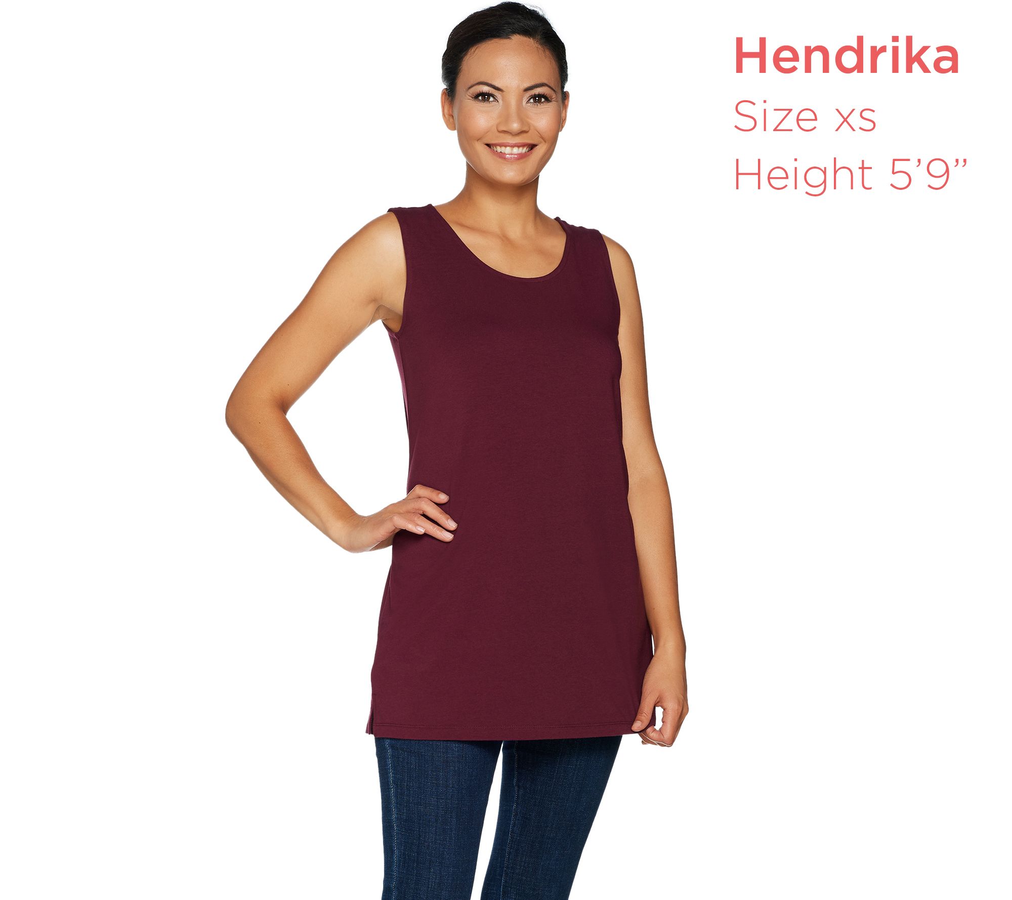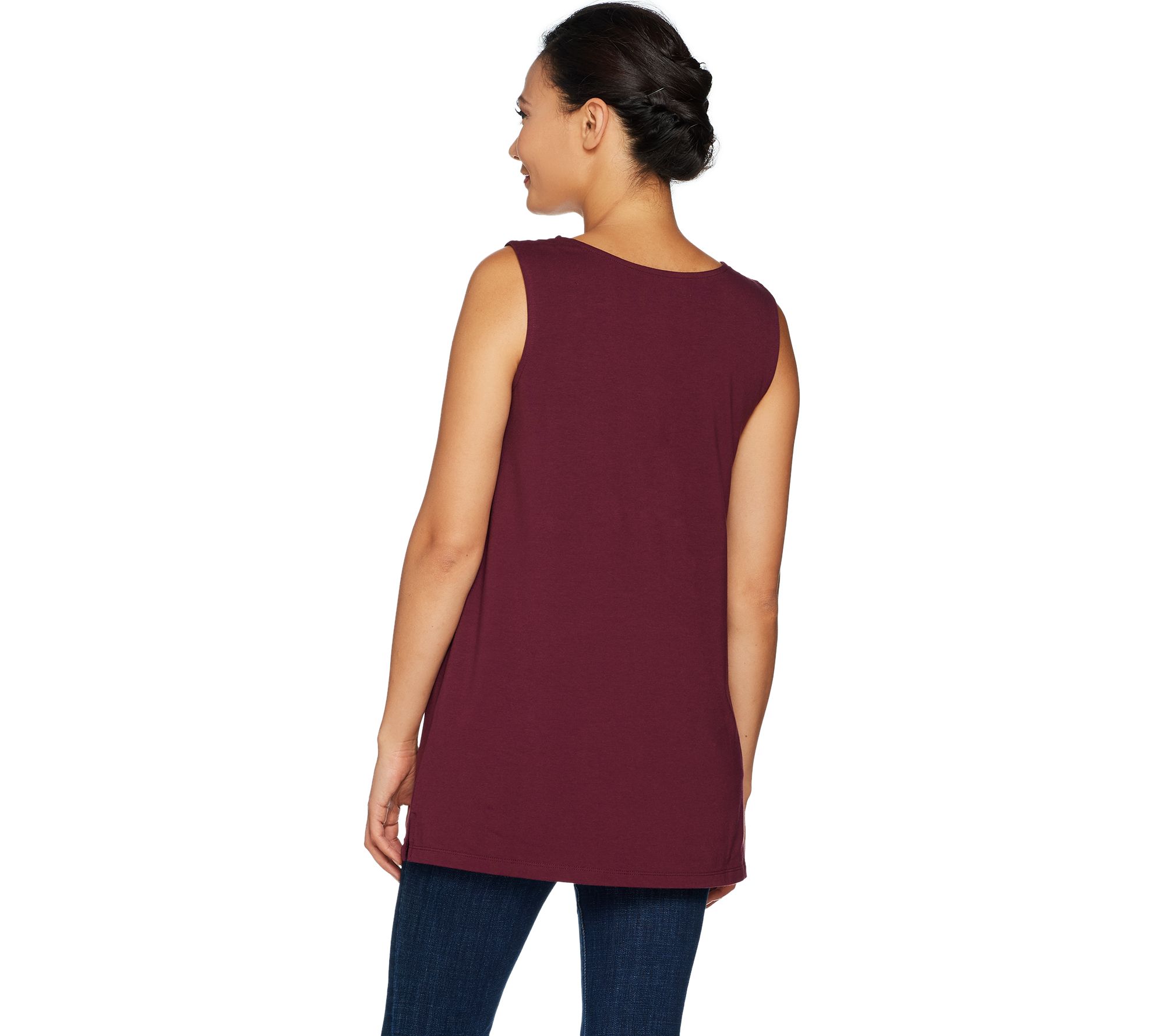 Features: sleeveless, scoop neckline, hem is vented at side seams