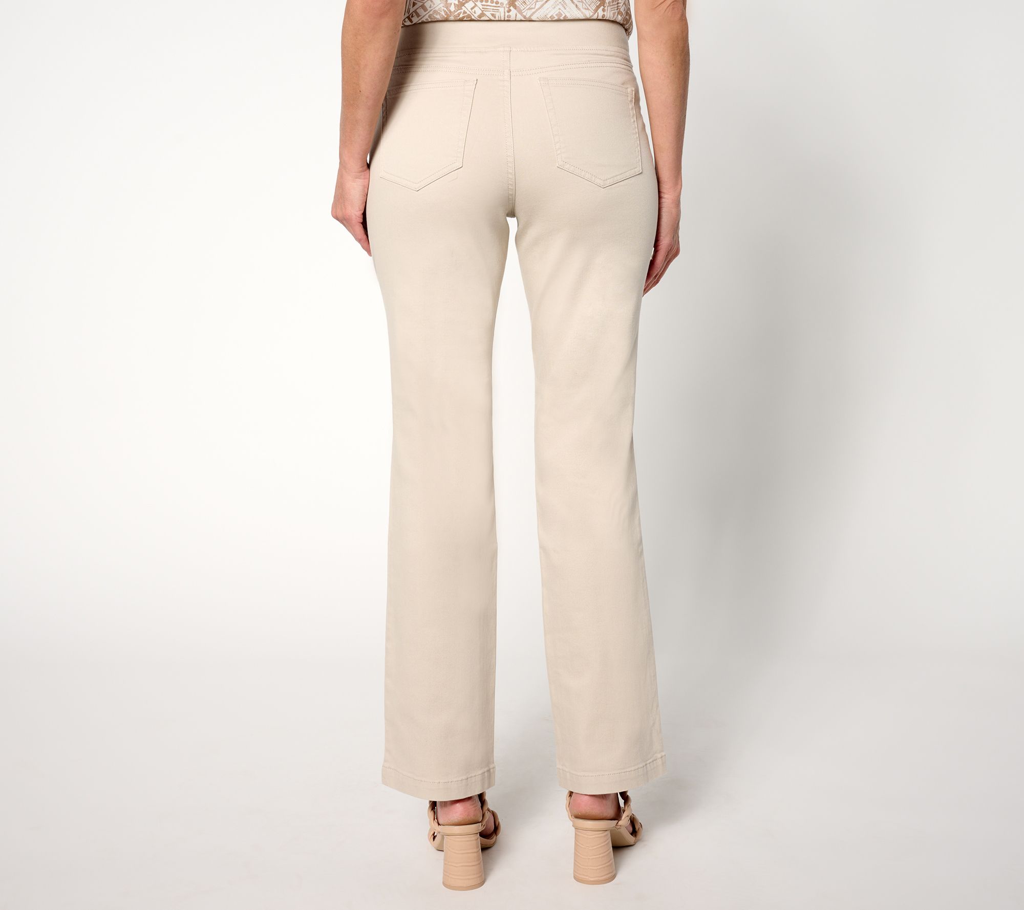 It's a fashion revolution! We've successfully squeaked past squeezing ourselves into skinnies and painted-on pants. Now, the time has come to turn our attention to a new era of what fits and flatters. Enter: Kim Gravel's take on twill jeans. Clean, classic, and with pull-on ease, they follow the lines of the body, allowing every body to share in the joy of a well-fitting pair that suits almost any situation. No holes, tears, or overly distressed features here. The focus of these go-to jeans involves chicly retro front patch pockets ('70s vibe, anyone?) and a baby boot-cut leg that adds a smidge more room at the ankle for all of your fresh-air footwear. (Don't look now, but those fall boots aren't far behind.) And TripeLuxe? That's the look (and feel) of money, honey. From Belle by Kim Gravel.