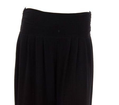 Pull on these knit palazzo pants to pull off a great look. Perfect for a day at the office, the pants have ruching at the waistband, wide legs, and softly pleated details. From the Lisa Rinna Collection.