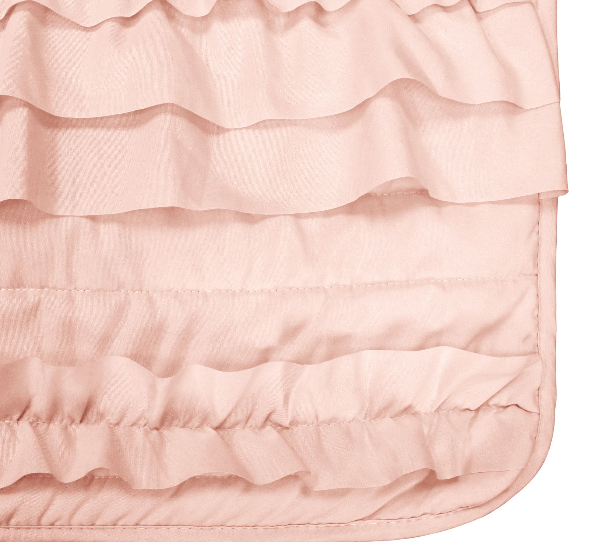Stylish ruffles on this elegant throw emanate playfulness and feminine beauty--making it a comfortable addition to the couch or the belle of the bedroom. From Lush Decor.
