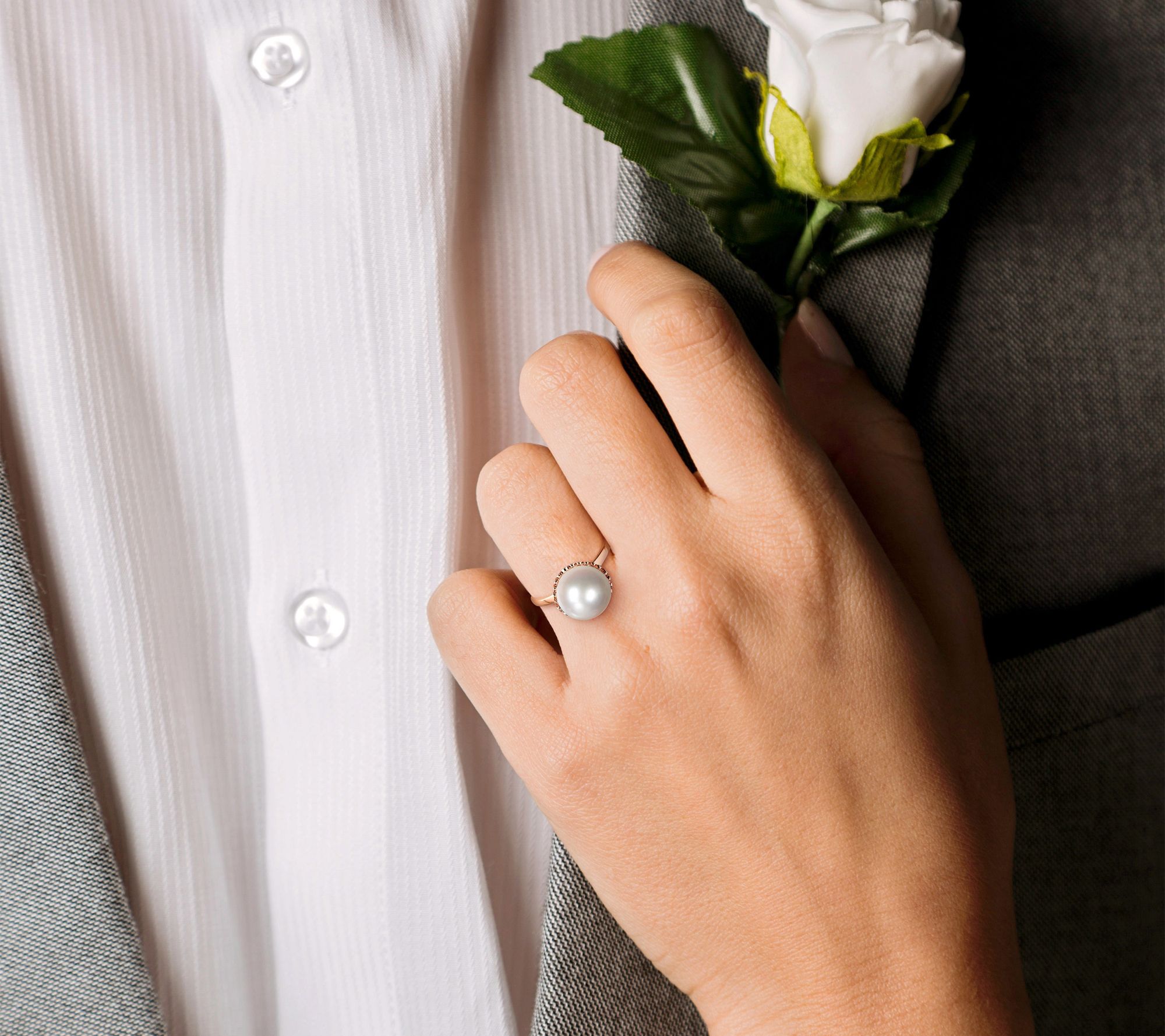 Cheers to you wearing this cocktail ring. It looks luminescent with cultured freshwater pearls and diamond side stones. From Bellini.