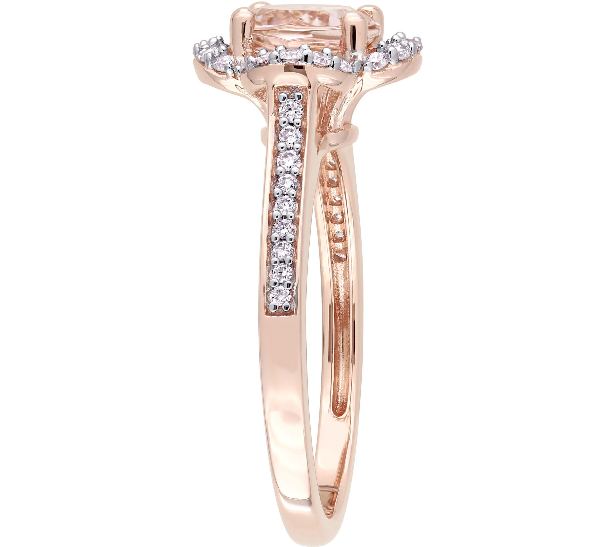 Say "I do" to the vibrant shine and lush color of this 14K rose gold morganite and white diamond halo engagement ring. From Bellini.