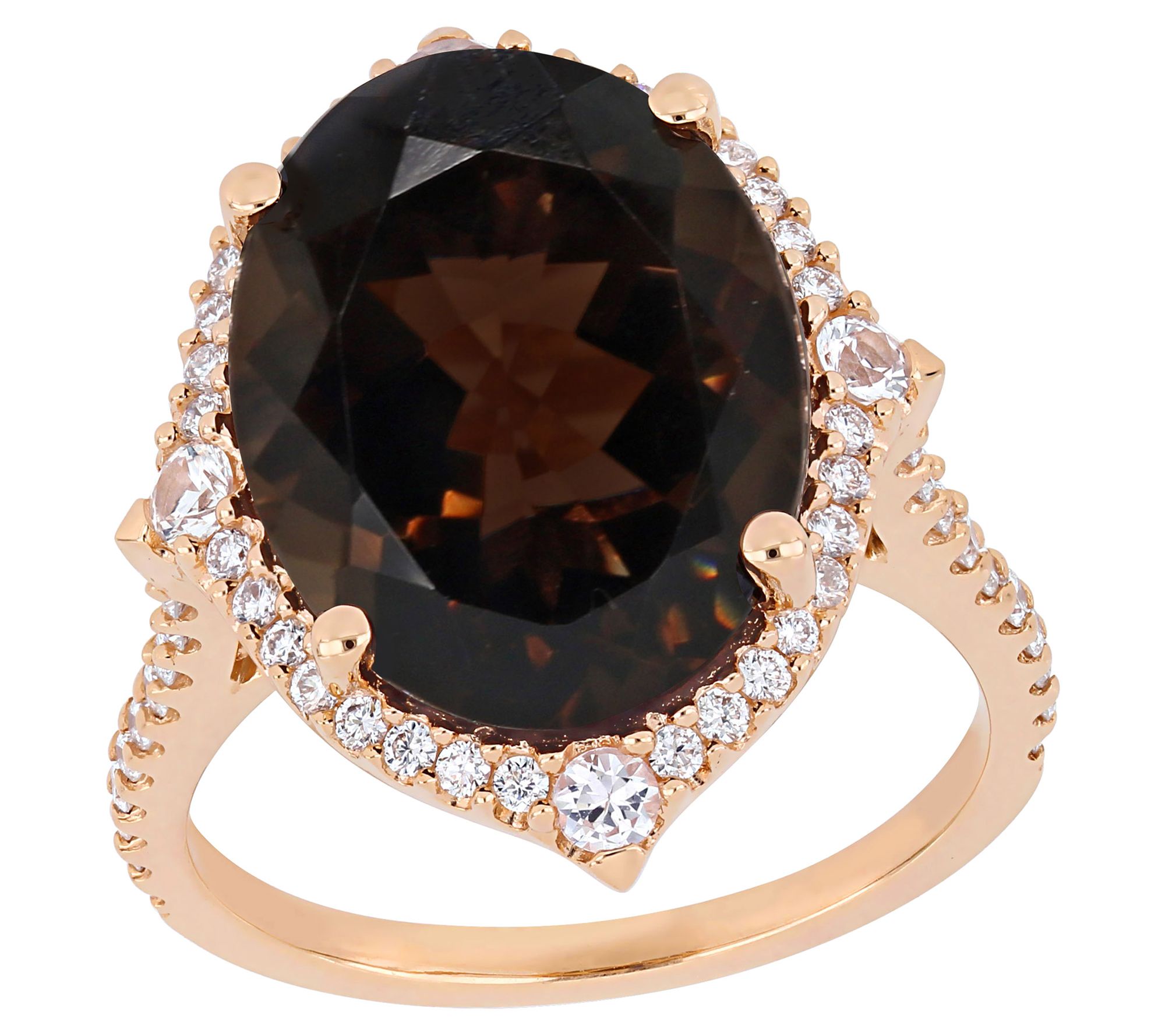 Cheers to you and your new 14K rose gold ring! It dazzles with diamonds and white sapphires around a smoky quartz center. From Bellini.