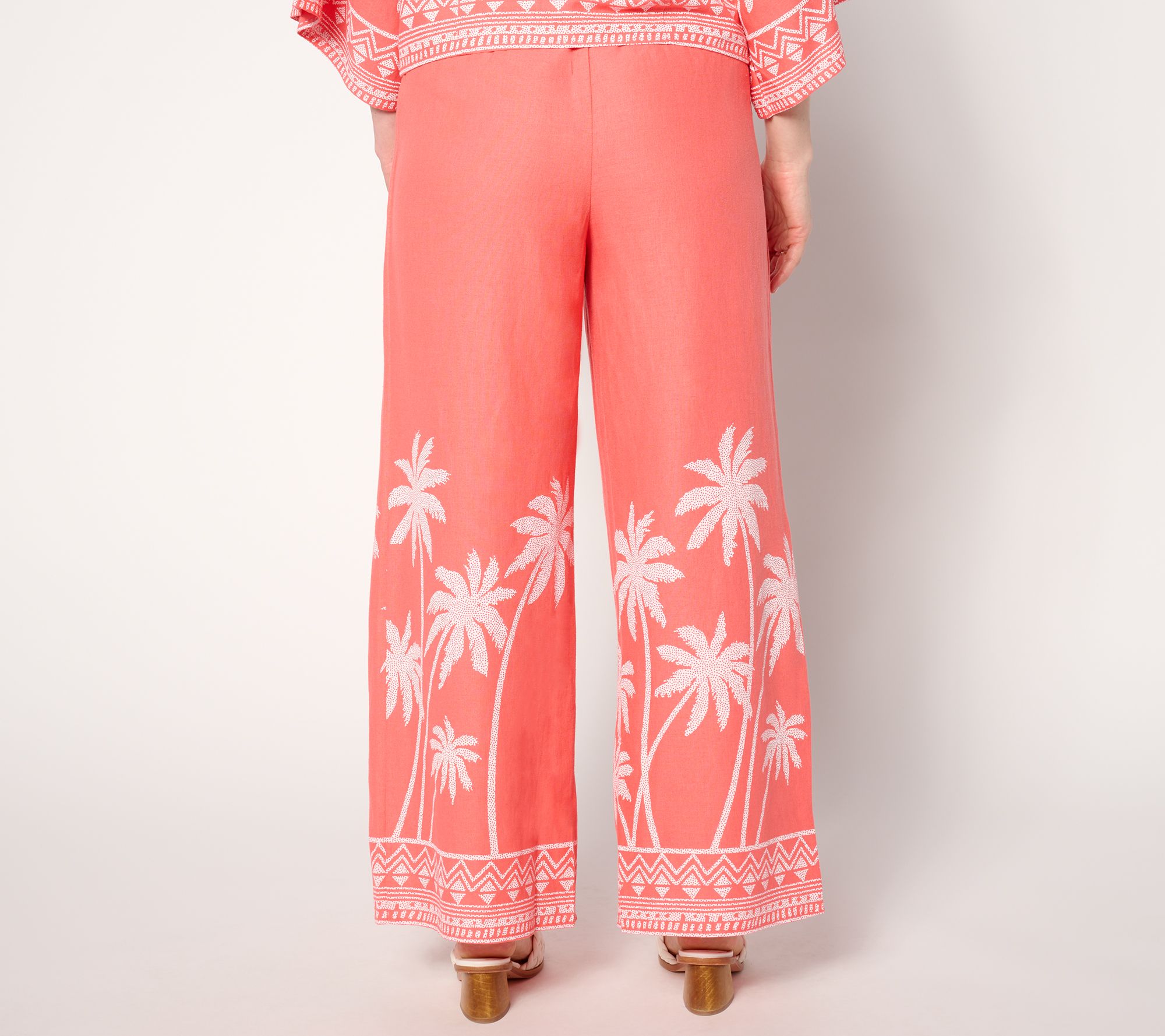 Tropical destinations calling your name? These palm tree print wrap ankle pants brings a vacation vibe to any outfit -- even when you're miles away from a sandy shoreline. From Bellisima by Kim Gravel.