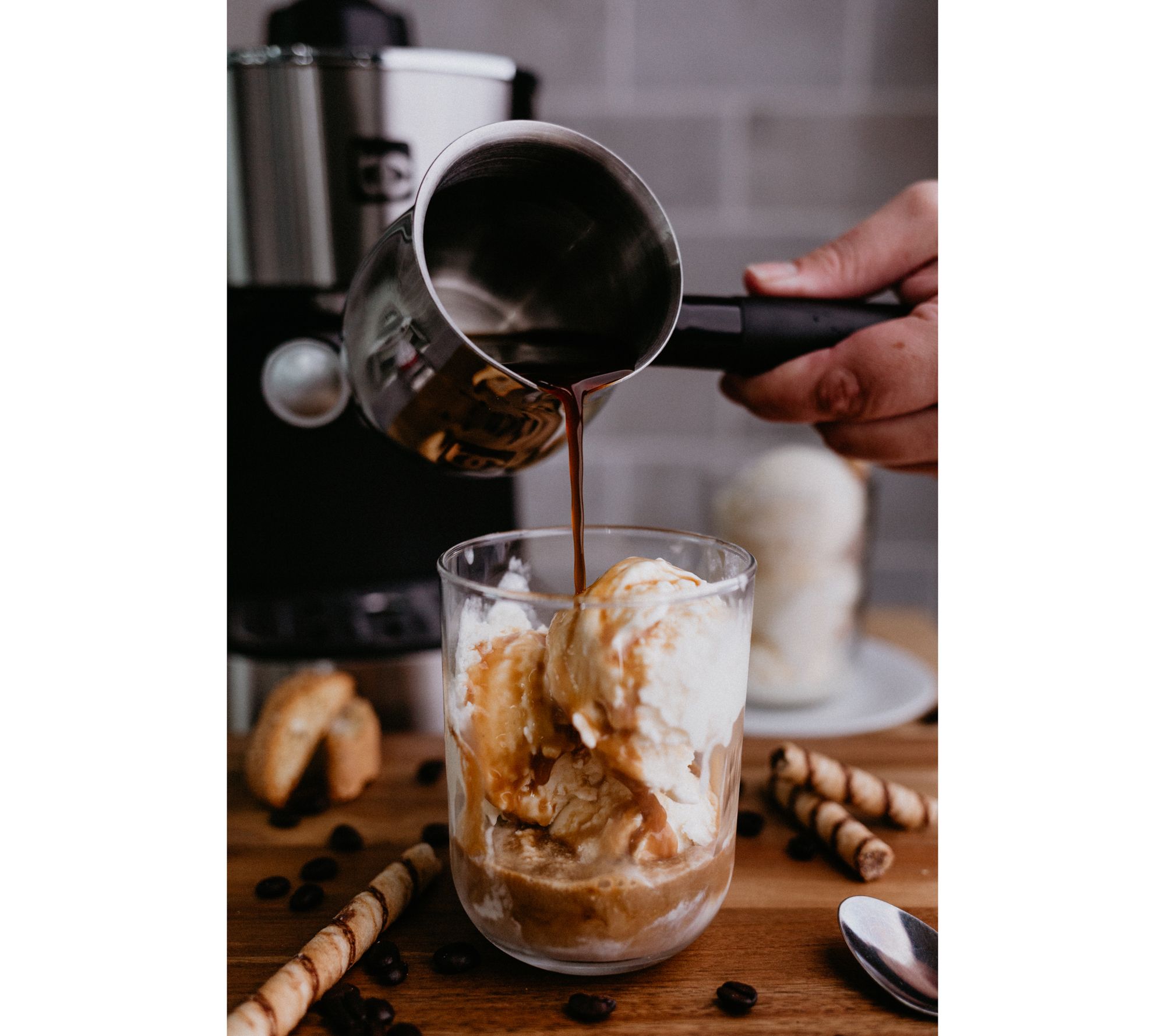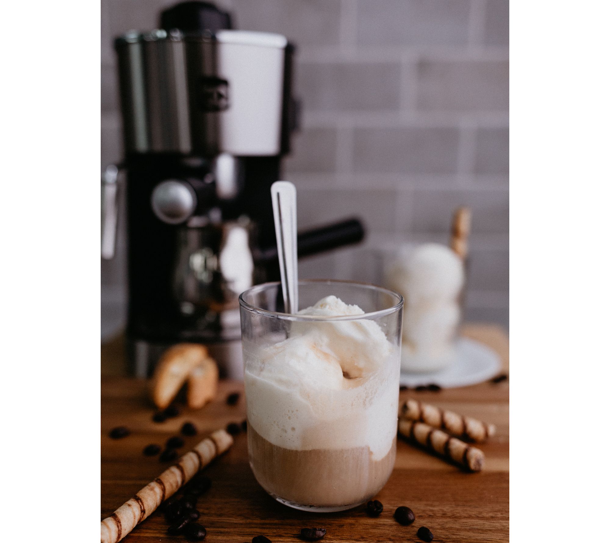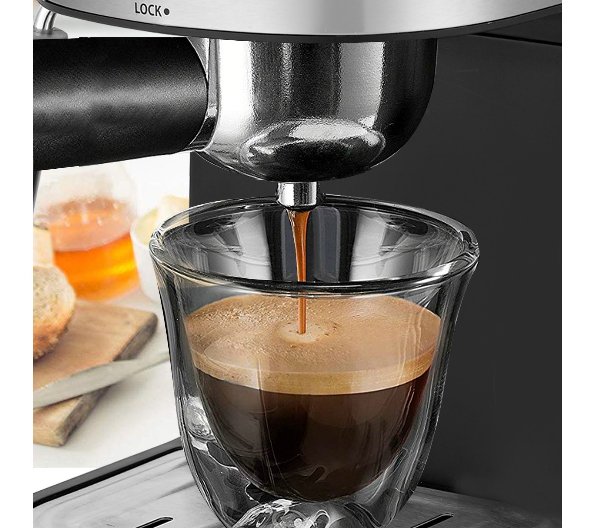 • Includes 4-cup espresso maker with steam frother