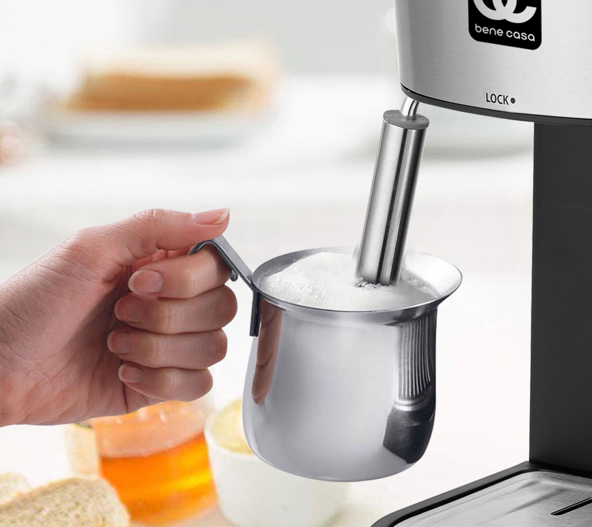 Bene Casa 4 Cup Stainless Stee l Espresso Make r w Steam Froth