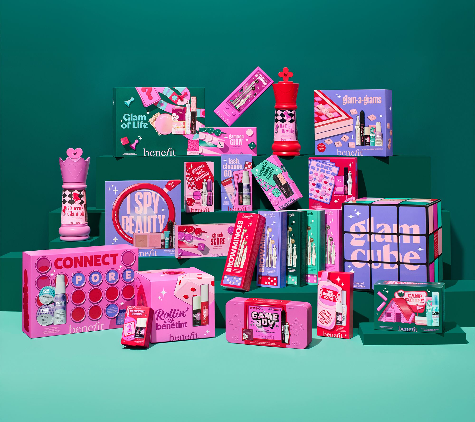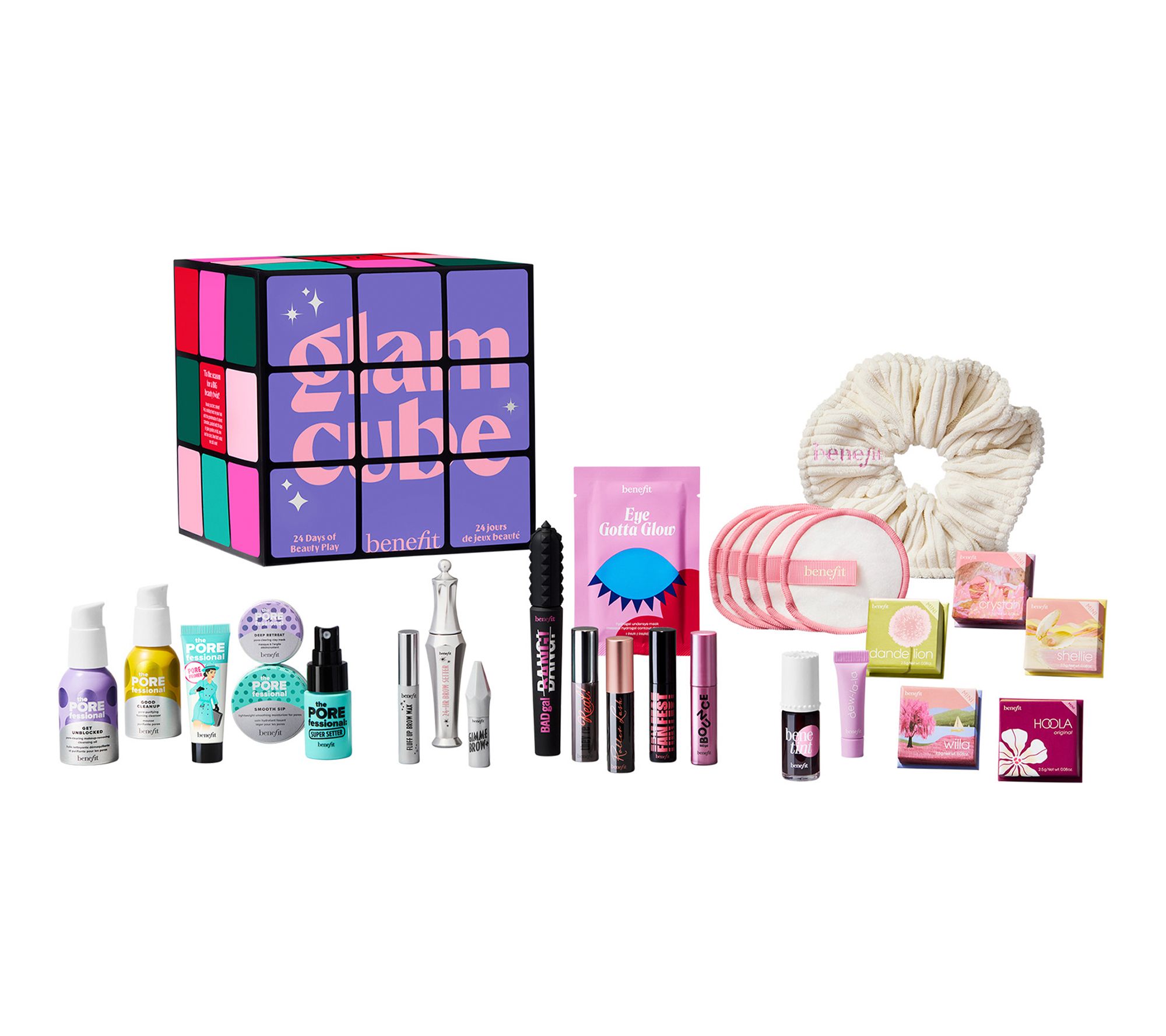 24 days of beauty play! Benefit Cosmetics Glam Cube is a 24-day beauty advent calendar packed with full-size, mini-size, and fun-size favorites. From Benefit Cosmetics.