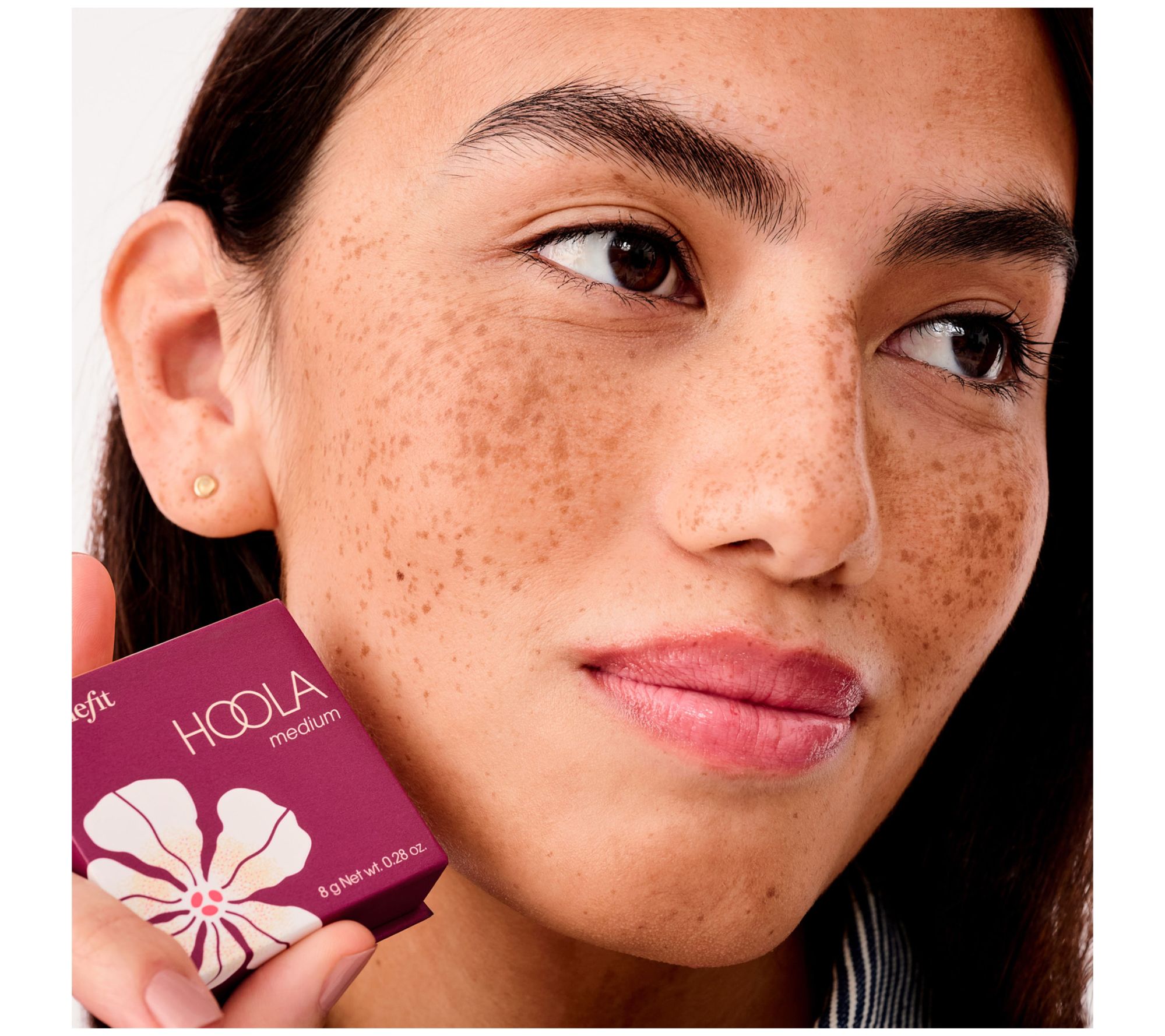 This isn't your average bronzer. No, this bronzer is the legendary Hoola. The bestselling bronzer that makes you look sun-kissed even in sweater weather. Its ultra-fine, silky-soft powder builds and blends beautifully to create a natural-looking matte bronze that lasts all day. It's basically a beach vacation in a box (without the overly aggressive seagulls). Maracuja oil helps skin feel soft and silky. Apply underneath cheekbones, on your forehead, jawline and the sides of your nose to create natural-looking contour.