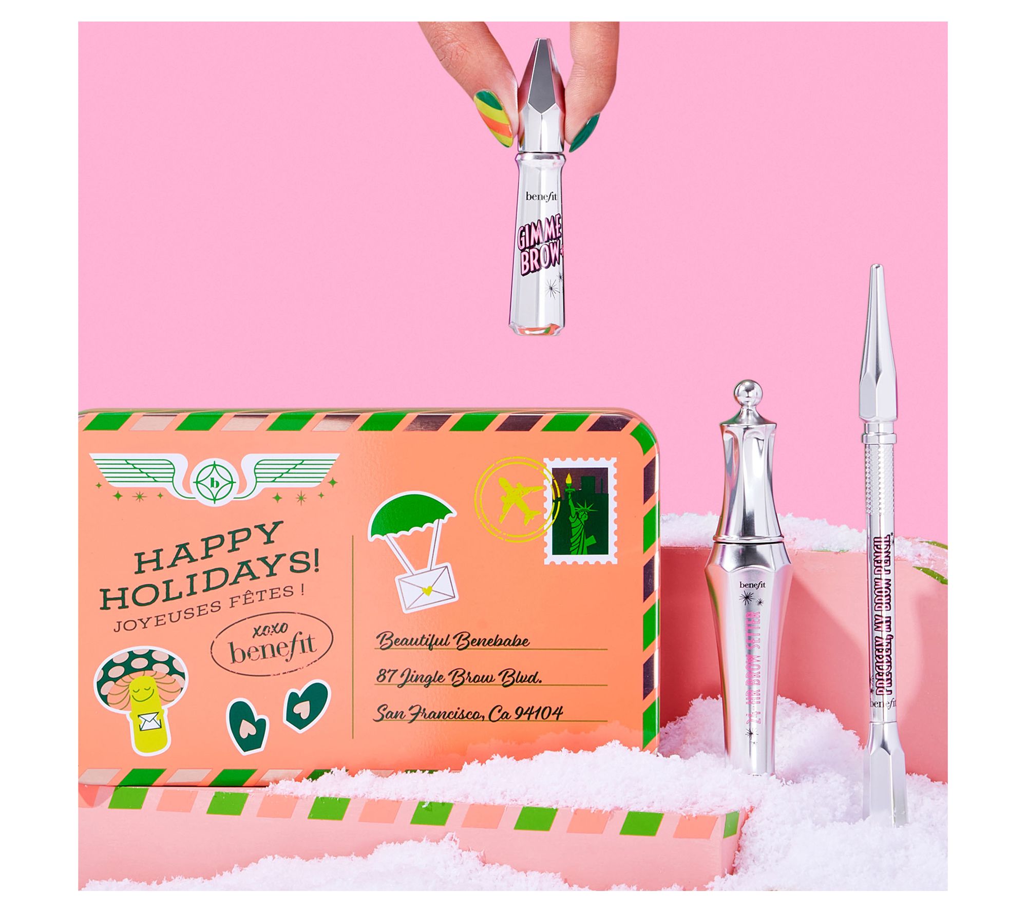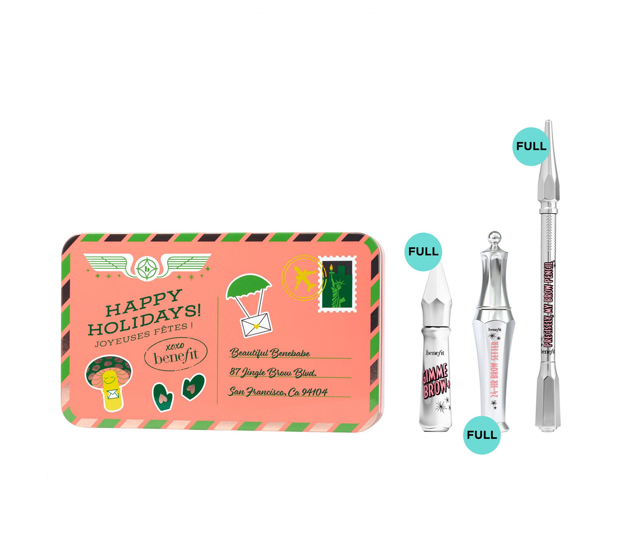 Have the best brows at the holiday soiree! Draw natural-looking, hair-like strokes with Precisely, My Brow Pencil, pump up the brow volume with Gimme Brow+ and set a sculpted brow look that lasts with 24-HR Brow Setter. They come in a reusable keepsake tin with special holiday stickers inside!