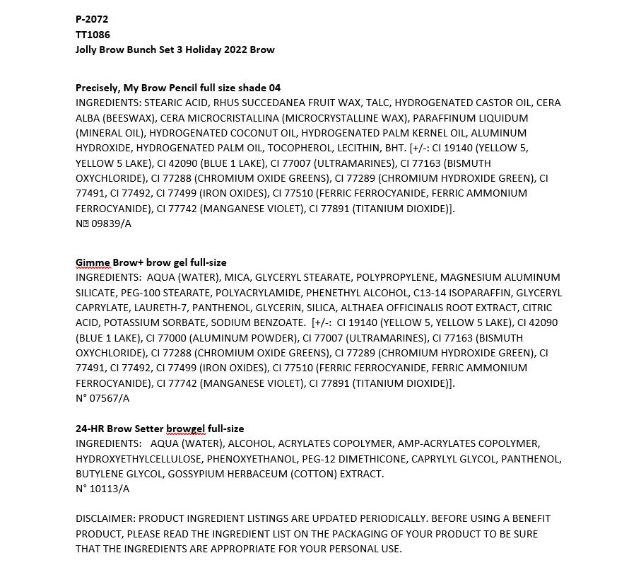 How do I use it: Apply Precisely, My Brow Pencil using light, short, hair-like strokes and blend with spoolie. Stroke Gimme Brow+ brush tip along brows to define. Brush through to blend and build for the look of volumized brows. Use the long-bristled side of 24-HR Brow Setter brush to evenly coat brow hairs; use the short bristles to sculpt and shape hairs into place.