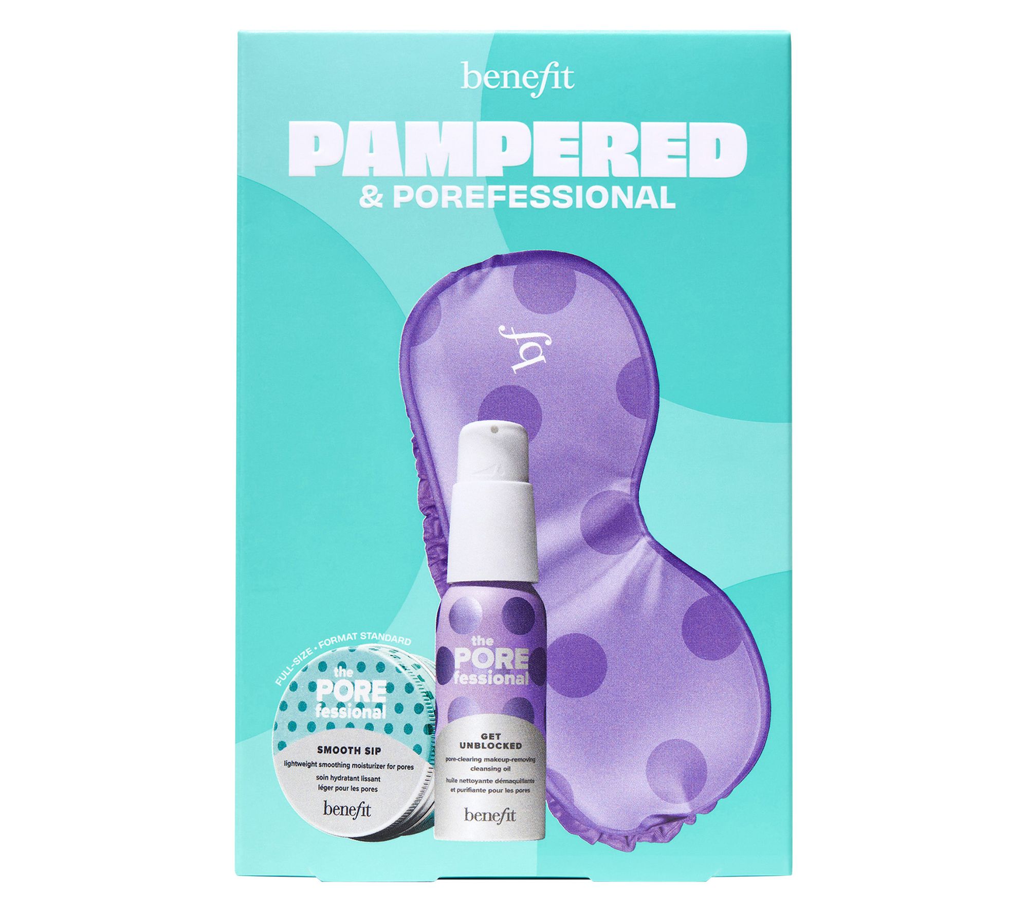 Pamper yourself with this Benefit Cosmetics POREfessional set featuring cleansing oil and lightweight smoothing moisturizer for skin that feels smooth. Melt away the day (aka makeup and oil and dirt) with The POREfessional Cleansing Oil. Then, treat your skin to The POREfessional Smooth Sip moisturizer for hydration and the appearance of smoother-looking skin. Bonus: this set comes with a silky sleep mask for the ultimate beauty rest.