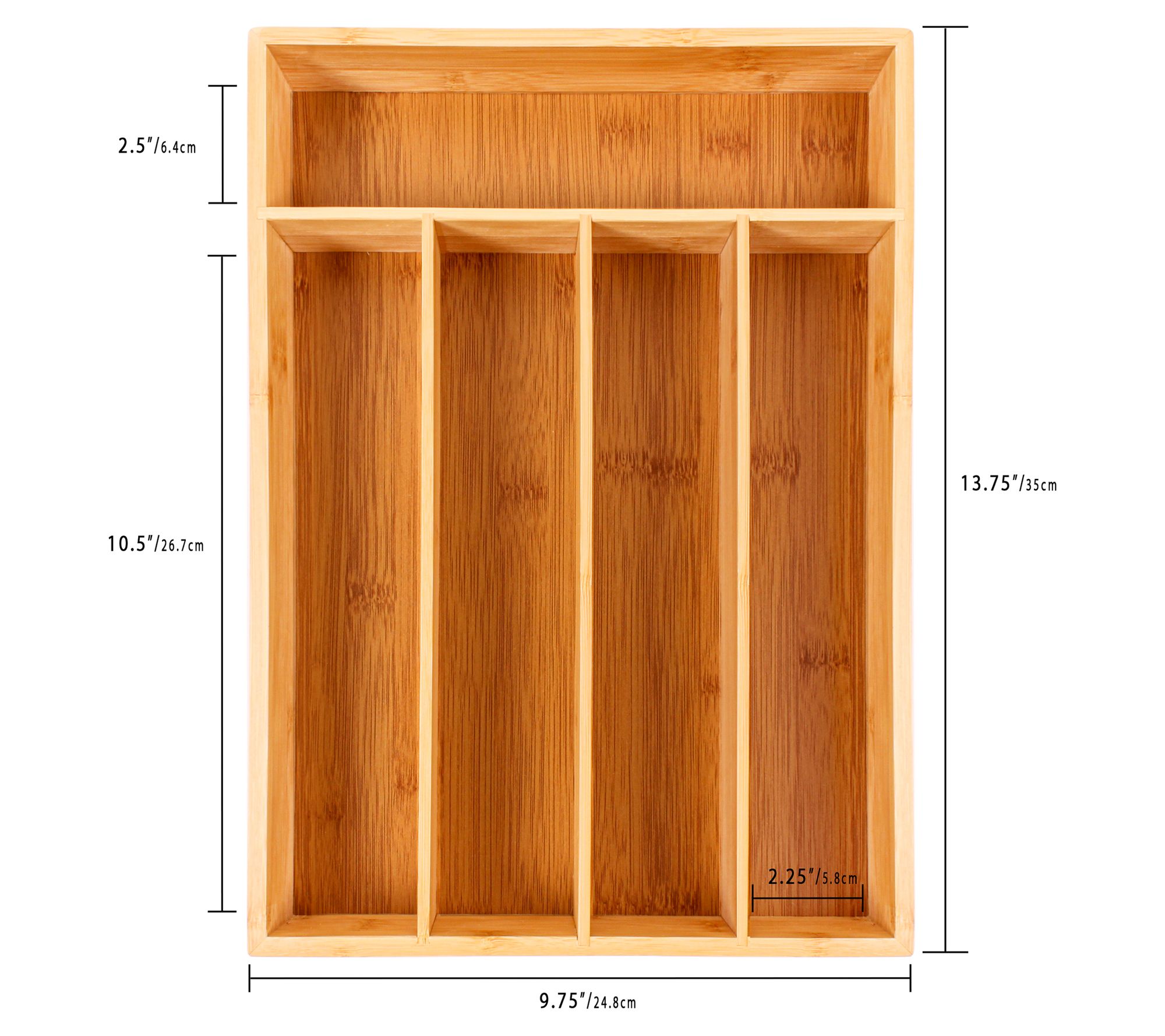 • Includes bamboo 5-slot flatware organizer