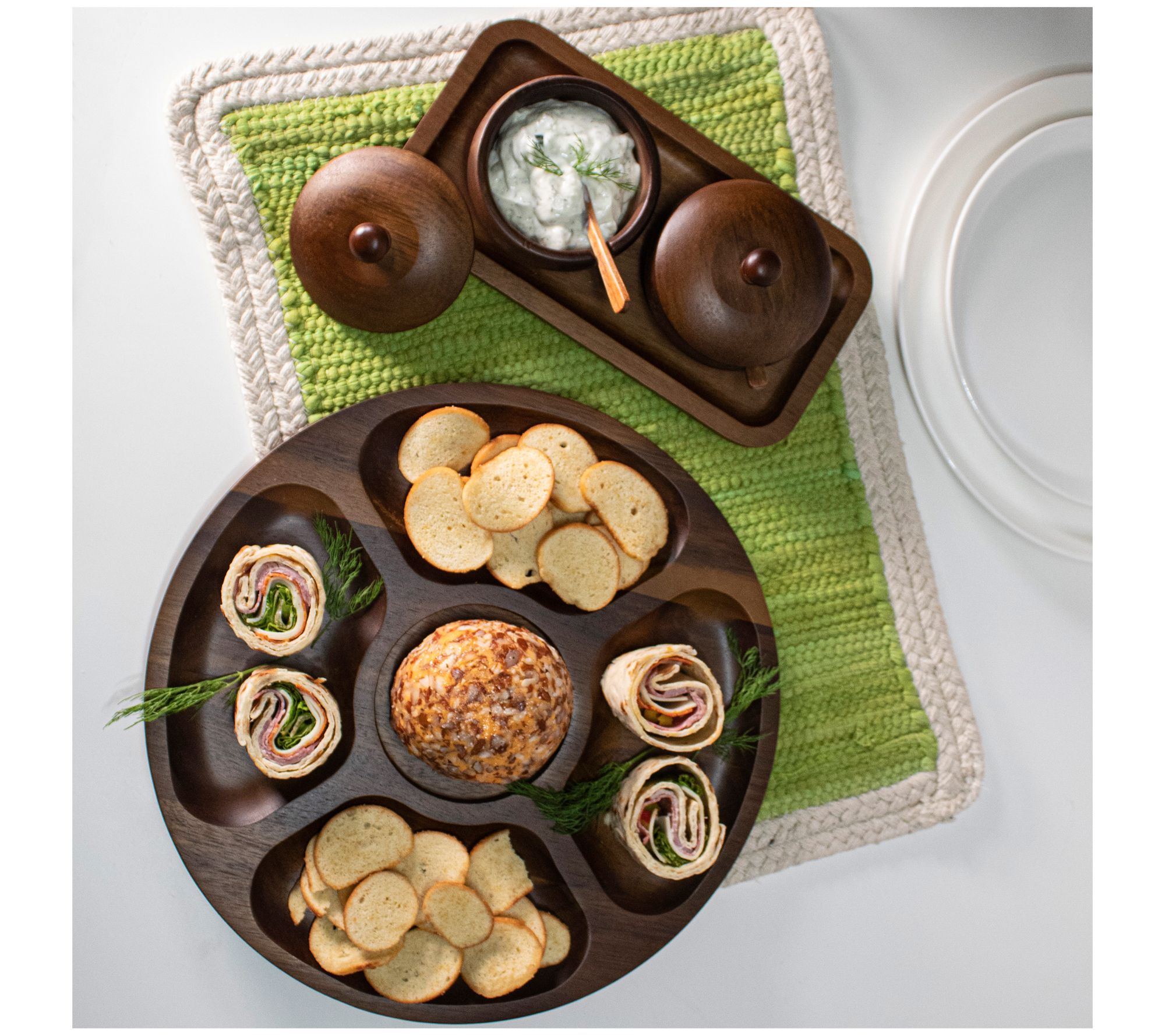 Serve up your favorite appetizers in style with this round tray boasting a beautiful and durable design. The warm wood finish complements your favorite cheeses, fruits, and appetizers. From BergHOFF.