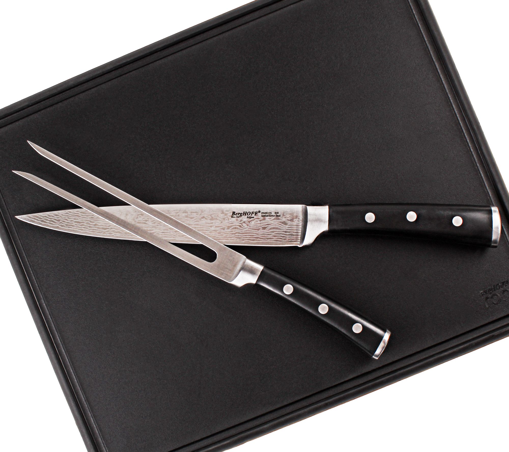 Make serving your favorite meats and poultry a breeze with this attractive carving set featuring triple-riveted handles and a sleek modern design. From BergHOFF.