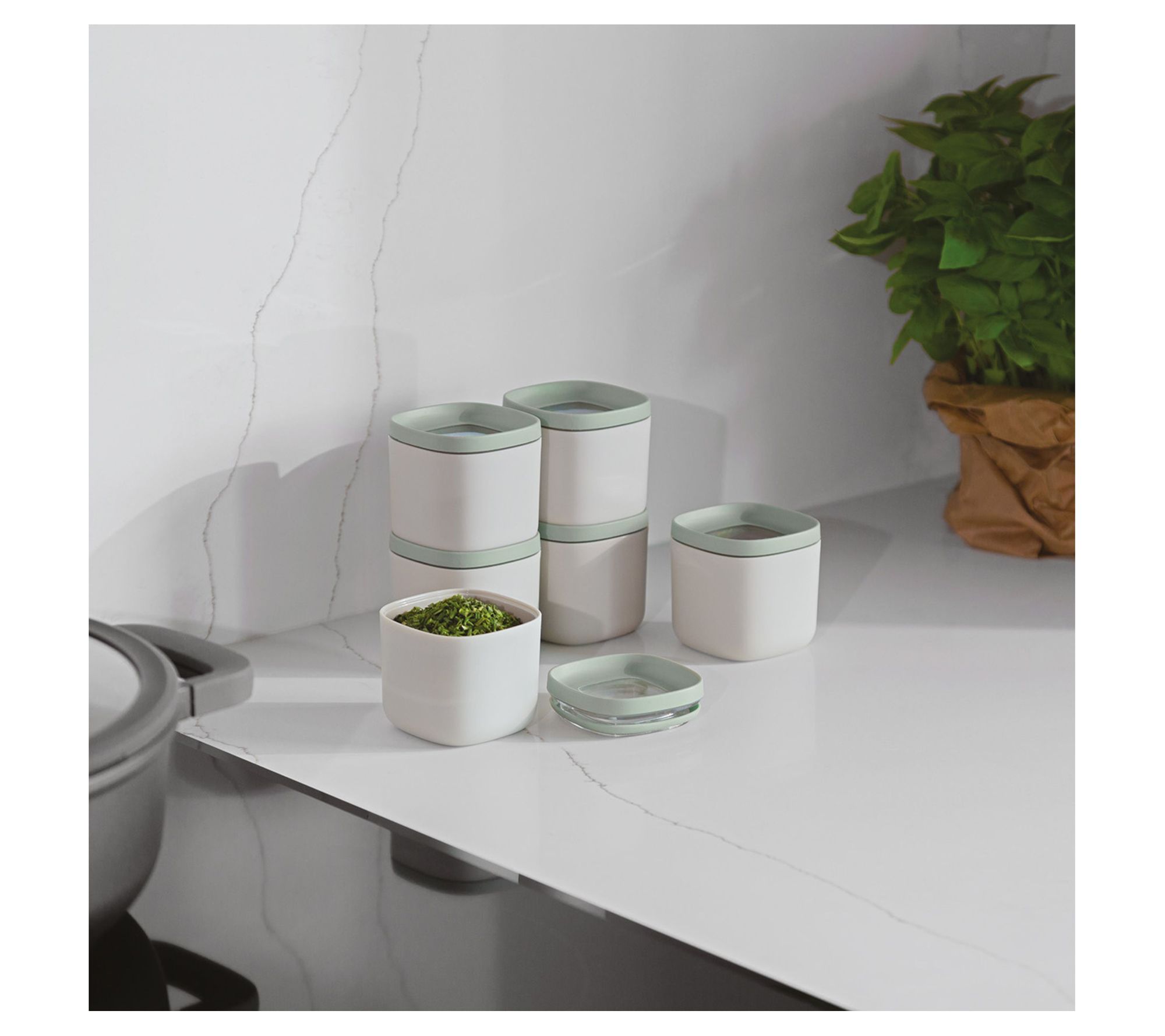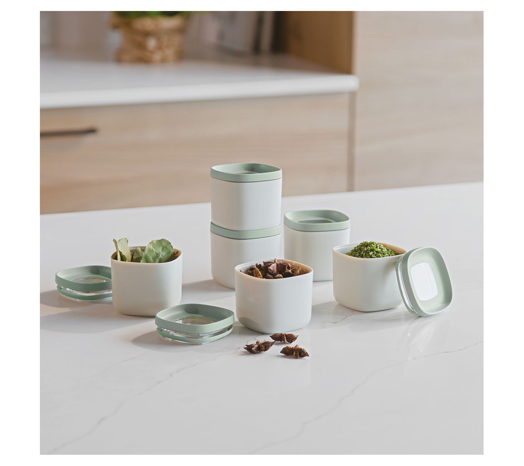 Keep your kitchen organized and food fresh with this six-piece set. These containers are perfect for storing spices, candies, biscuits, and flour, ensuring everything stays tasty. The square shape allows for optimal space-saving in your pantry or drawers, and the stackable design keeps your kitchen clutter-free. Plus, transparent windows on top let you easily check contents at a glance. From BergHOFF.