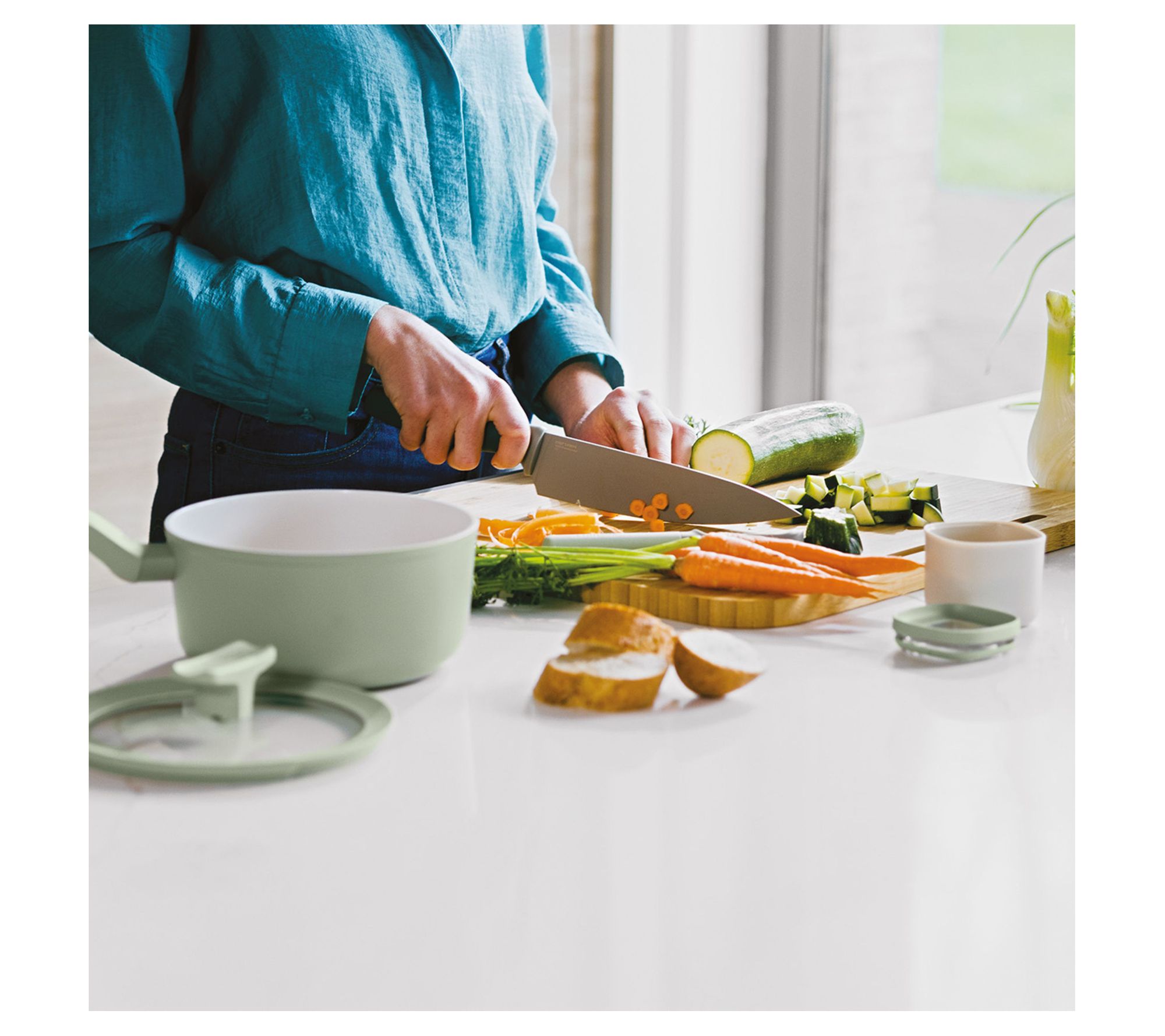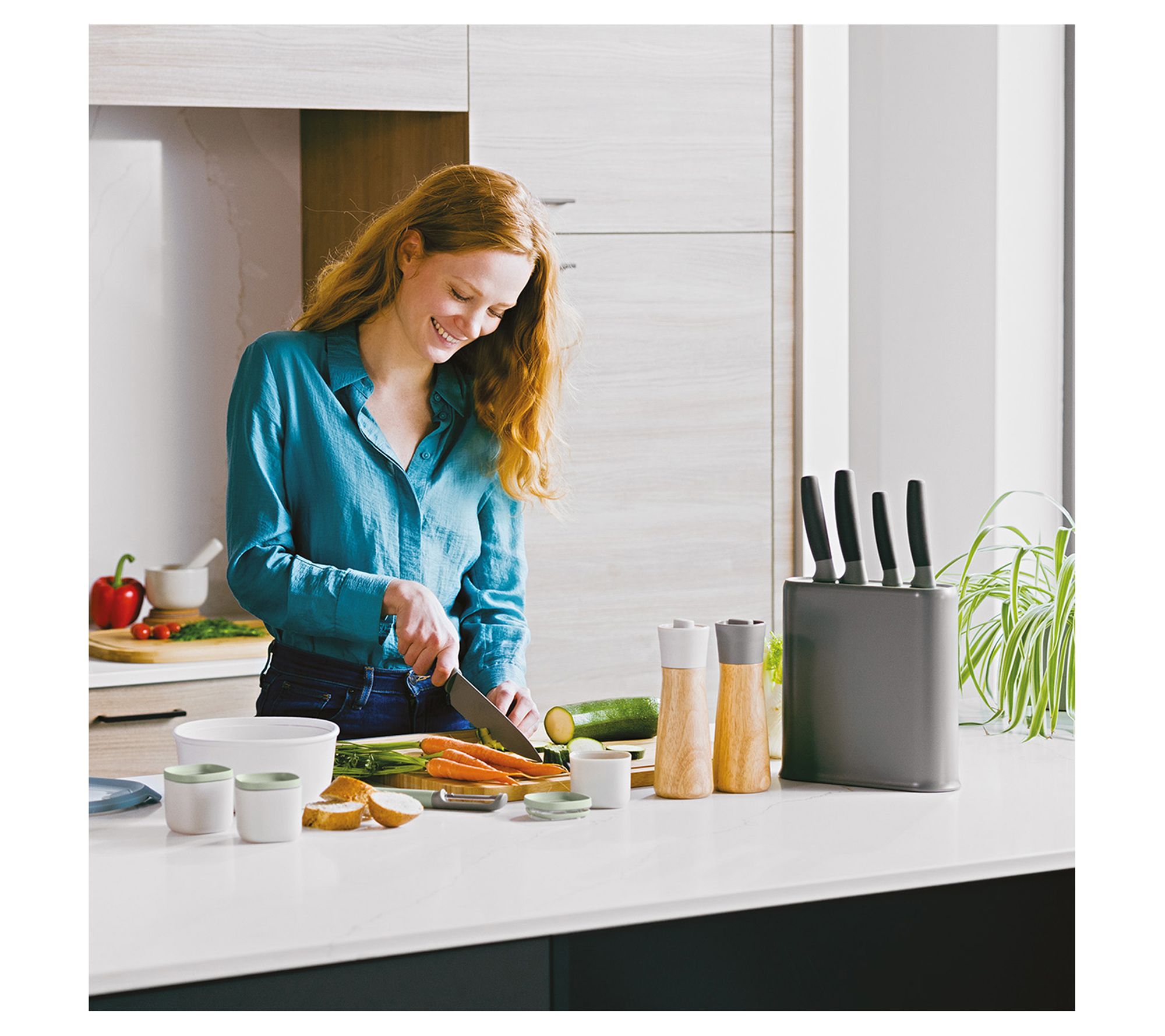 • Includes paring knife, vegetable knife, small chef knife, chef knife, bread knife, and knife block
