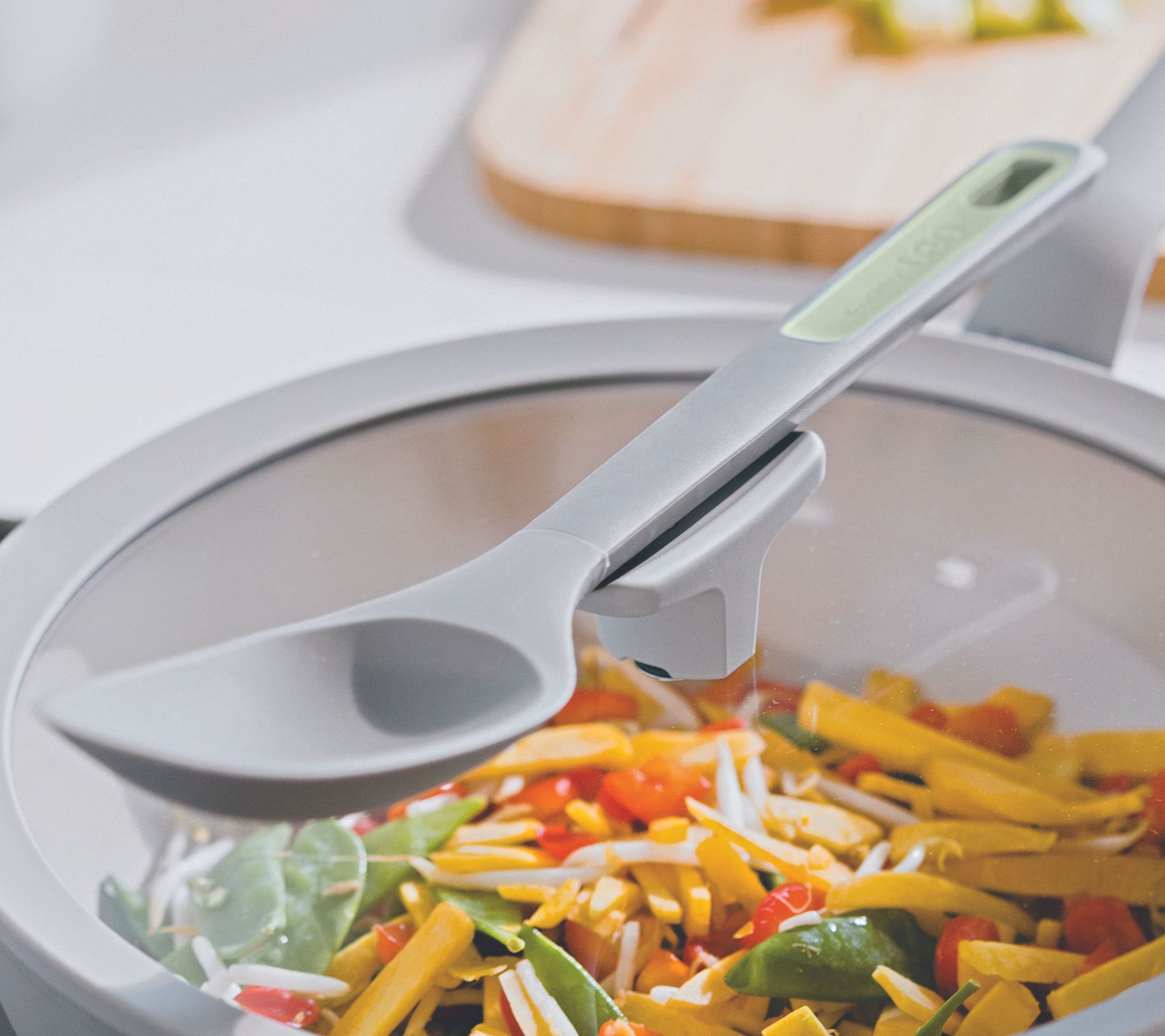 • Glass lid with straining function and spoon rest knob