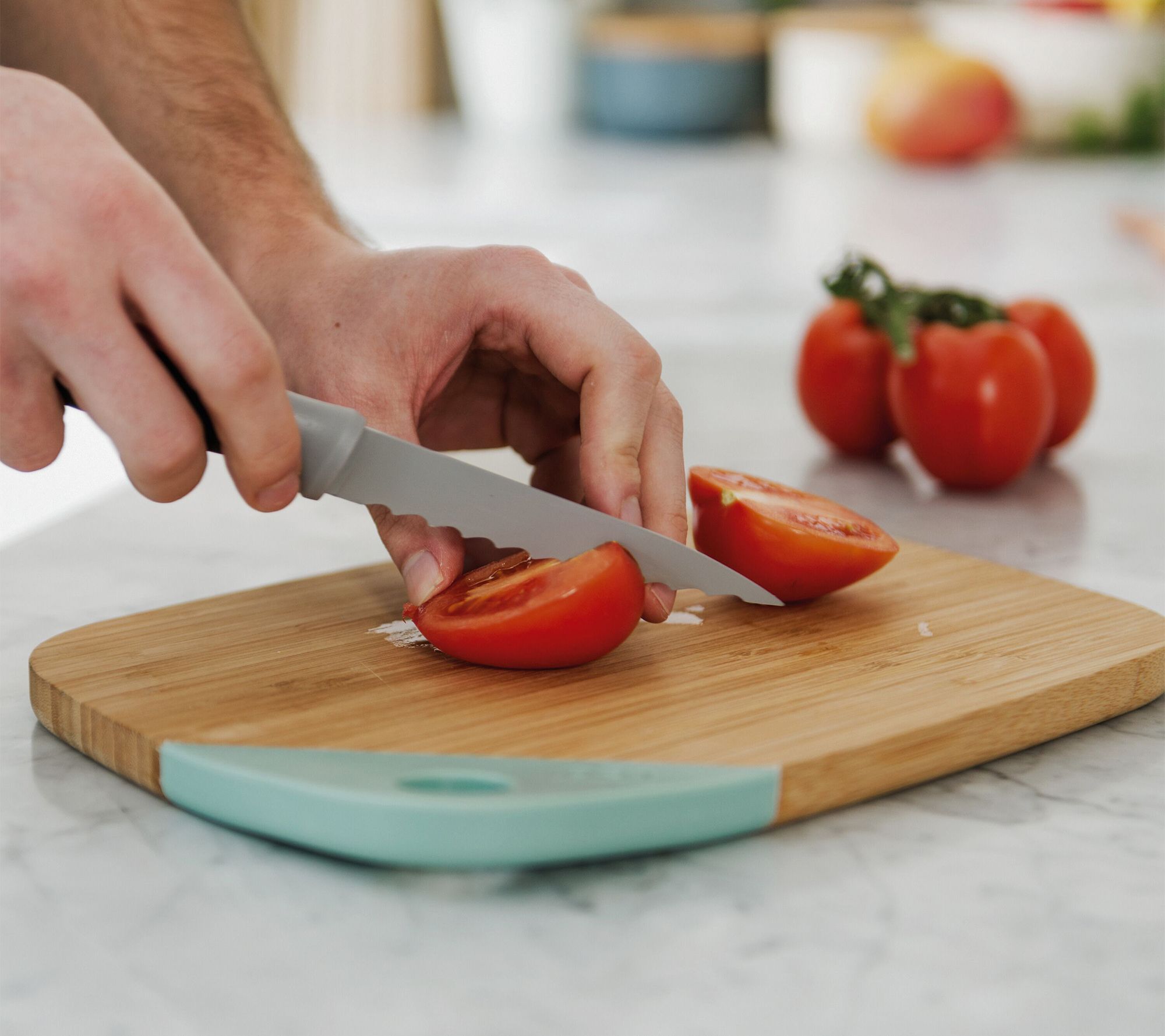 Tackle a variety of kitchen tasks with the BergHOFF Balance 4.5" Serrated Utility Knife, designed for precision and ease. Its non-stick stainless steel blade effortlessly slices through tough foods. Complete with a protective sleeve for safe storage, this knife is a must-have for any home chef looking for efficiency in their kitchen tools. From BergHOFF.