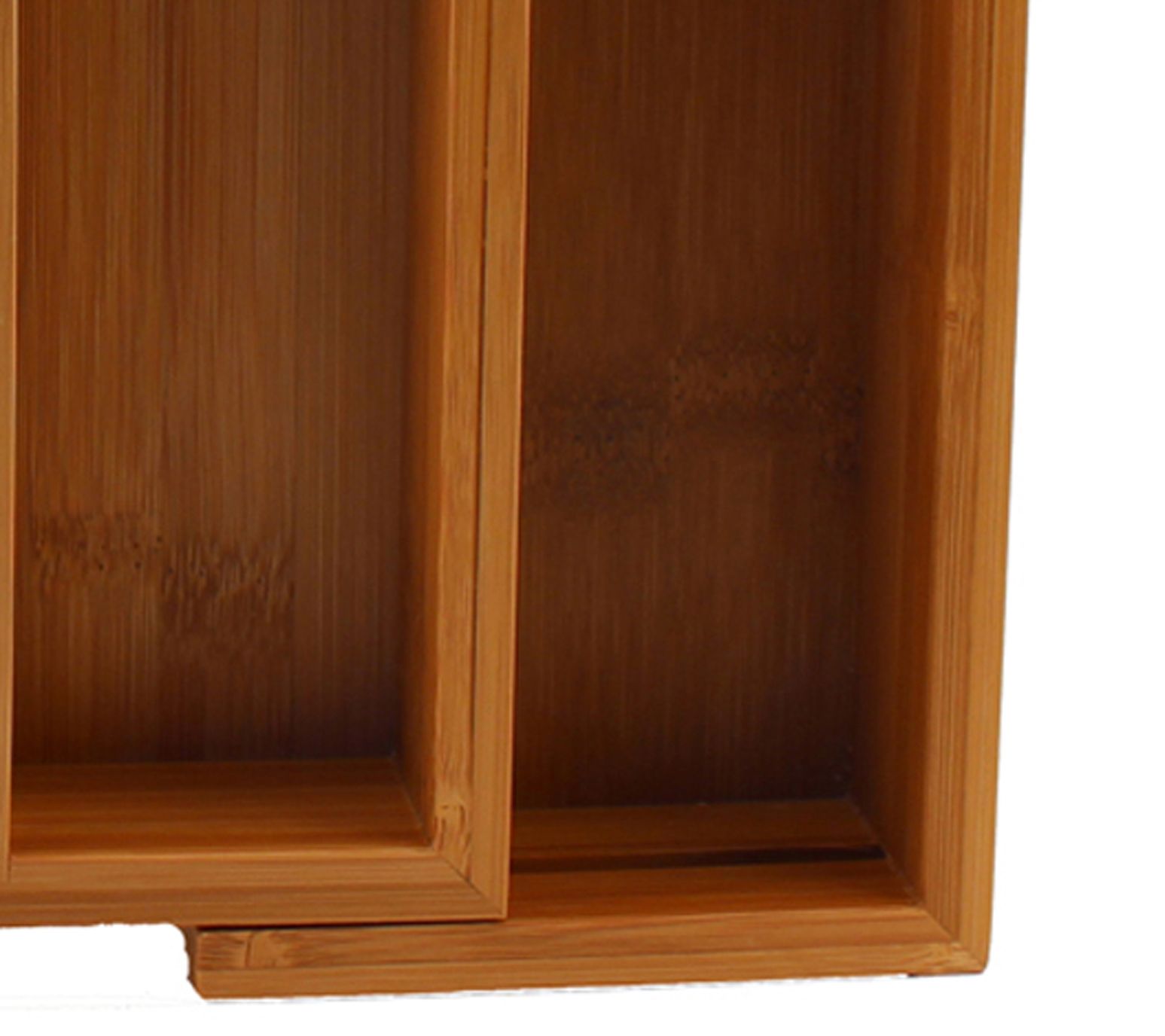 Organize your flatware in style with this expanding six-slot storage solution. Five built-in dividers sort place setting pieces and other kitchen gadgets in a beautiful bamboo design. From BergHOFF.