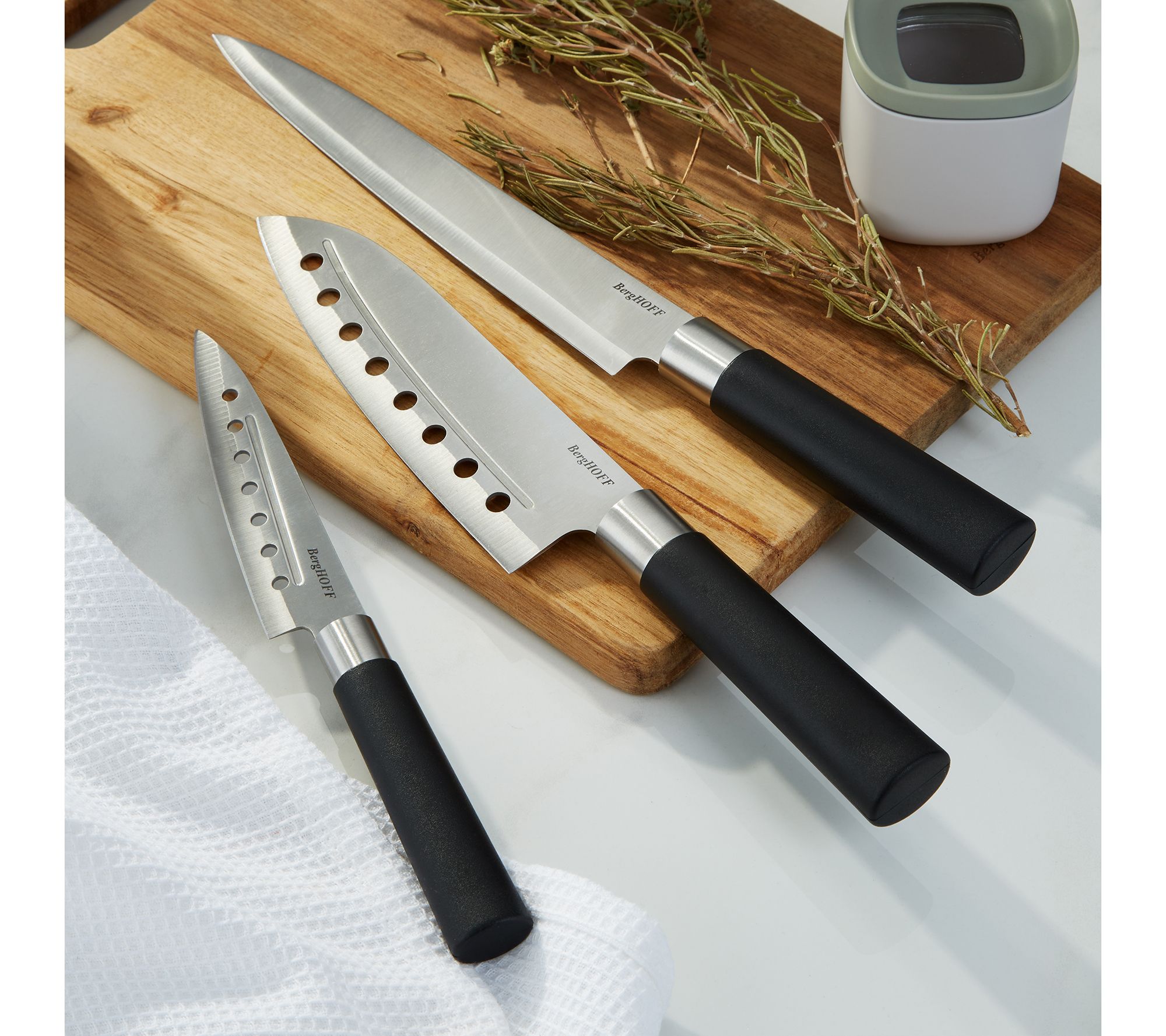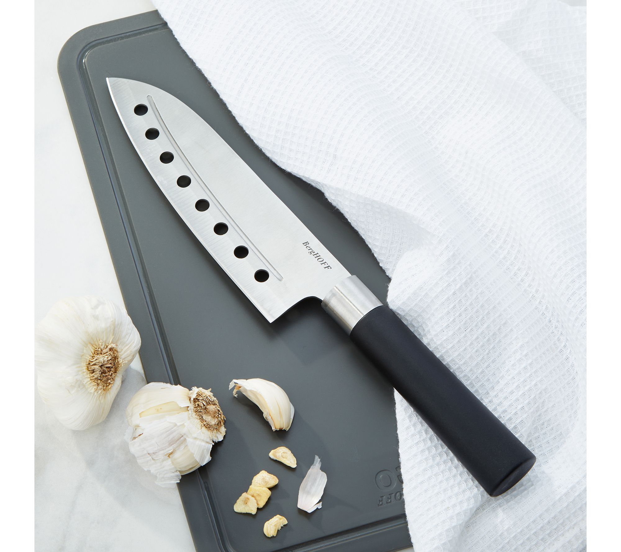 • Includes 6.75" Santoku Knife with holes
